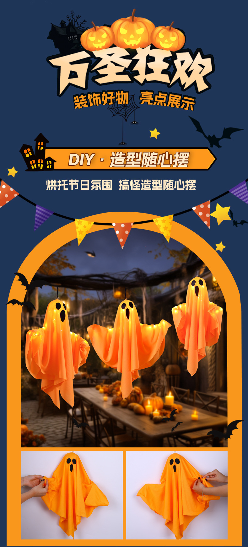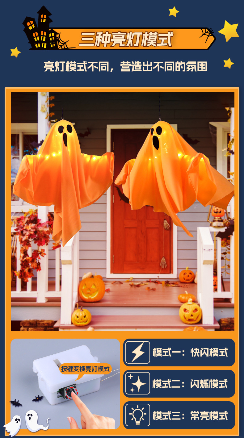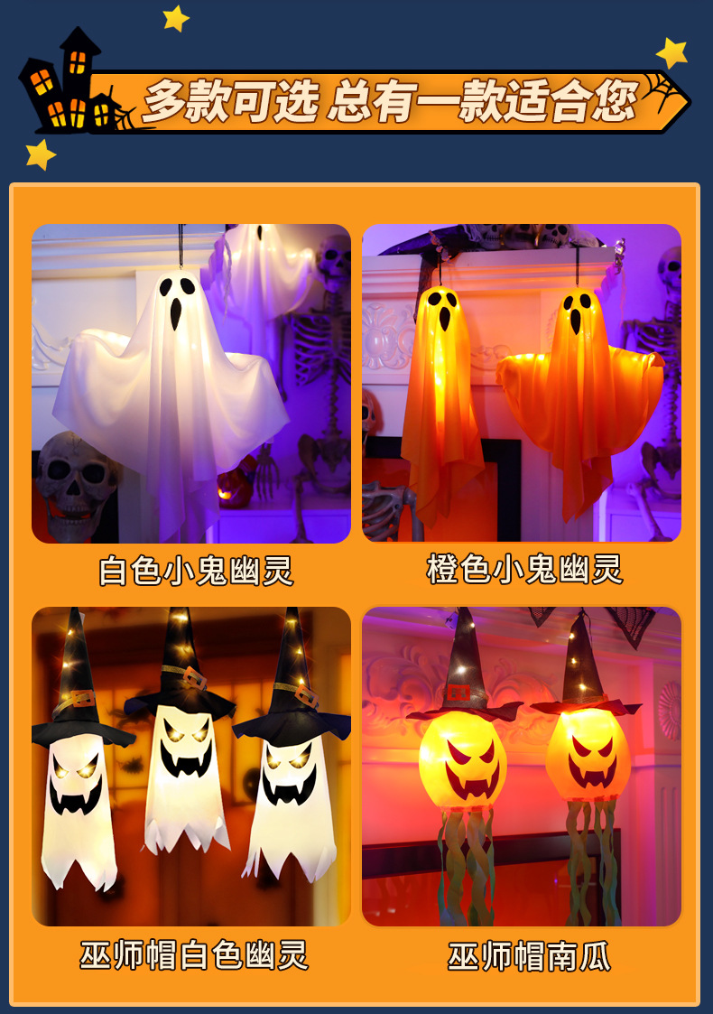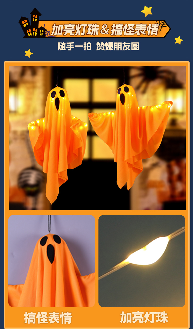 할로윈 빛나는 유령 교수형 유령 펜던트 led 조명 문자열 야외 안뜰 장식 교수형 나무 공포 장면 레이아웃스토어 가기
