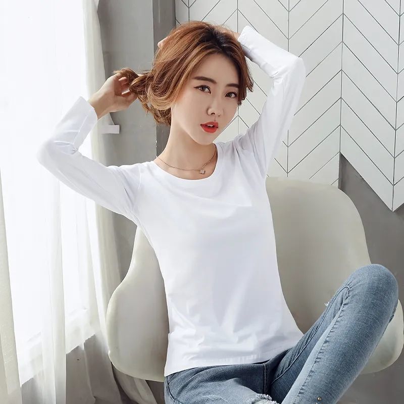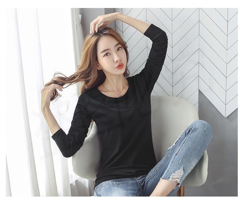 검은 하이 퀄리티 따뜻한베이스 셔츠 2023 봄 가을과 겨울 새로운 긴 소매 올 매치 라운드 넥 티셔츠 슬림 핏 슬리밍 트렌디