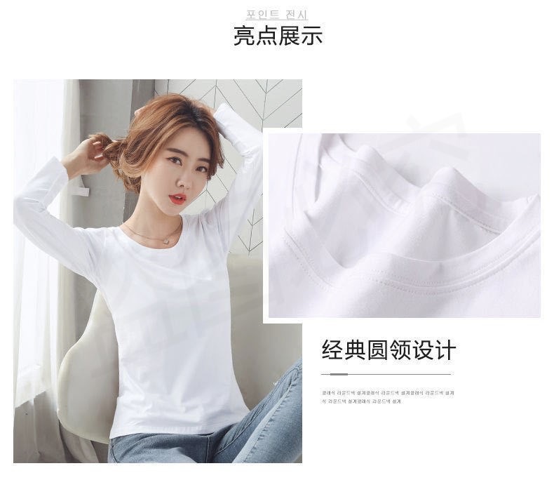 • 여성용 긴팔 : 얇은 스타일 - 라운드 넥 화이트