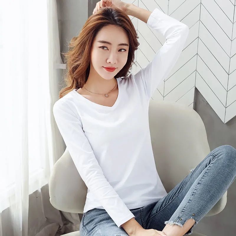 • 긴팔 여성 : 얇은 스타일 - 브이넥 화이트