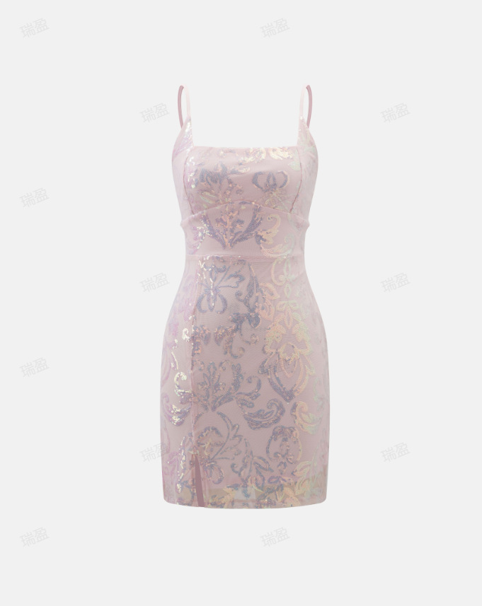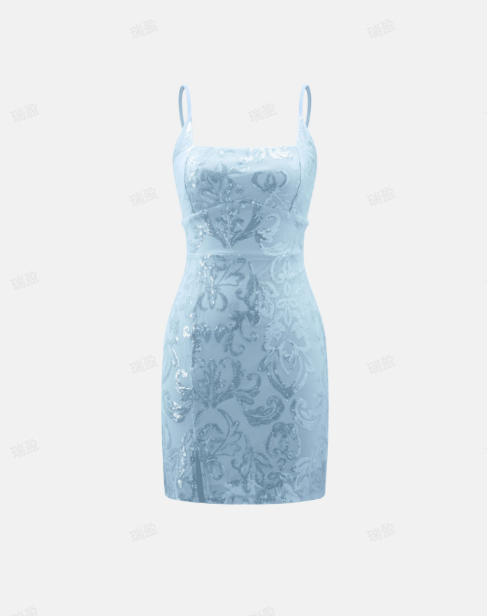 유럽과 미국의 크로스보더 드레스 여성 여름 패션 스팽글 서스펜더 백리스 드레스 짧은 스커트 (4가지 색상)