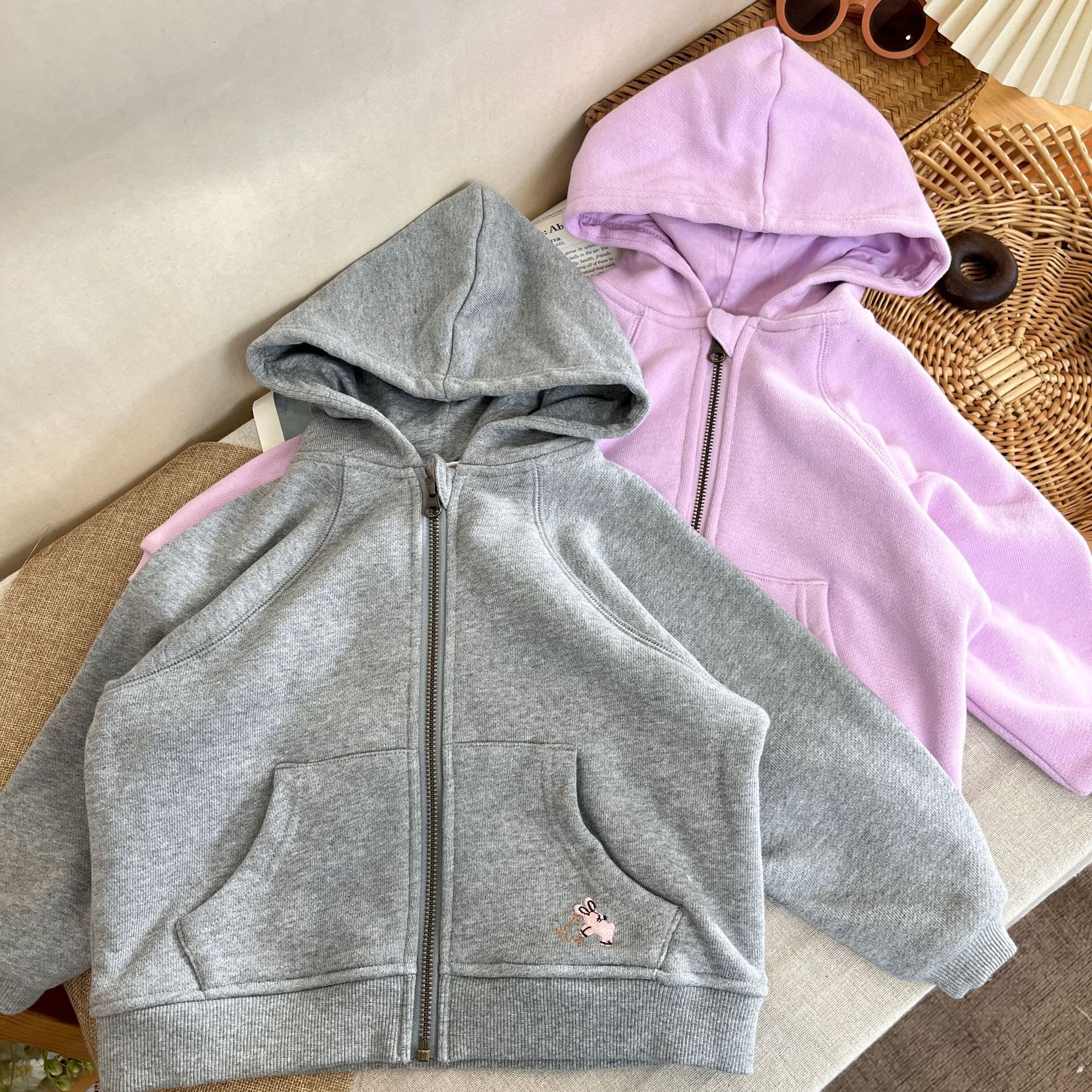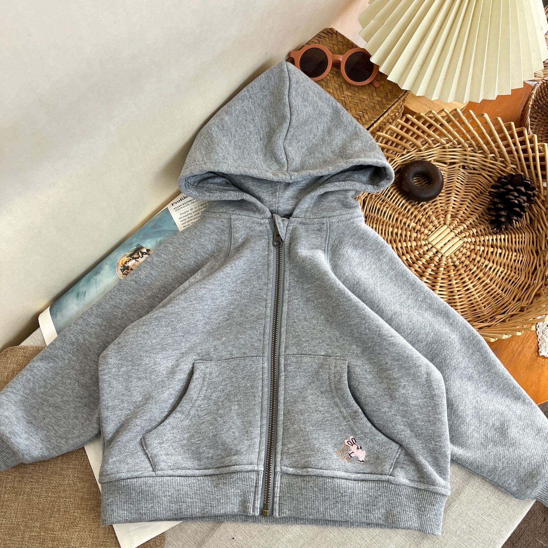 재고 있음~2026년 봄 신상 아기 유치원생용 귀여운 만화 자수 후드티셔츠, 스타일리쉬한 아동용 아우터스토어 가기