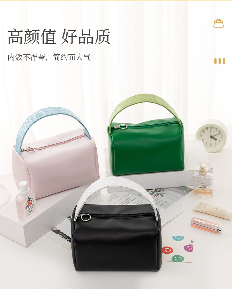 새로운 PU 방수 화장품 가방 대용량 여행 휴대용 화장실 가방 캔디 컬러 간단한 휴대용 화장품 보관 가방