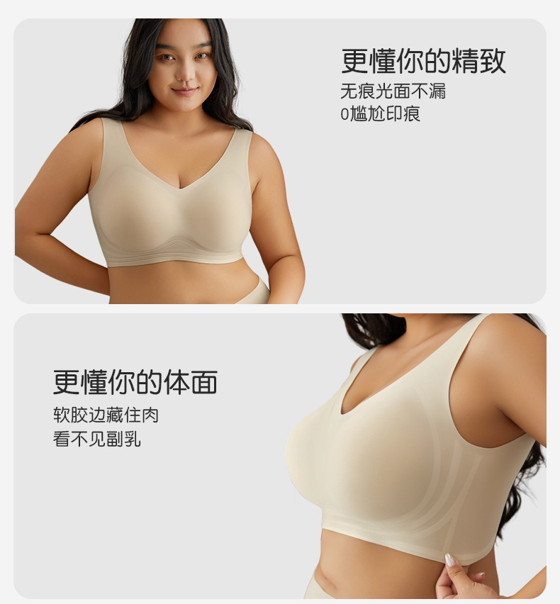 국경 간 통통녀 Tracless 플러스 사이즈 속옷 여성의 큰 가슴 쇼케이스 작은 처짐 편안한 비 림 얇은 대형 가슴 브래지어스토어 가기