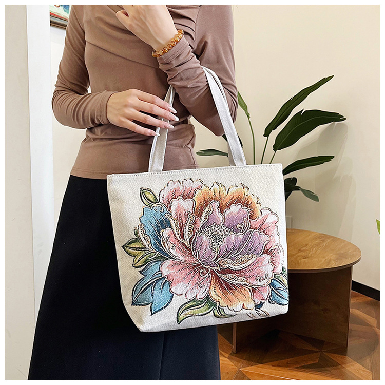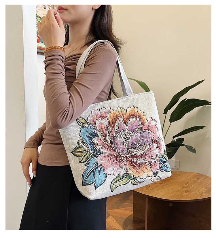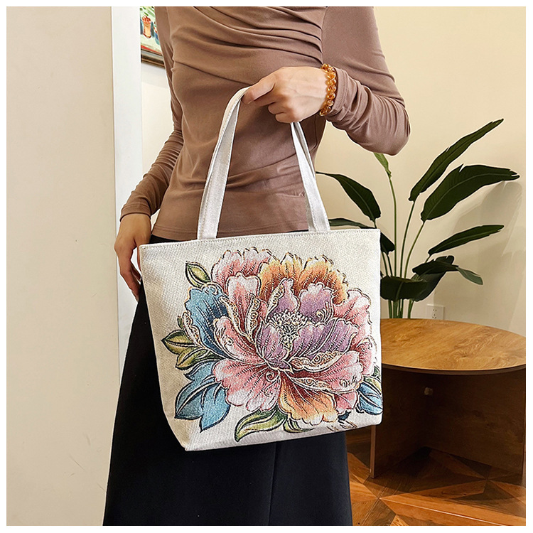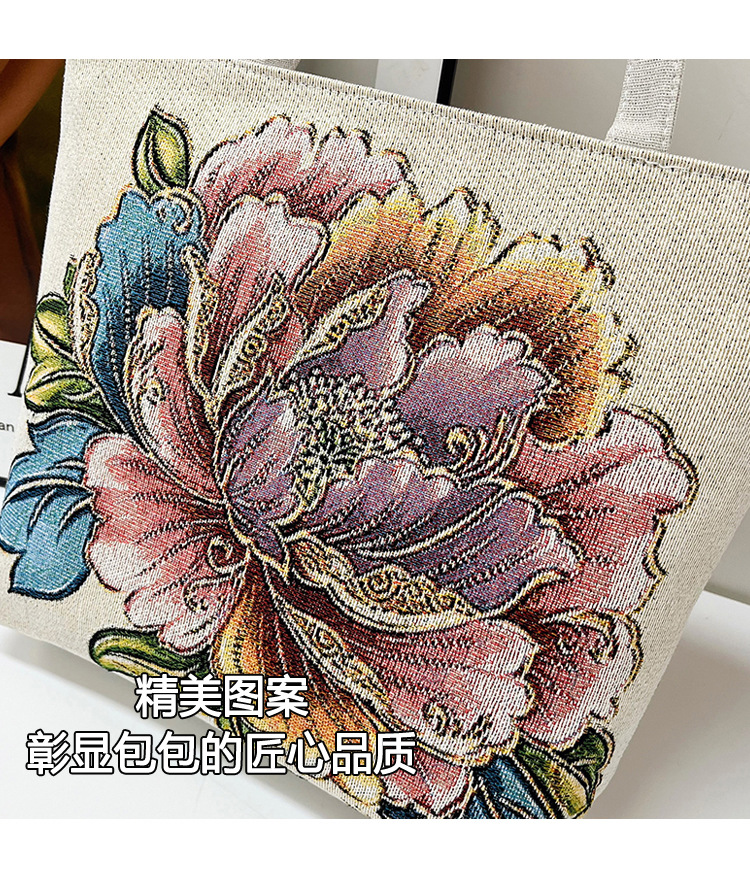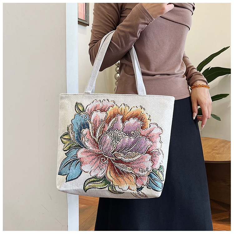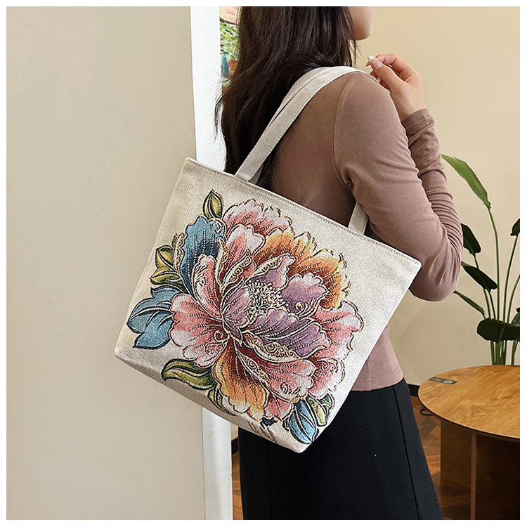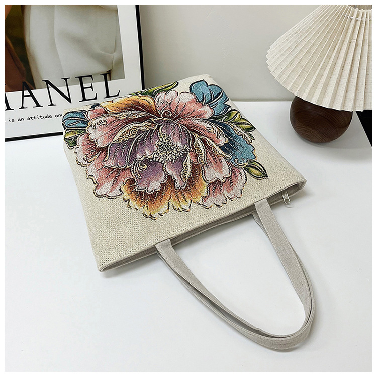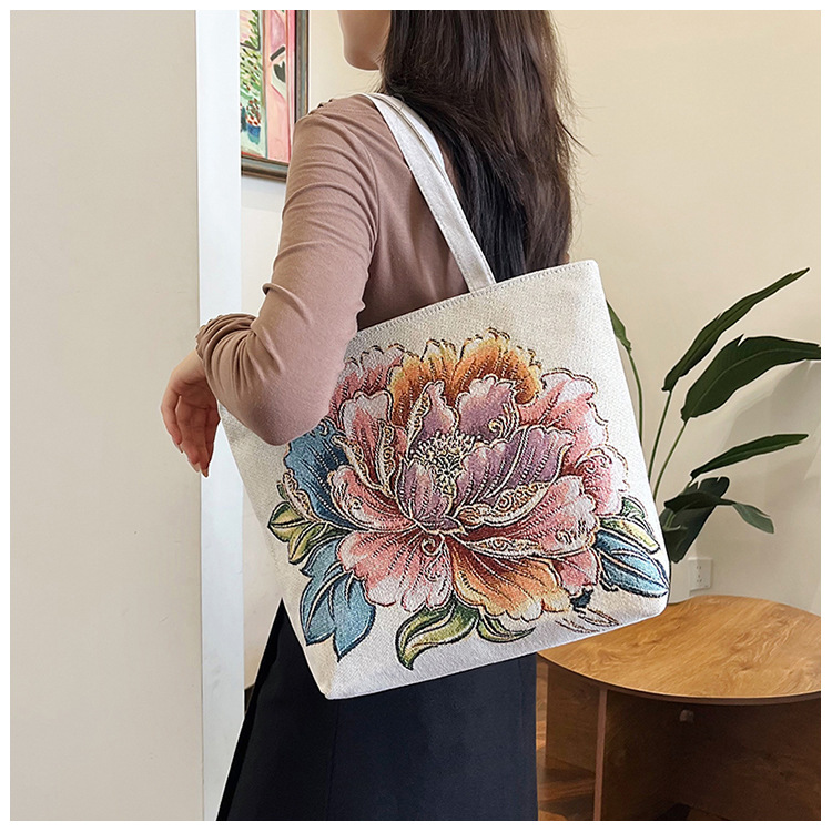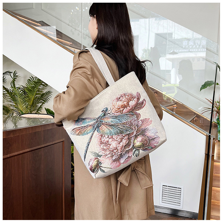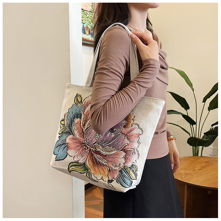 양면 골드 자수 자카드 캔버스 가방 대용량 미라 가방 간단한 예술적 어깨 가방 민족 스타일 토트 백