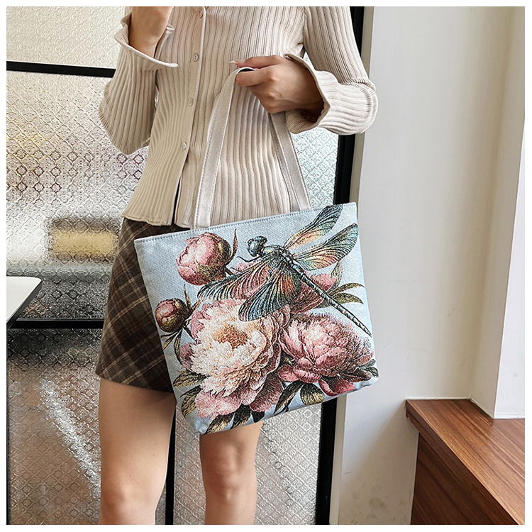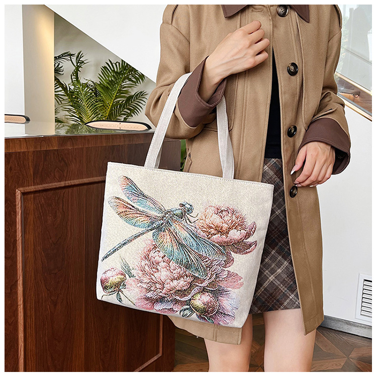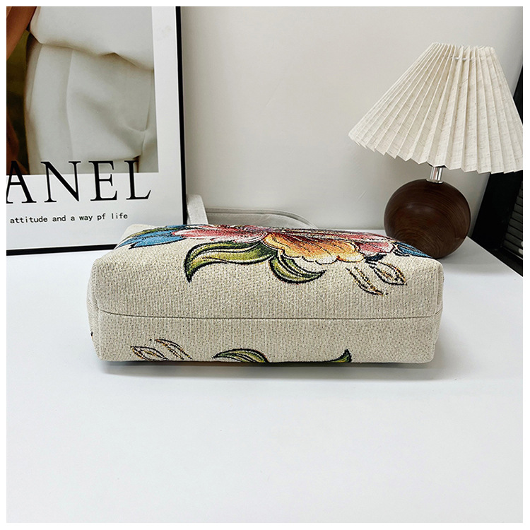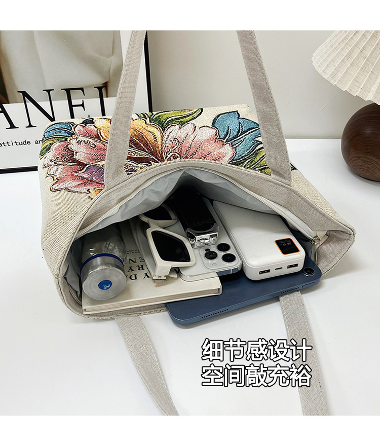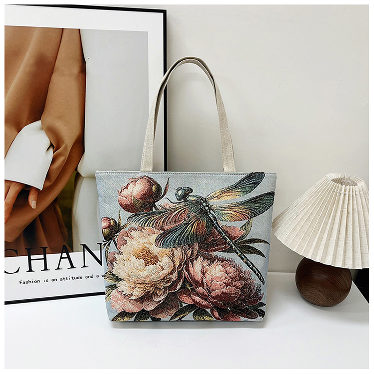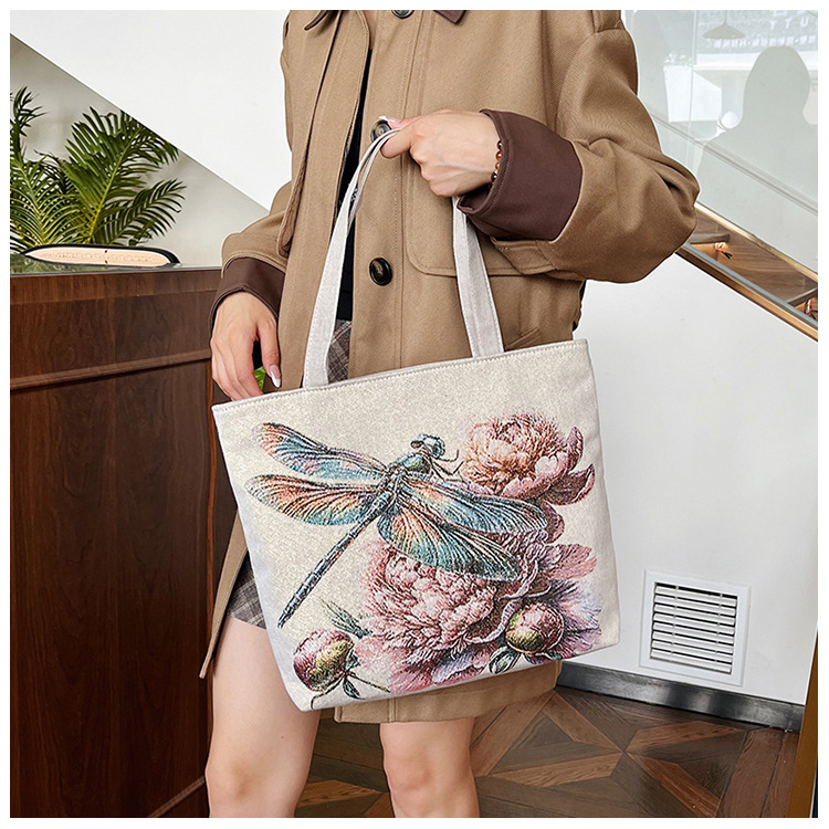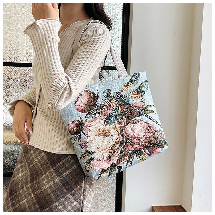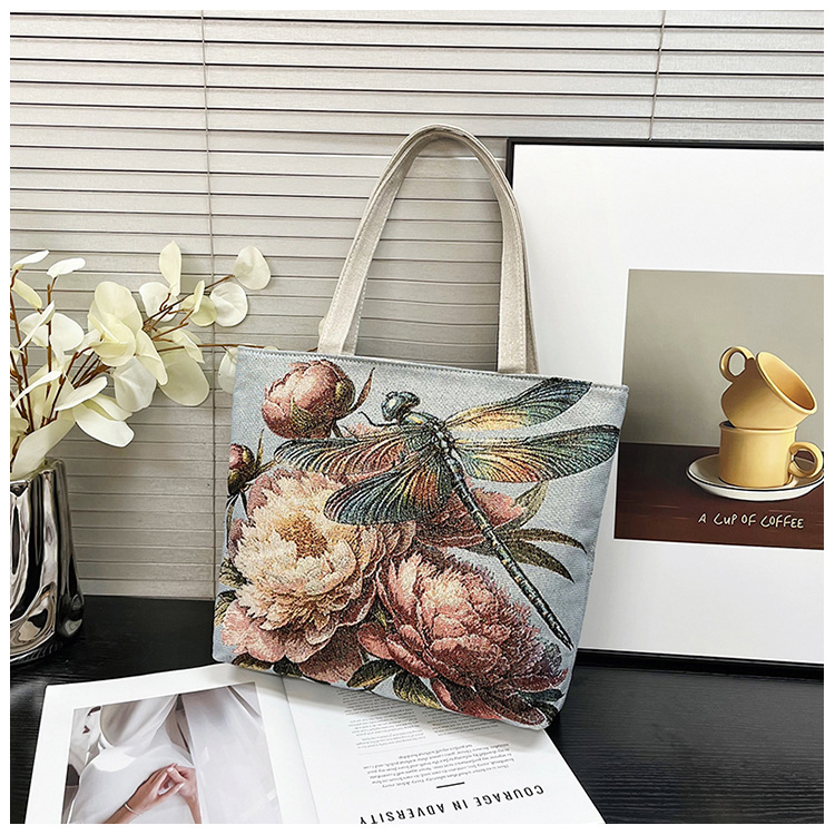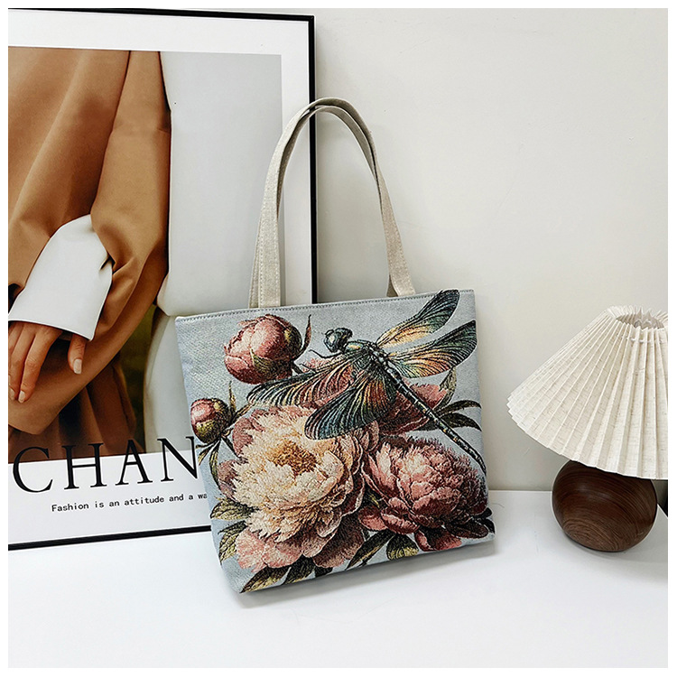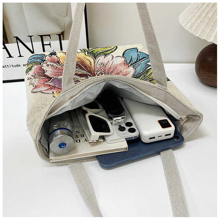 양면 골드 자수 자카드 캔버스 가방 대용량 미라 가방 간단한 예술적 어깨 가방 민족 스타일 토트 백