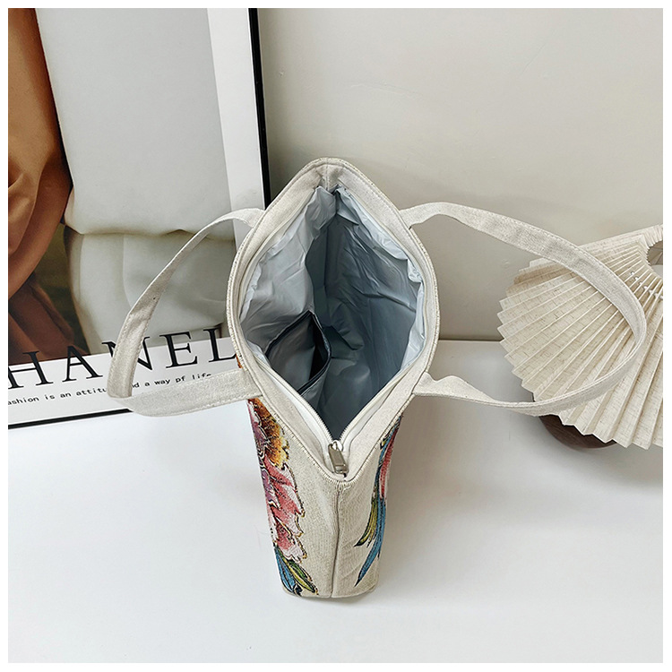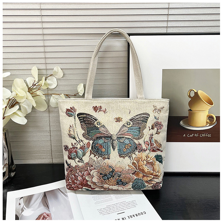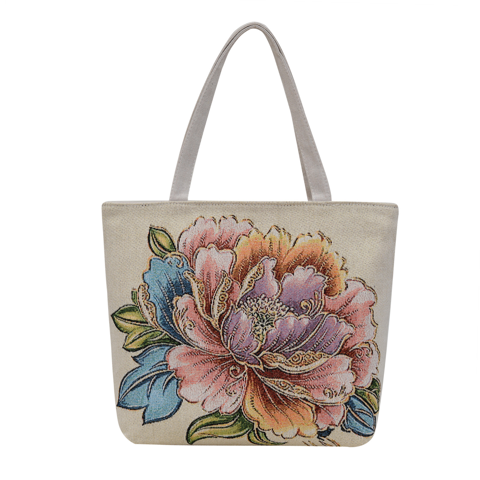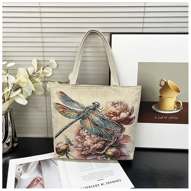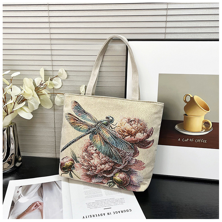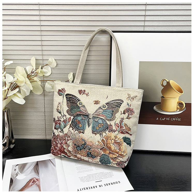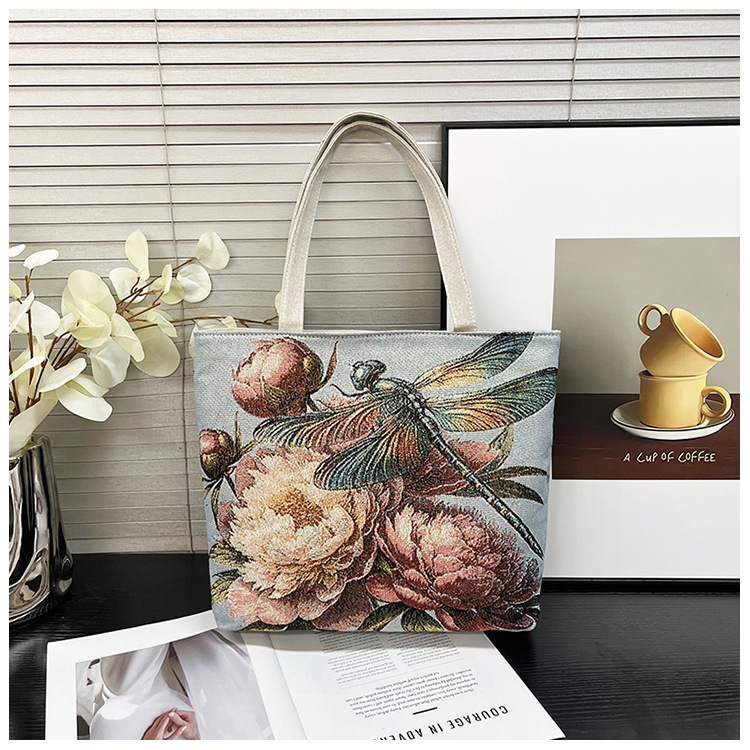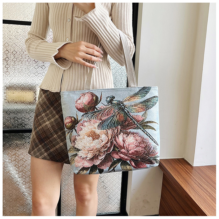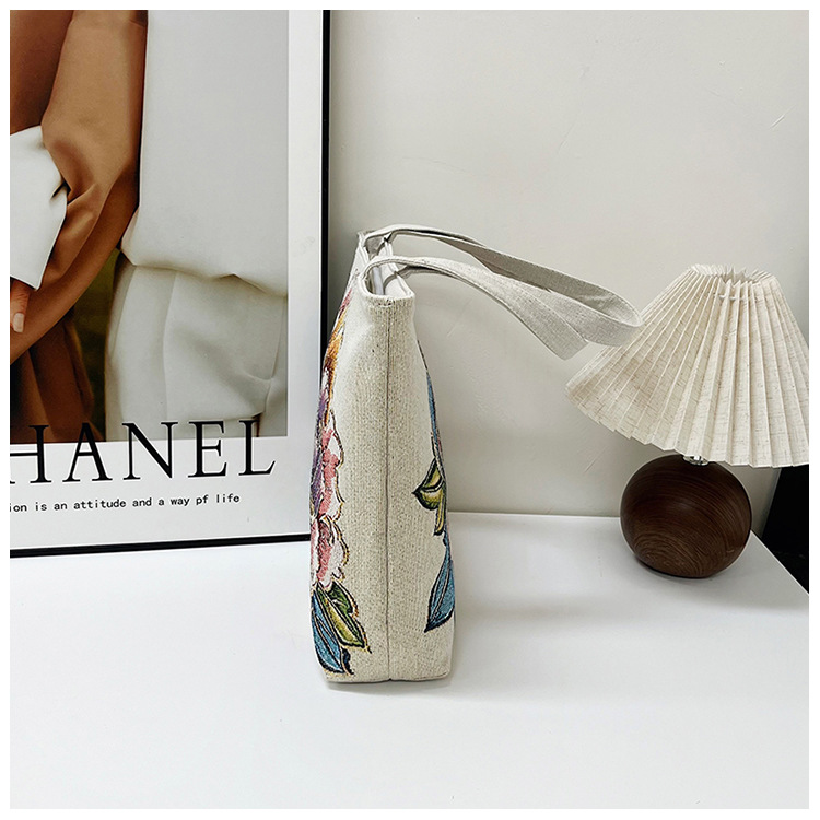 양면 골드 자수 자카드 캔버스 가방 대용량 미라 가방 간단한 예술적 어깨 가방 민족 스타일 토트 백
