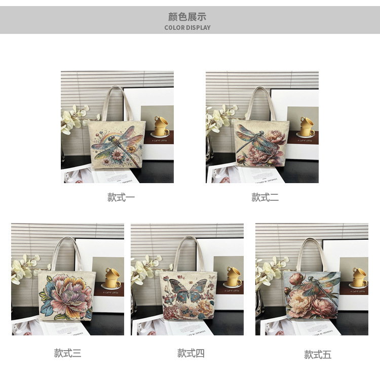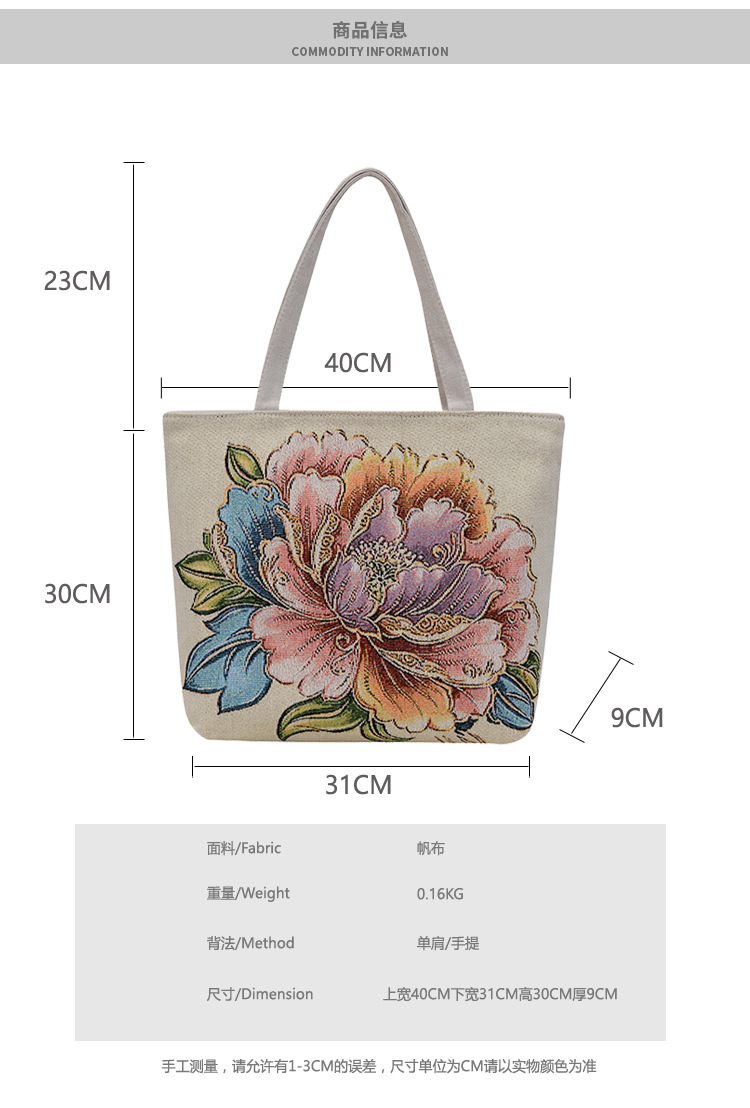양면 골드 자수 자카드 캔버스 가방 대용량 미라 가방 간단한 예술적 어깨 가방 민족 스타일 토트 백스토어 가기