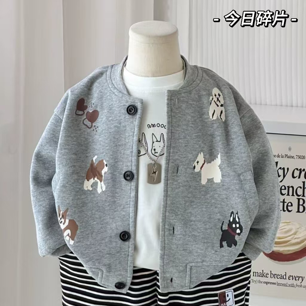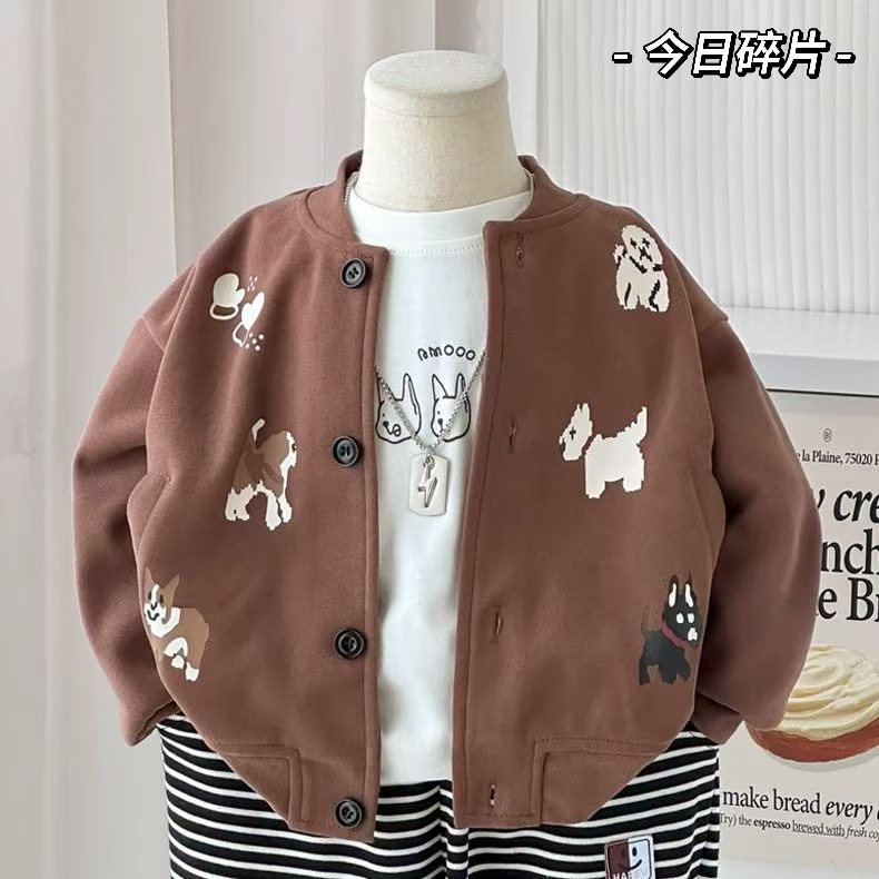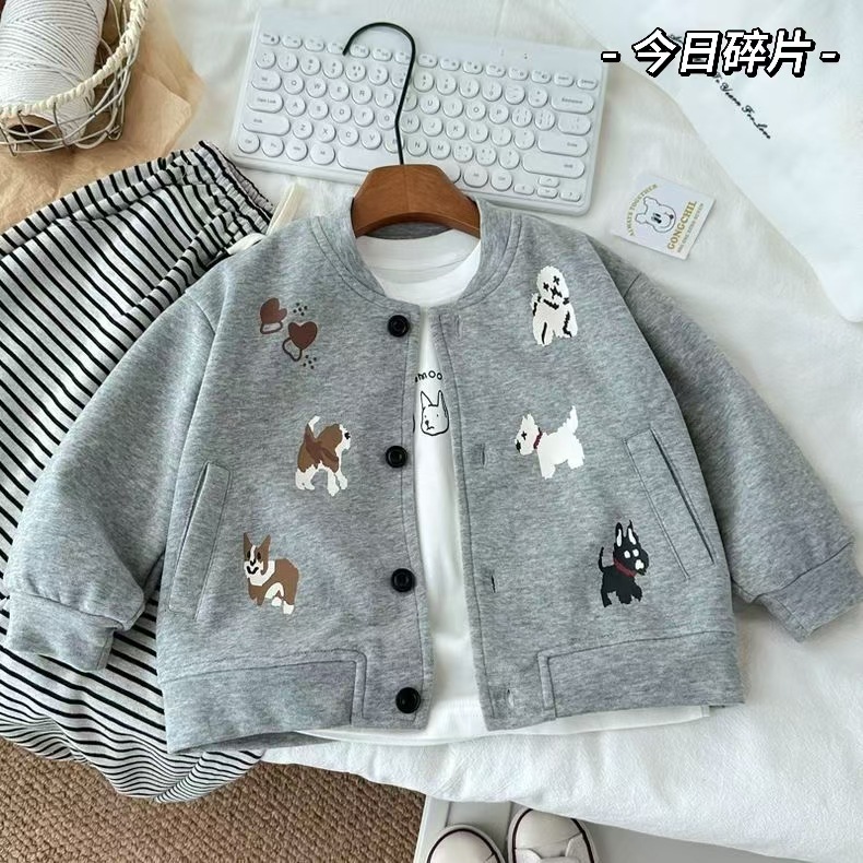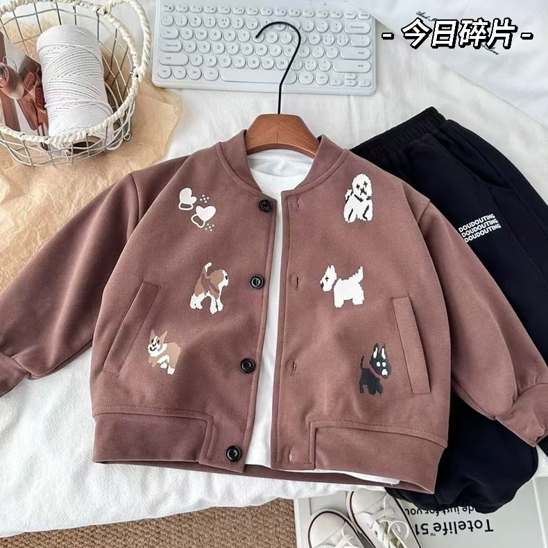 2024 봄과 가을 새로운 어린이 스웨터 카디건 가을 작은 소년 아기 야구 세트 코트 캐주얼 탑
