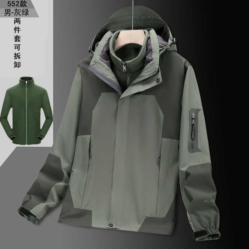 가을과 겨울 야외 재킷 남자의 3-1 2 조각 탈착식 방풍 방수 하이킹 세트 여성용 재킷