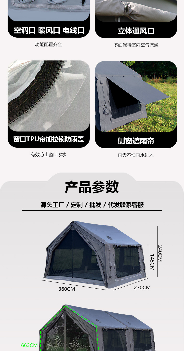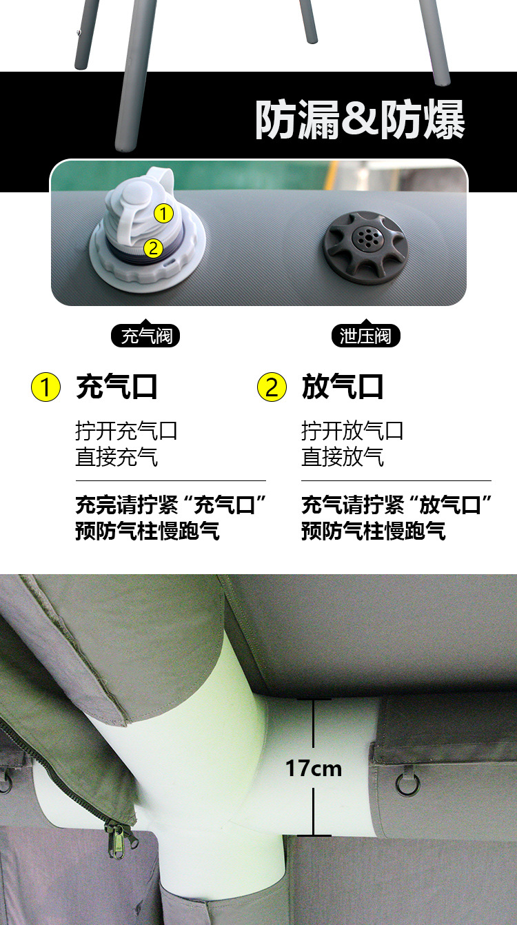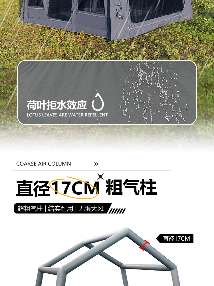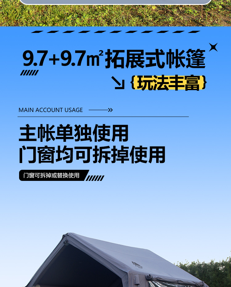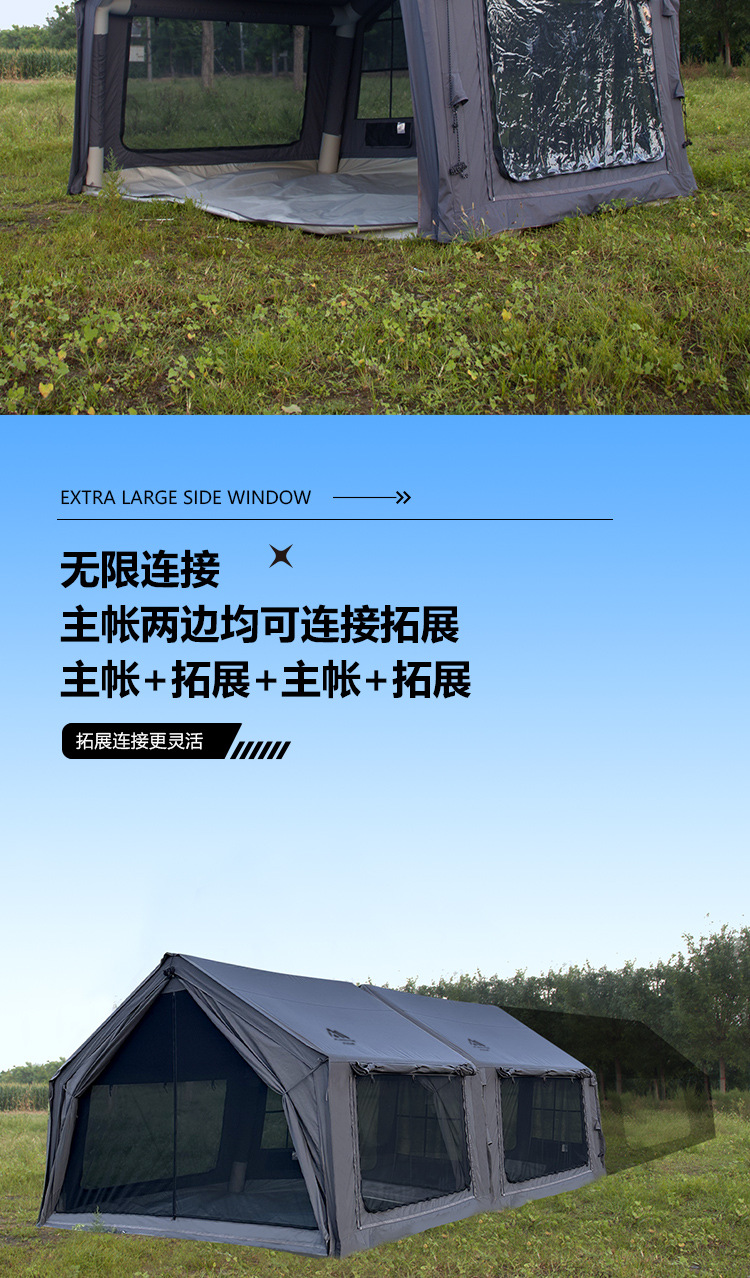 • 하우스 9.7+9.7 ㎡ (확장 공기 기둥 + 메인 텐트 + 확장 + 탈착식 전망 커튼) (캐노피 폴 제외)