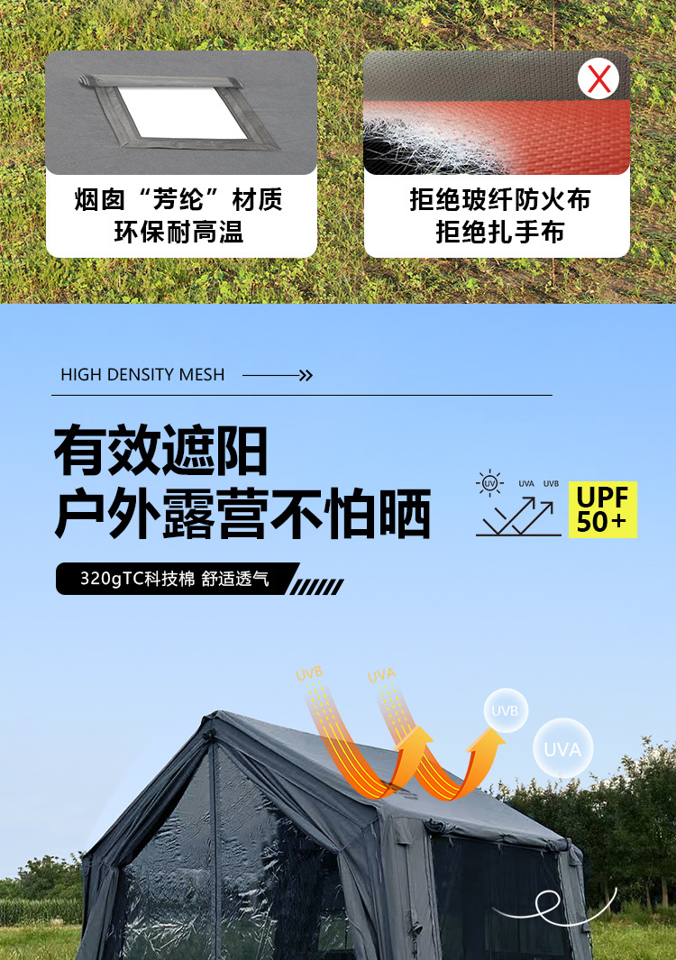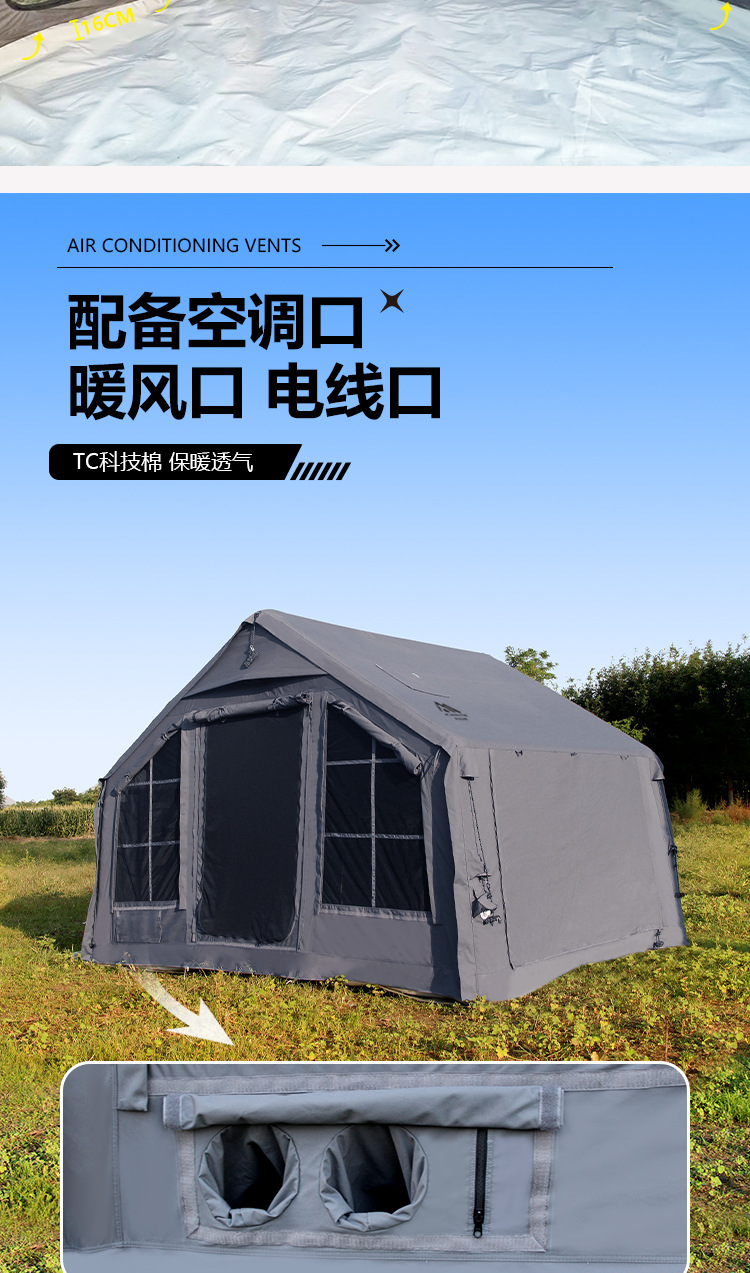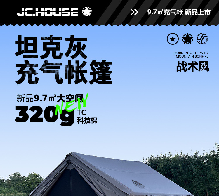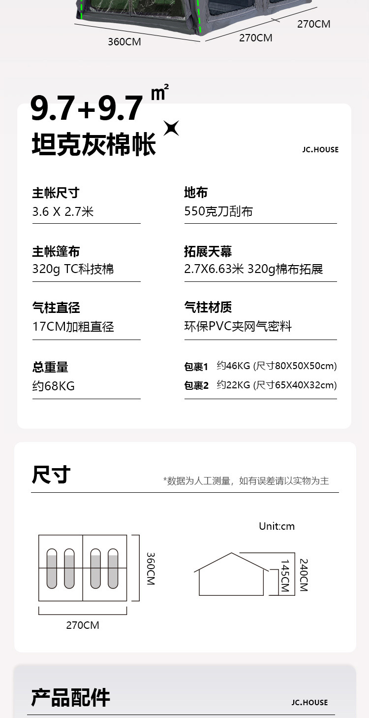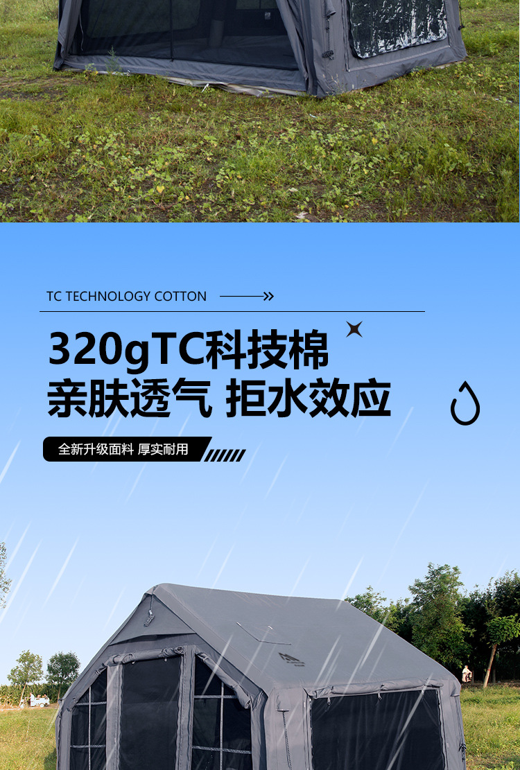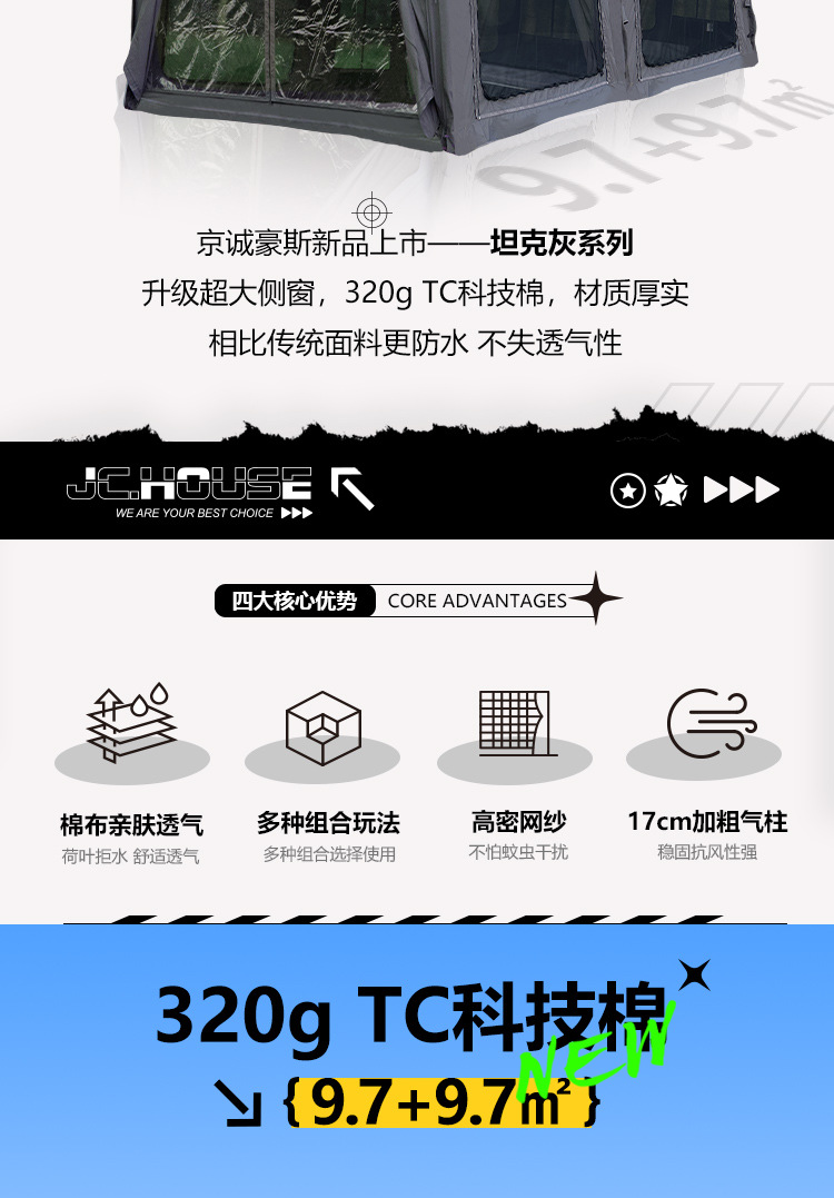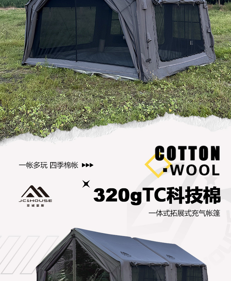 징청하우스JcHouse19.4 ㎡ (9.7+9.7 ㎡ 320g 면 소재 에어 텐트 하이킹 텐트