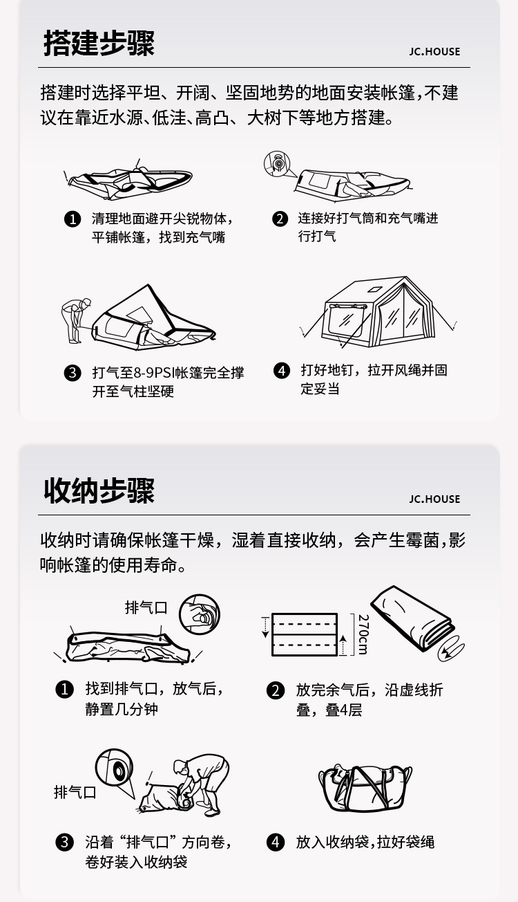 징청하우스JcHouse19.4 ㎡ (9.7+9.7 ㎡ 320g 면 소재 에어 텐트 하이킹 텐트스토어 가기