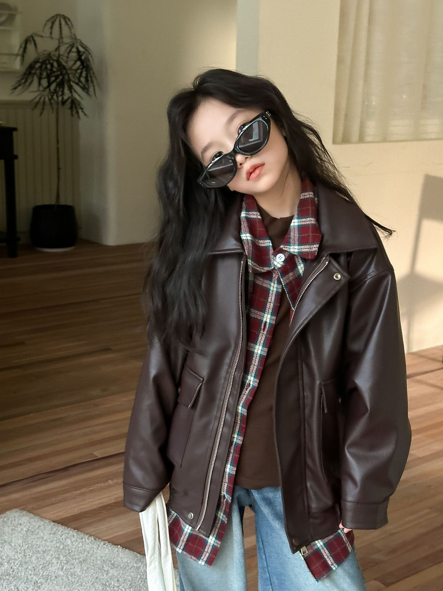 TCkids 봄 컬렉션 빈티지 메일라드 컬러 레트로 니치 커피 컬러 가죽 자켓스토어 가기
