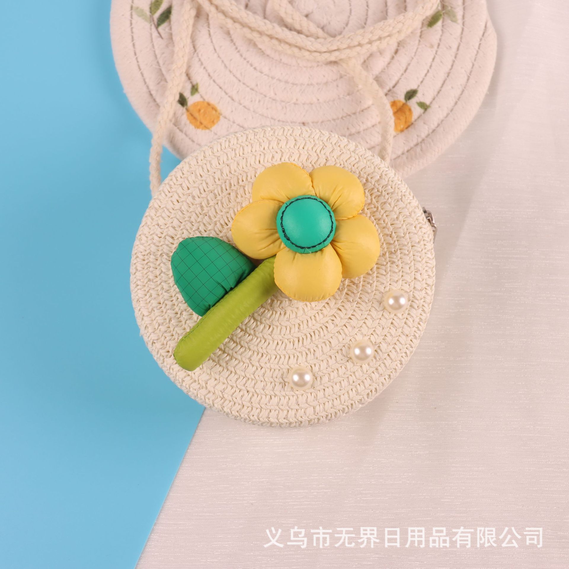 봄과 여름 새로운 어린이 밀짚 진주 작은 가방 여성의 귀여운 크로스 바디 라운드 가방 공주 유행 어깨 가방