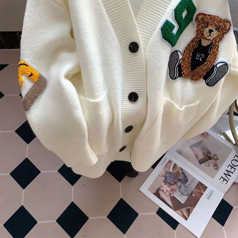 일본식 카툰 베어 스웨터 여성의 느슨한 슬리밍 칼리지 스타일 올 매치 에이지 감소 스웨터 가을과 겨울 여자 자켓스토어 가기