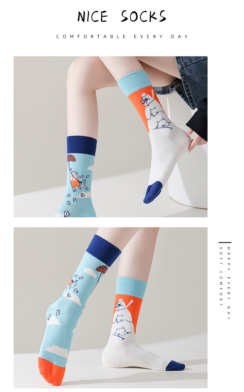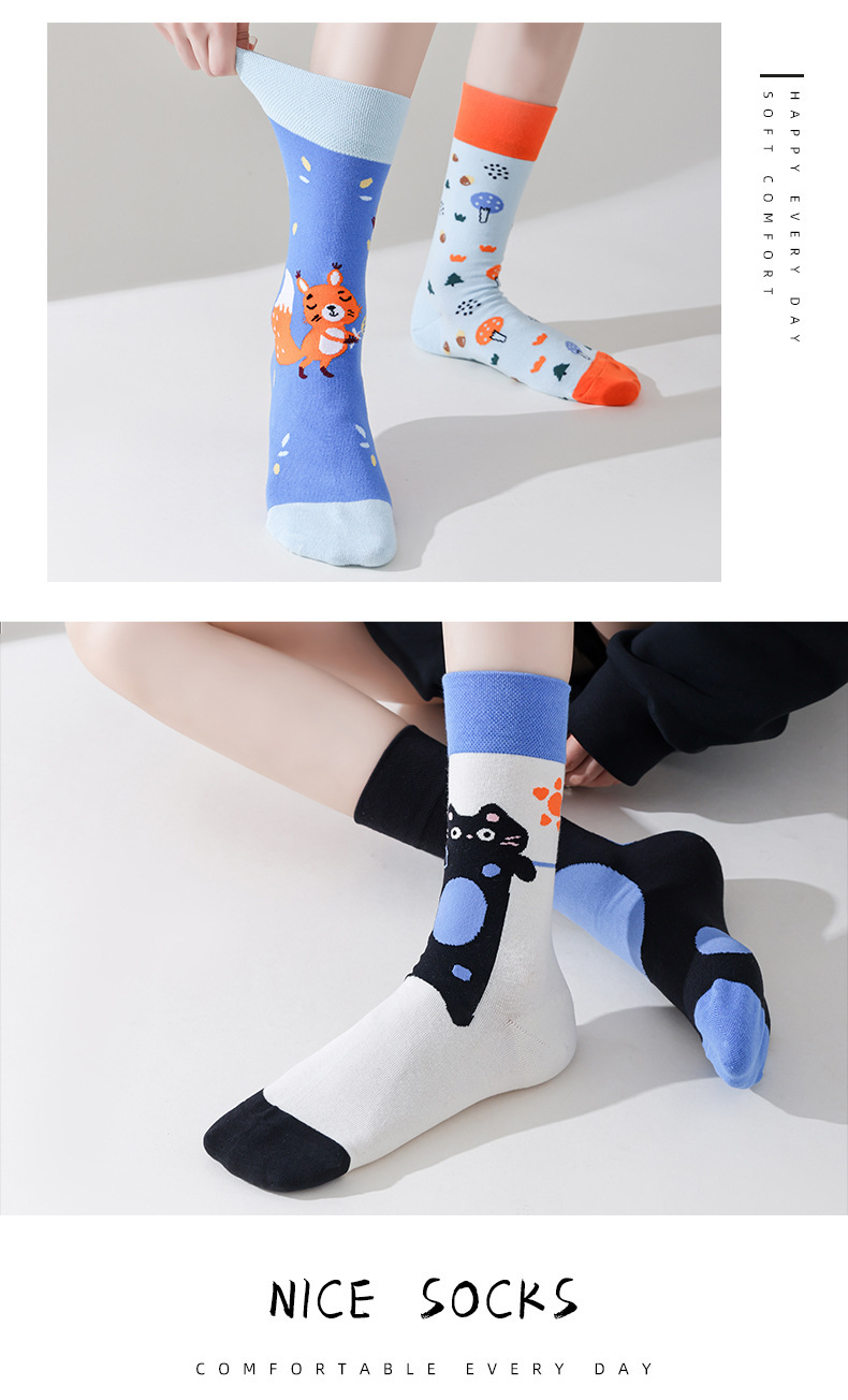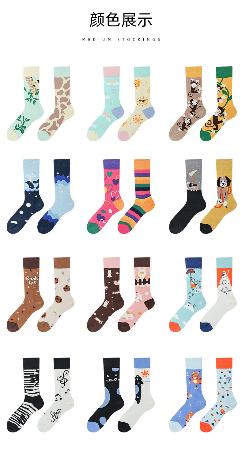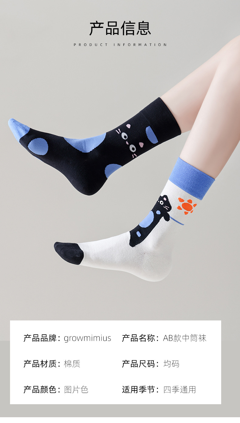 원래 AB 양말 비대칭 중간 배럴 콤베드 코튼 양말 창조적 인 인터넷 연예인 만다린 오리 양말 패션 성격 트렌드 커플 양말