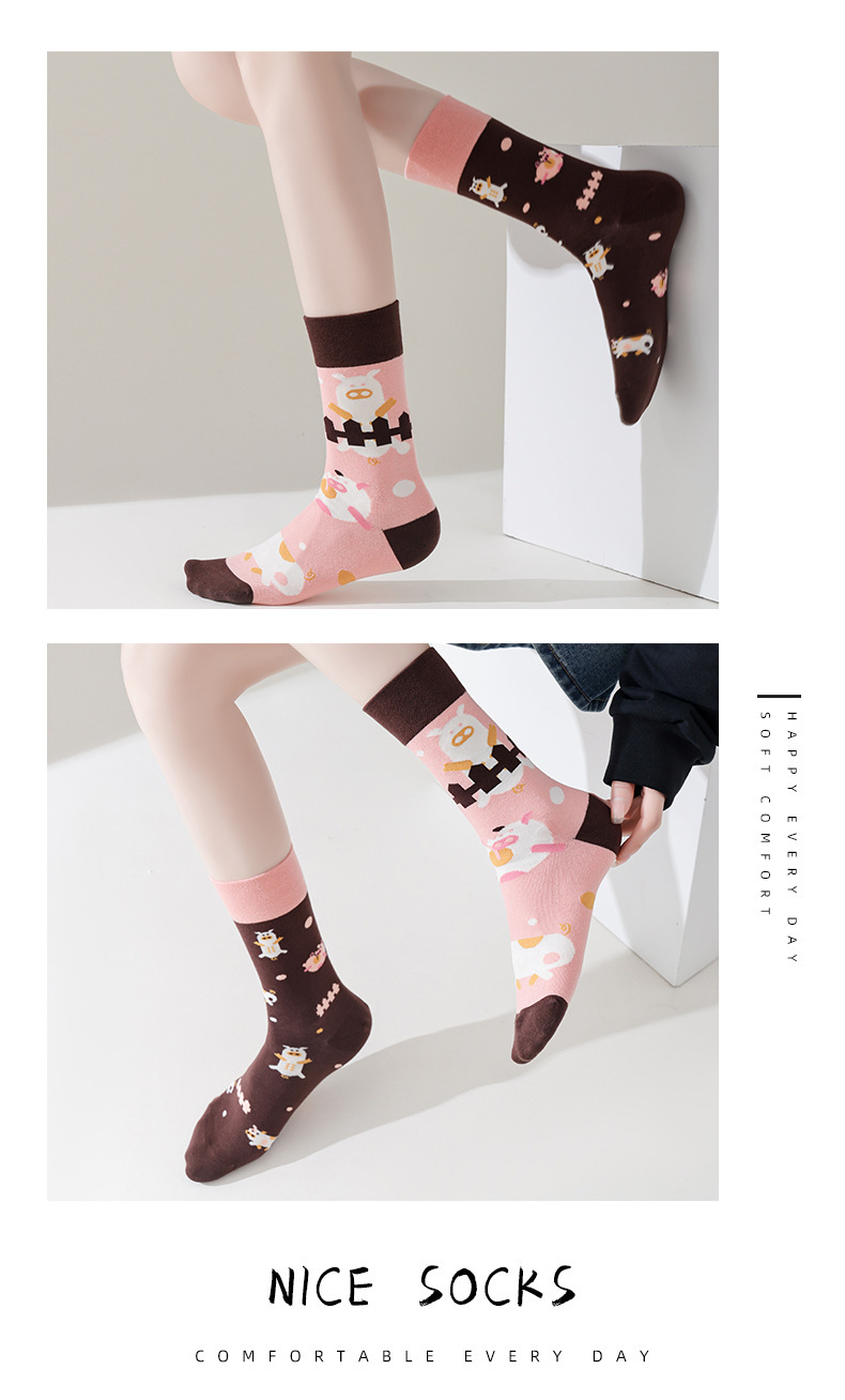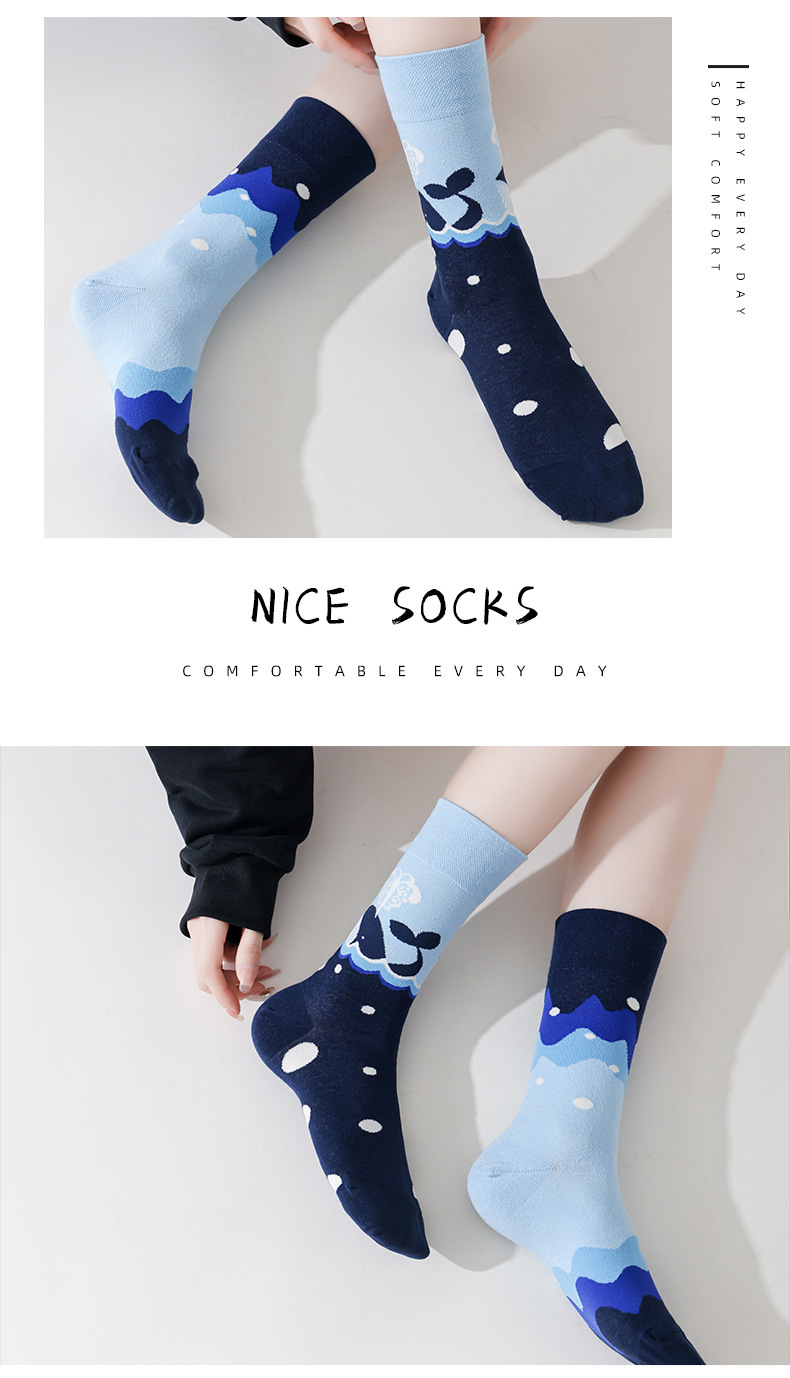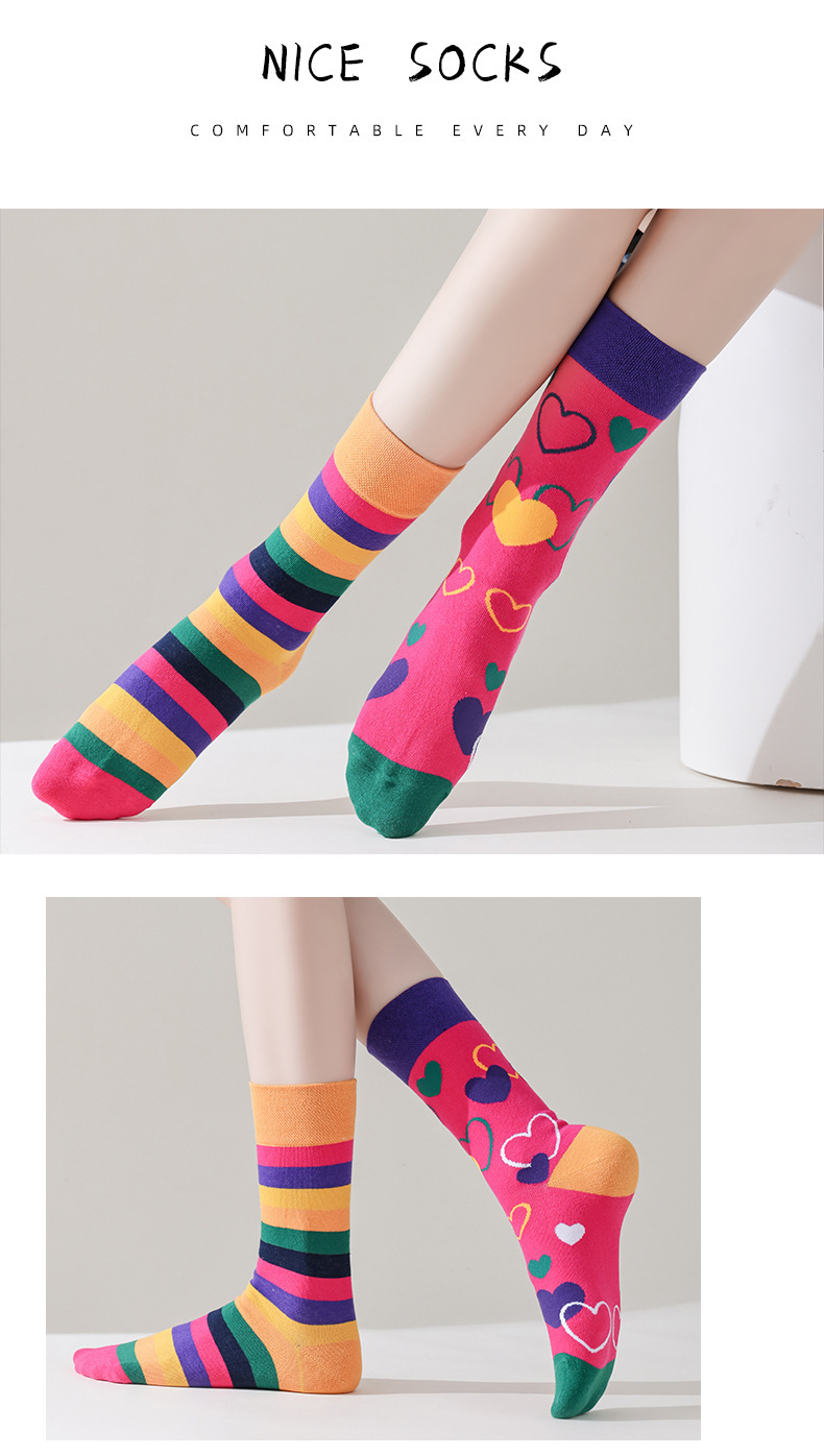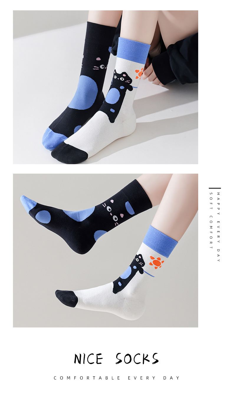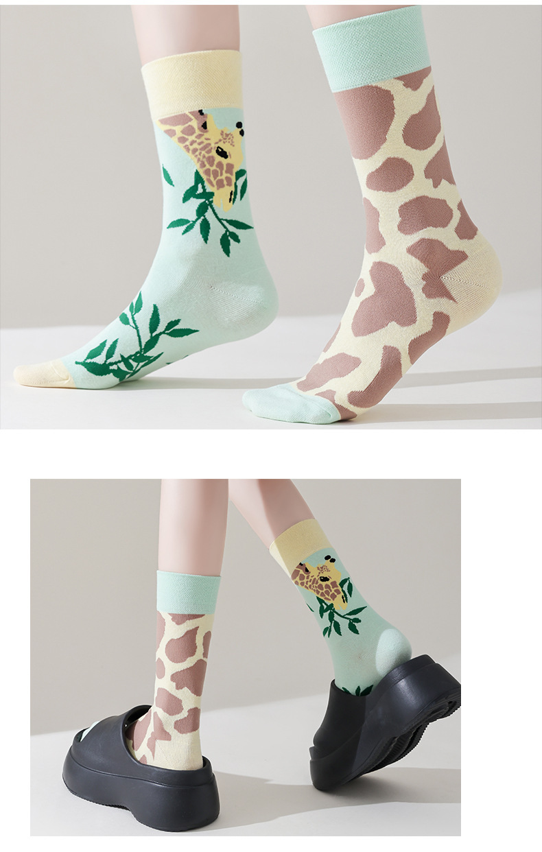 원래 AB 양말 비대칭 중간 배럴 콤베드 코튼 양말 창조적 인 인터넷 연예인 만다린 오리 양말 패션 성격 트렌드 커플 양말
