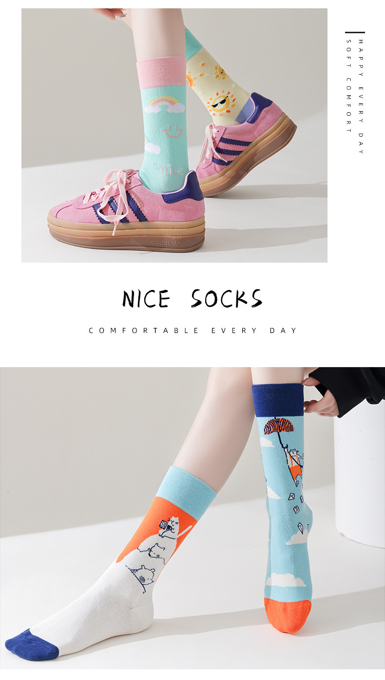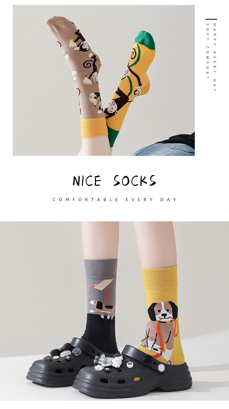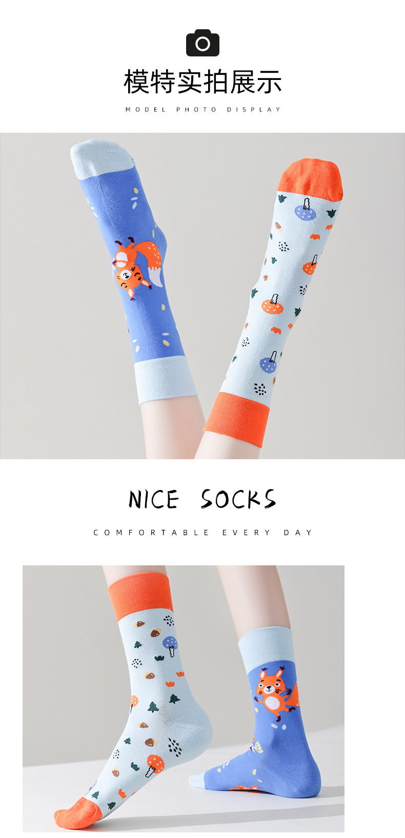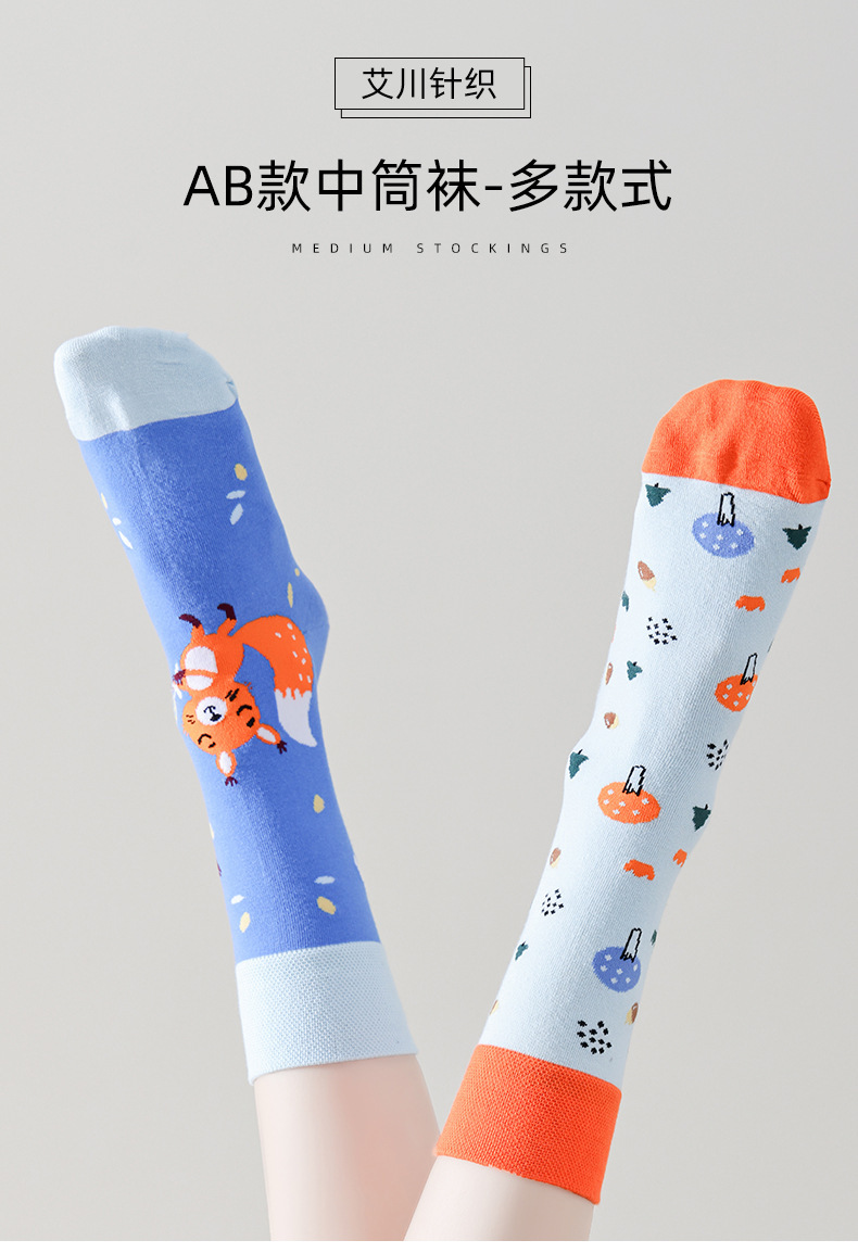 원래 AB 양말 비대칭 중간 배럴 콤베드 코튼 양말 창조적 인 인터넷 연예인 만다린 오리 양말 패션 성격 트렌드 커플 양말스토어 가기