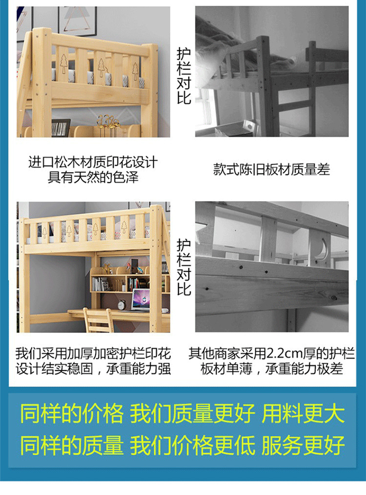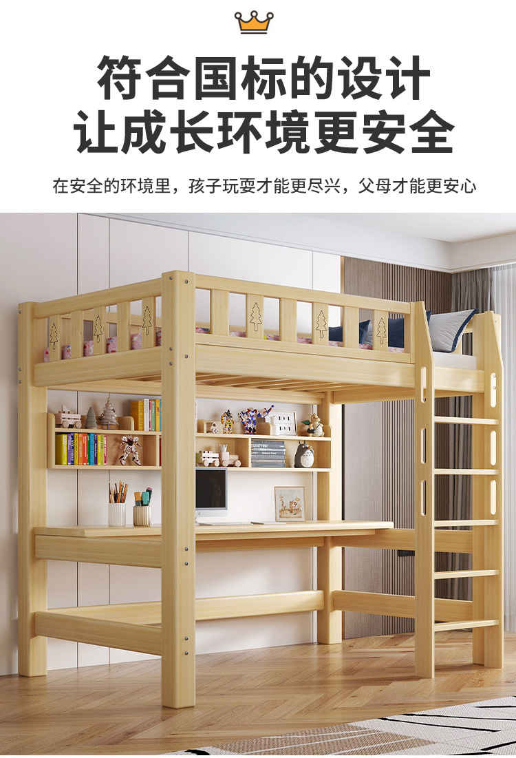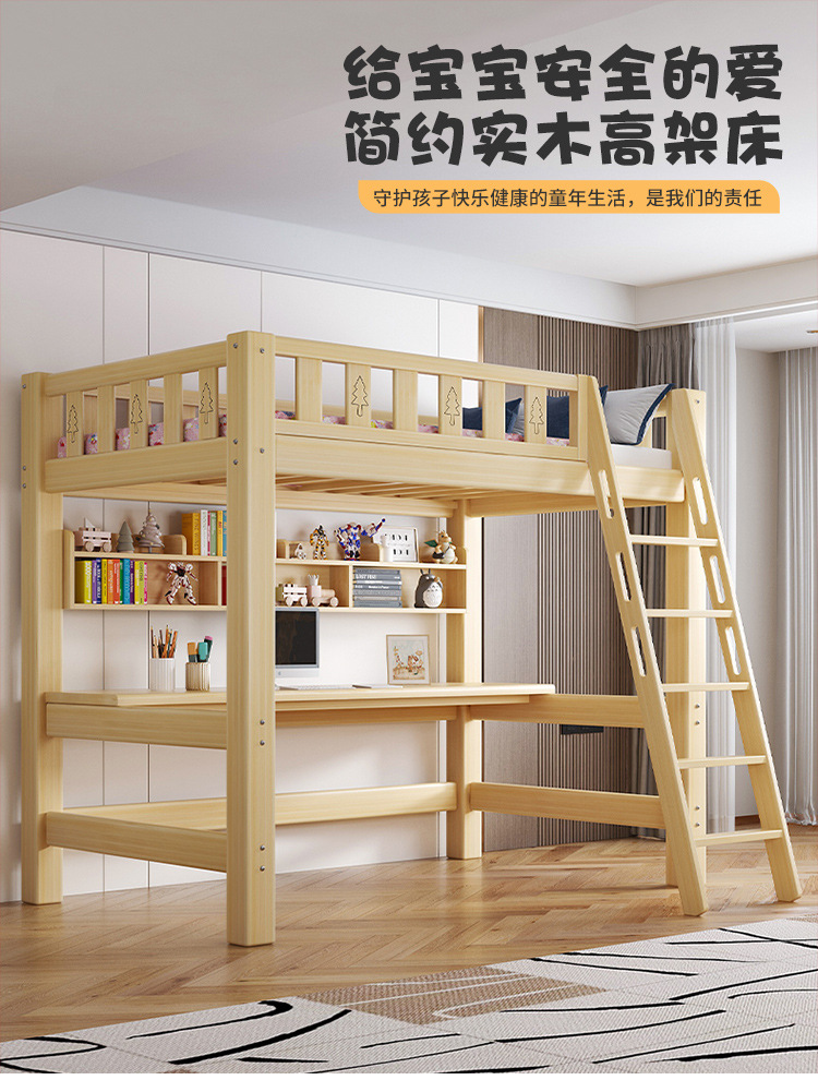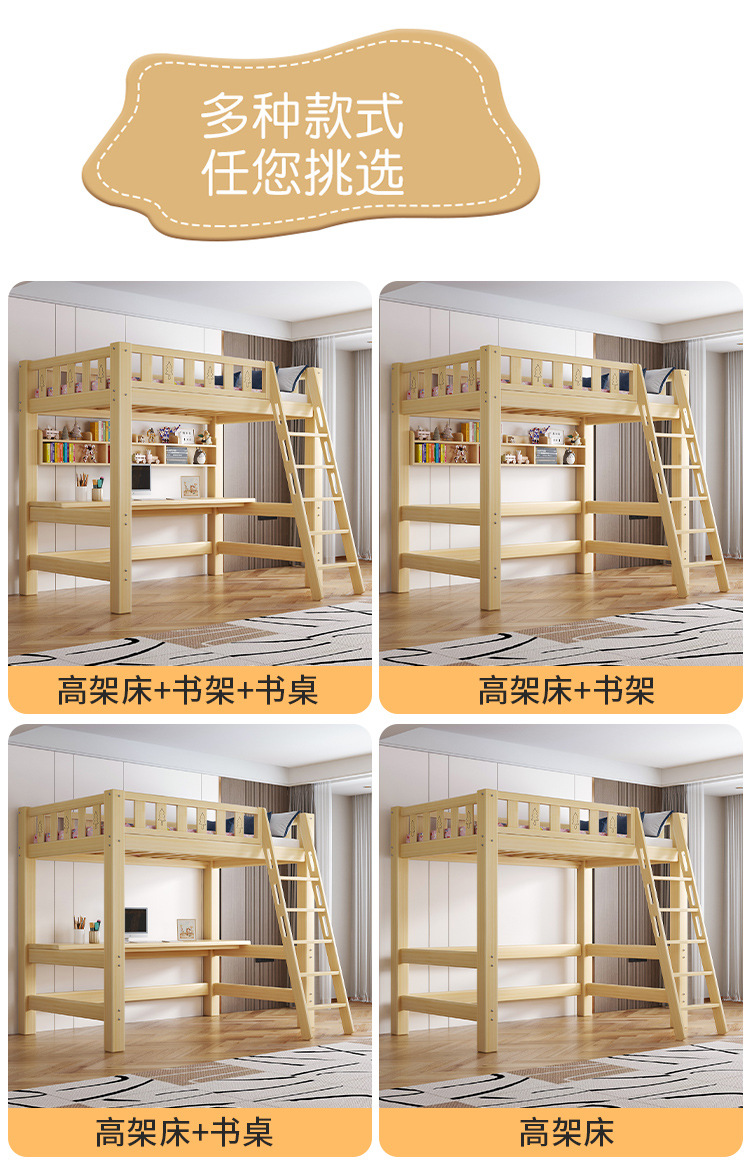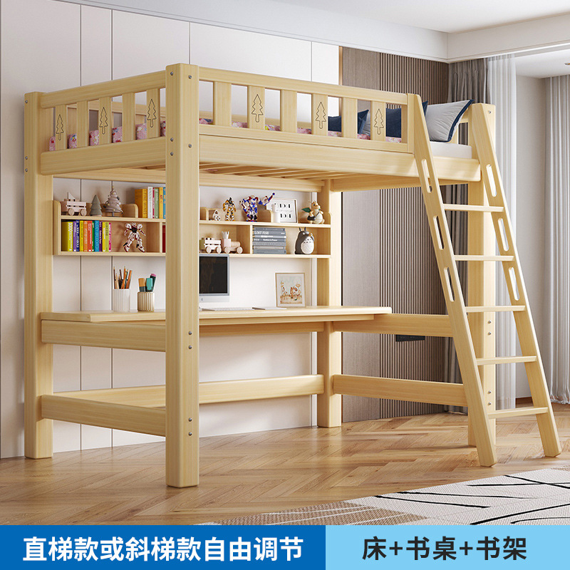 단단한 나무 높은 침대 시트 상부 빈 침대 책상 책장 통합 침대 조합 침대 어린이 책상 작은 아파트스토어 가기