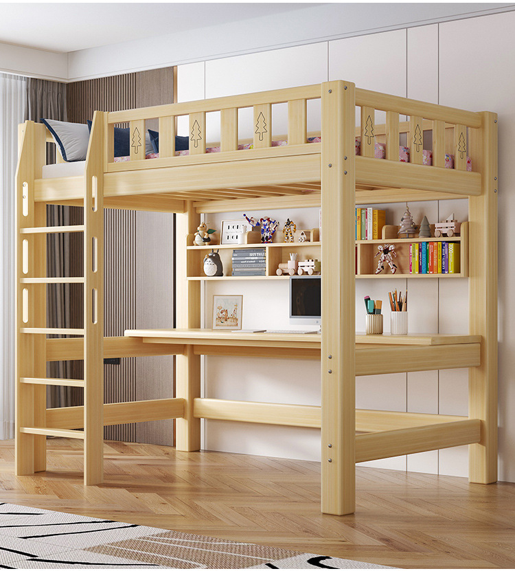 단단한 나무 높은 침대 시트 상부 빈 침대 책상 책장 통합 침대 조합 침대 어린이 책상 작은 아파트