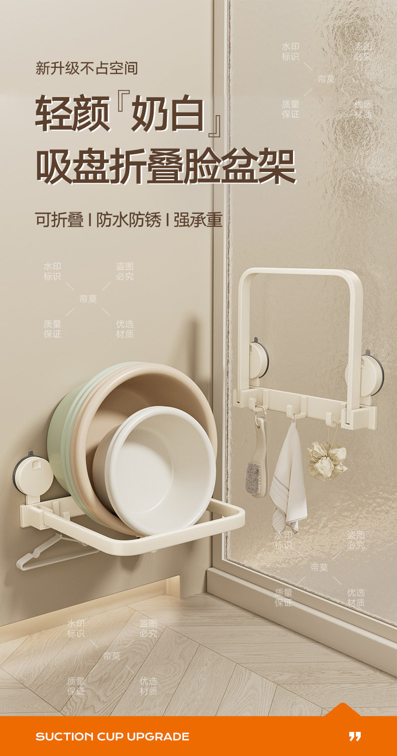• "흡입 컵 ""밀크 화이트"" 접이식 세면대 스탠드"