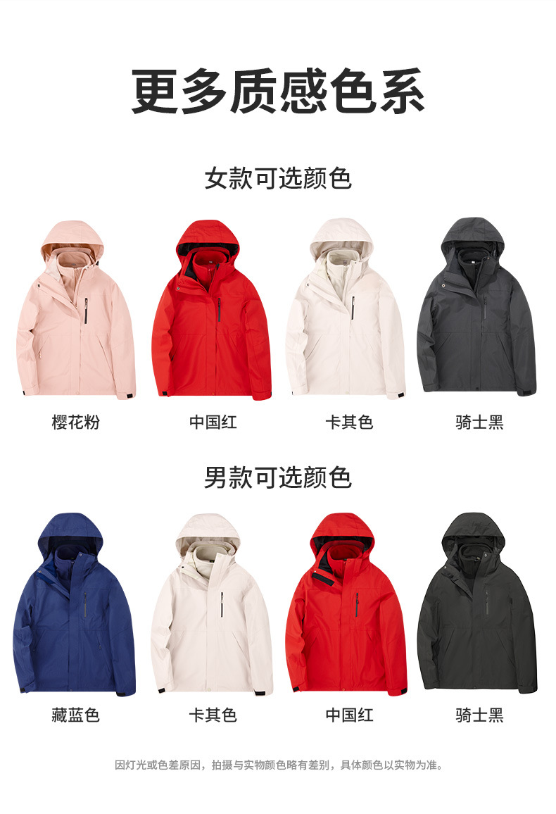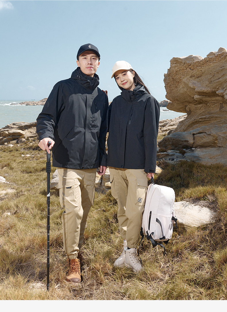 분리 가능한 3 대 1 새 가을과 겨울 방풍 따뜻한 커플 외투를 세트 남성과 여성을위한 야외 폭행 옷스토어 가기