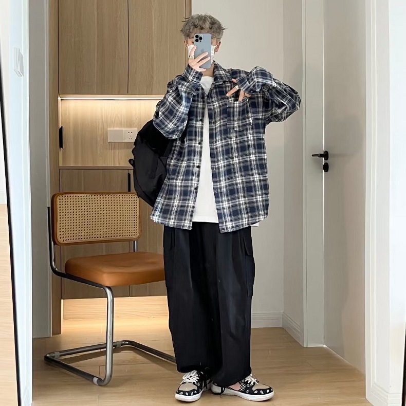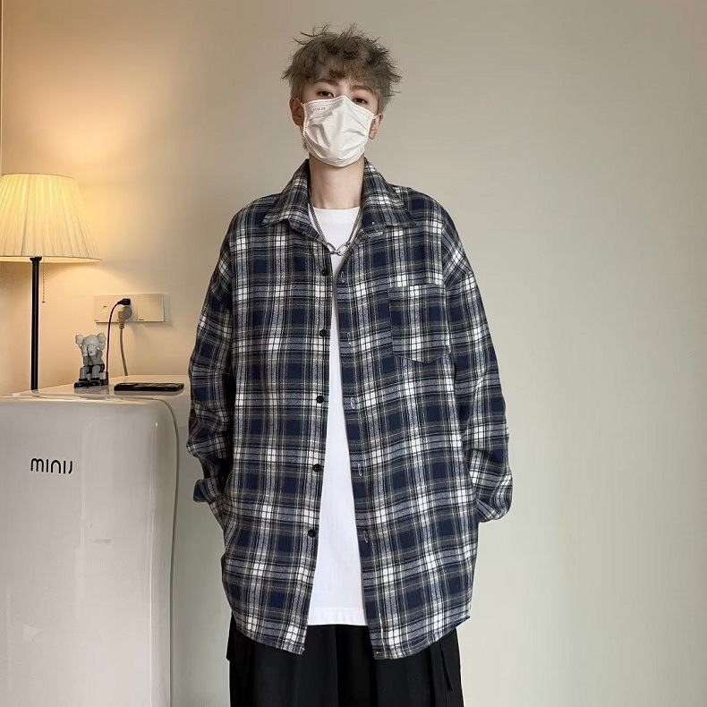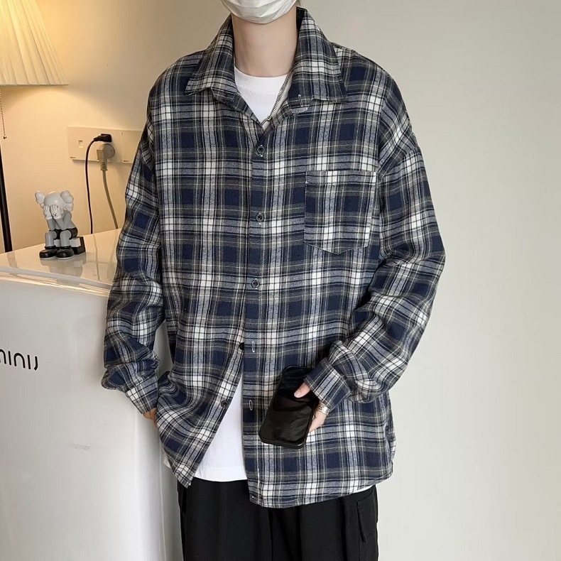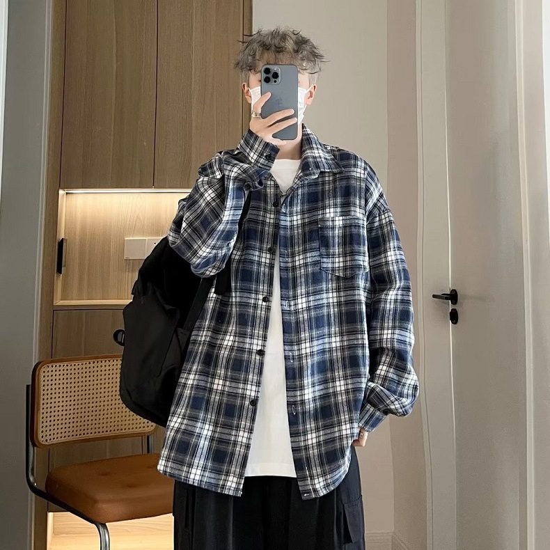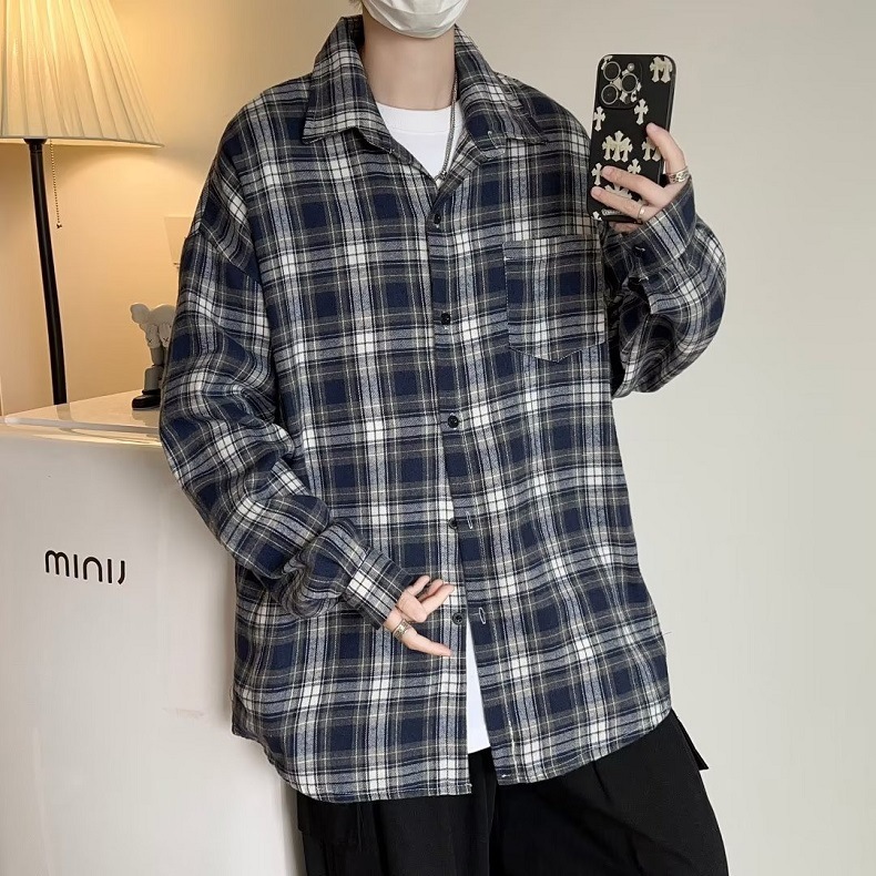 일본식 격자 무늬 긴팔 셔츠 남자 가을 새 유행 올매치 청소년 캐주얼 느슨한 작업복 셔츠 재킷
