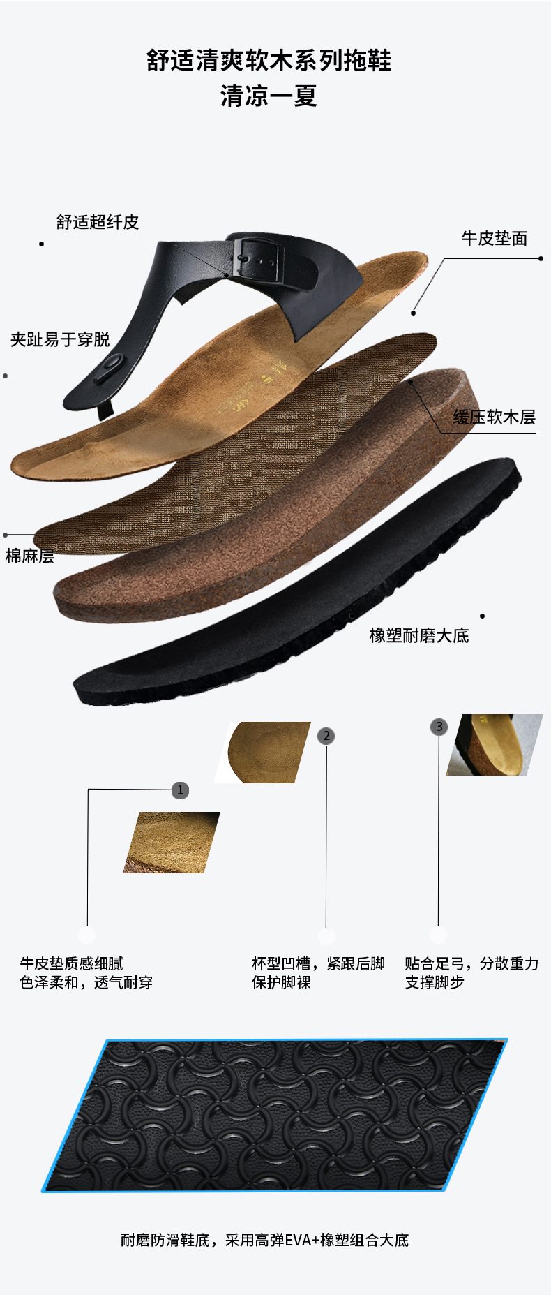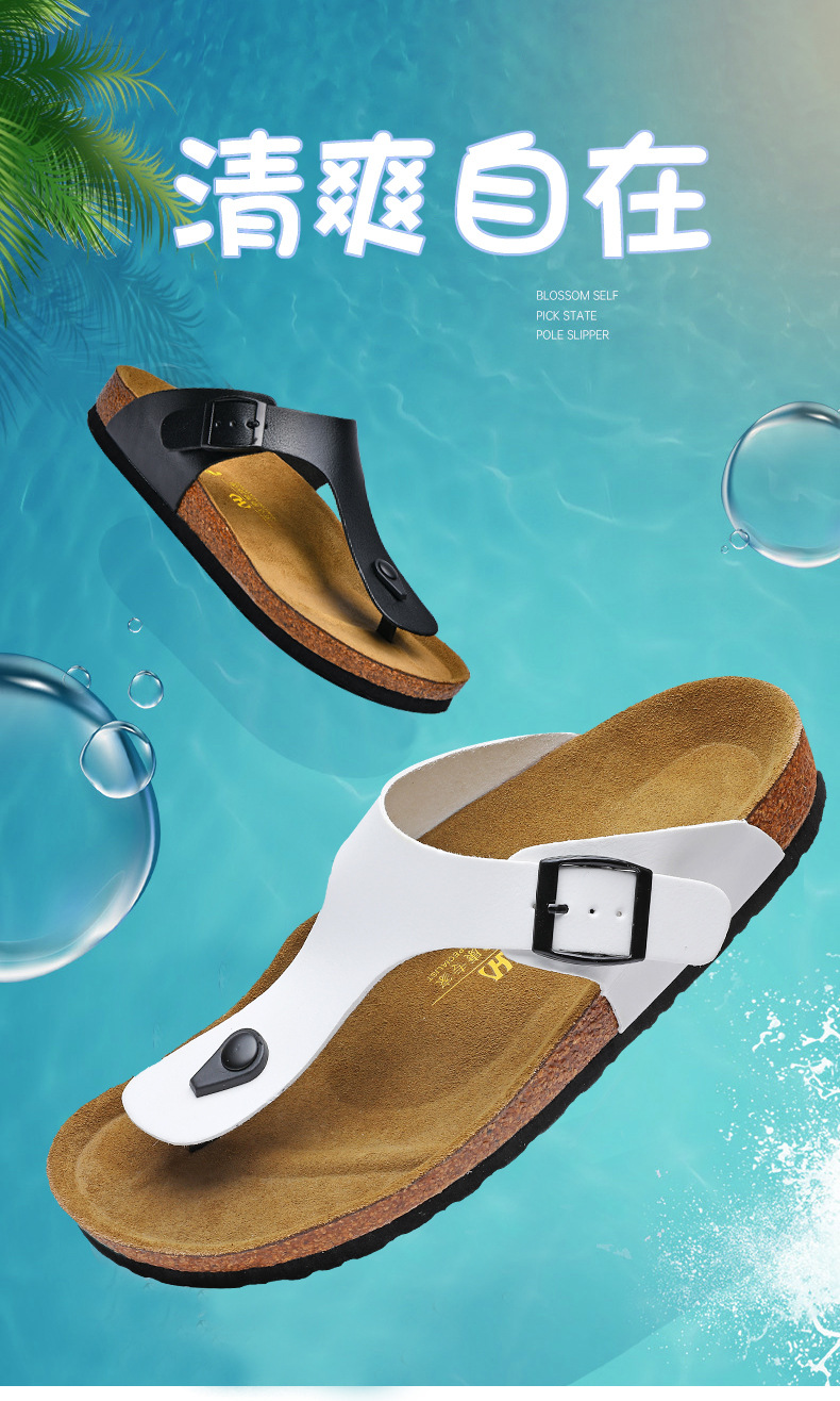 국경 간 새로운 플립 플롭 패션 코르크 홈 슬리퍼 버클 캐주얼 신발 패션 슬리퍼 스트리트 슬리퍼