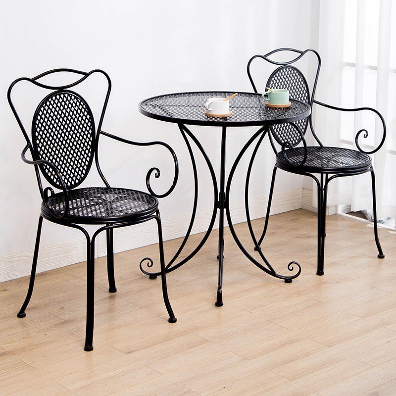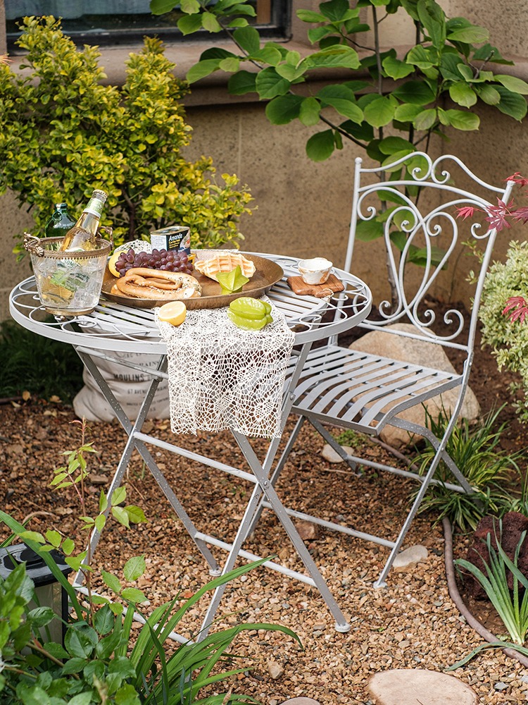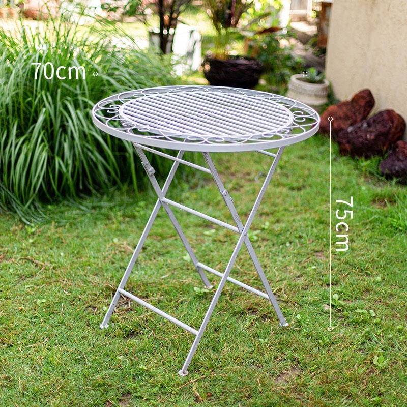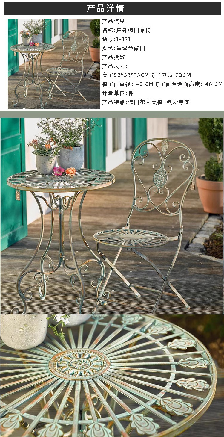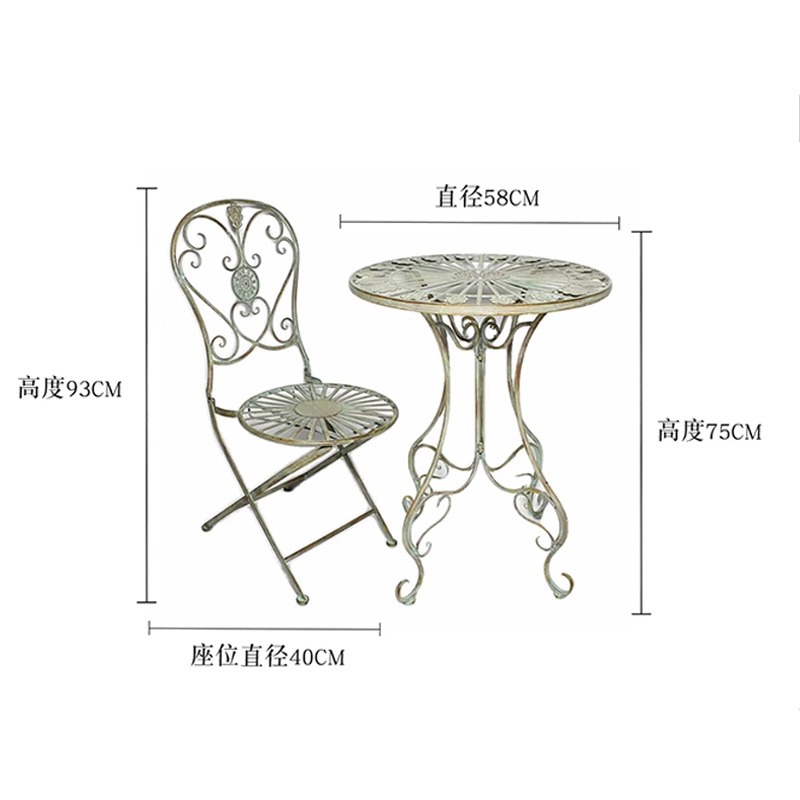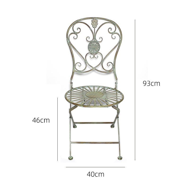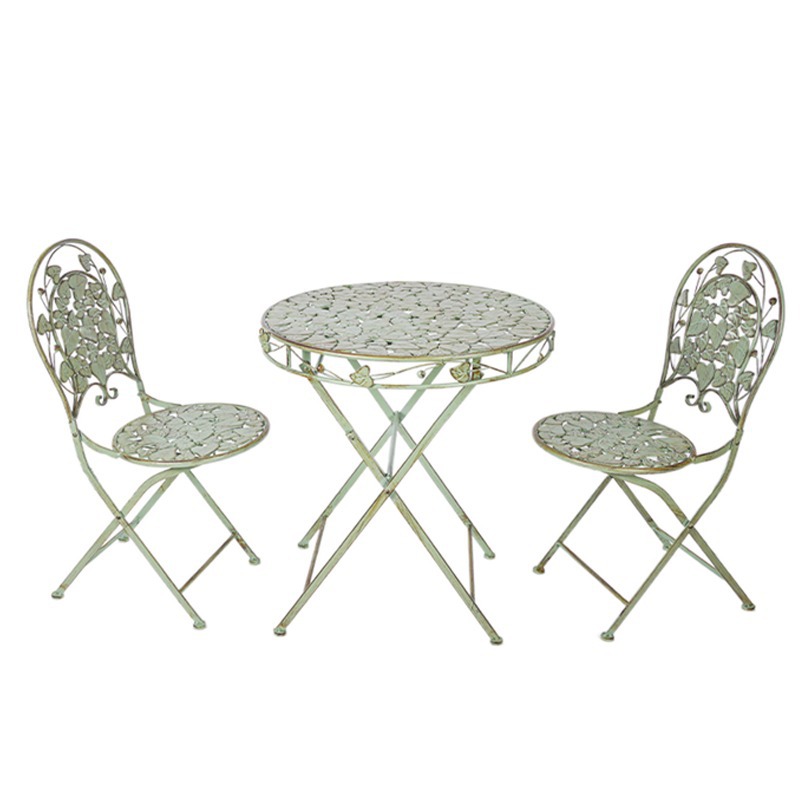 빈티지 목가적 인 녹색 프랑스 정원 테이블과 의자 안뜰 발코니 스카이 데크 접이식 철 의자 캐주얼 야외 라운드 테이블스토어 가기