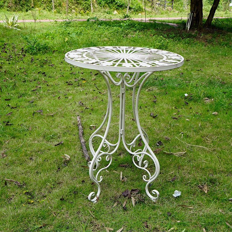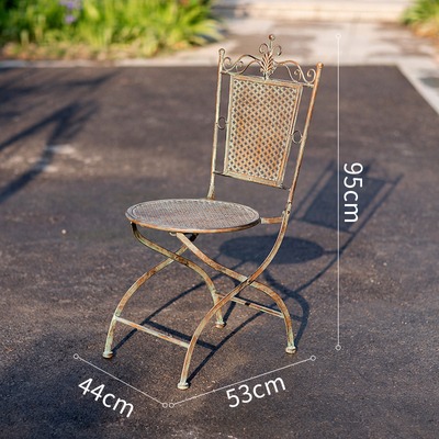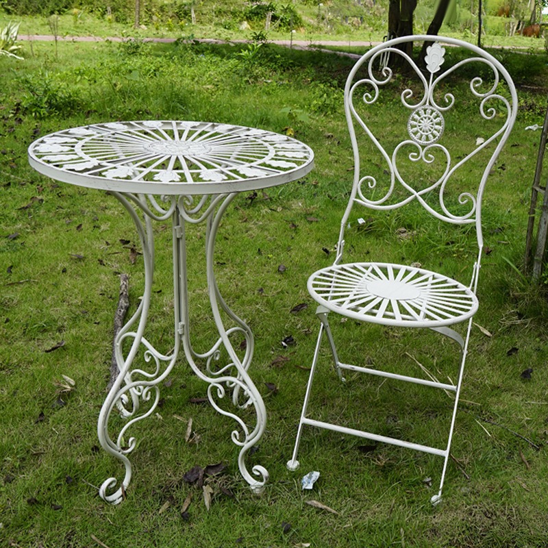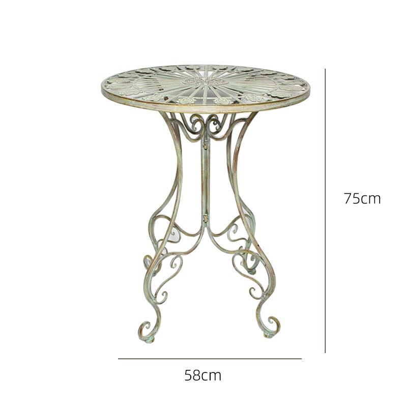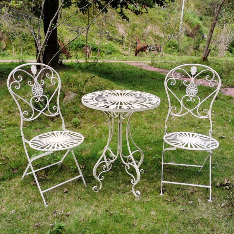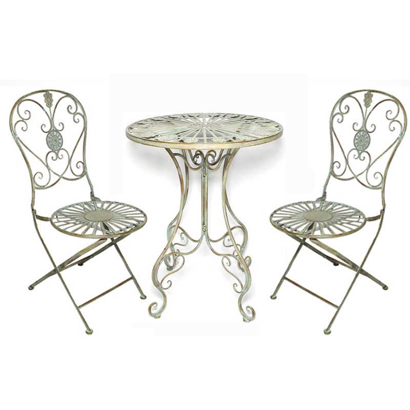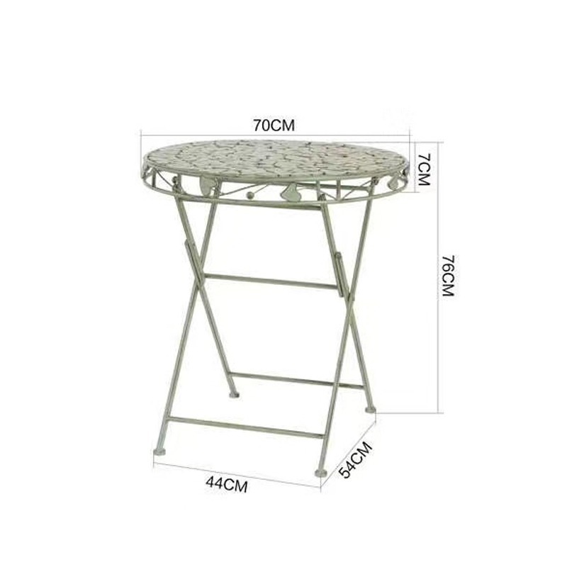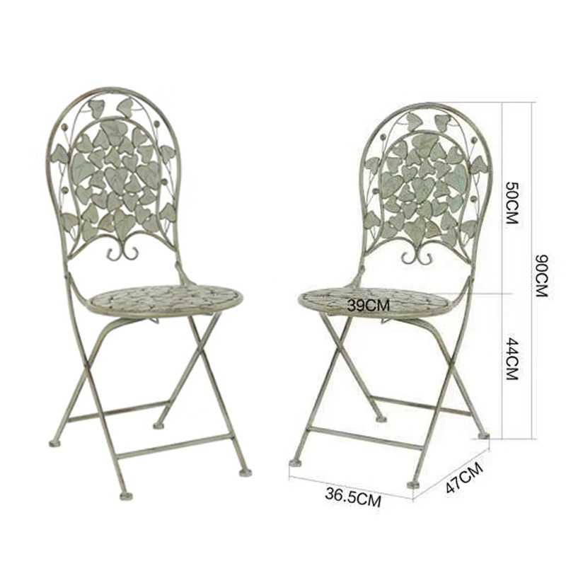 빈티지 목가적 인 녹색 프랑스 정원 테이블과 의자 안뜰 발코니 스카이 데크 접이식 철 의자 캐주얼 야외 라운드 테이블