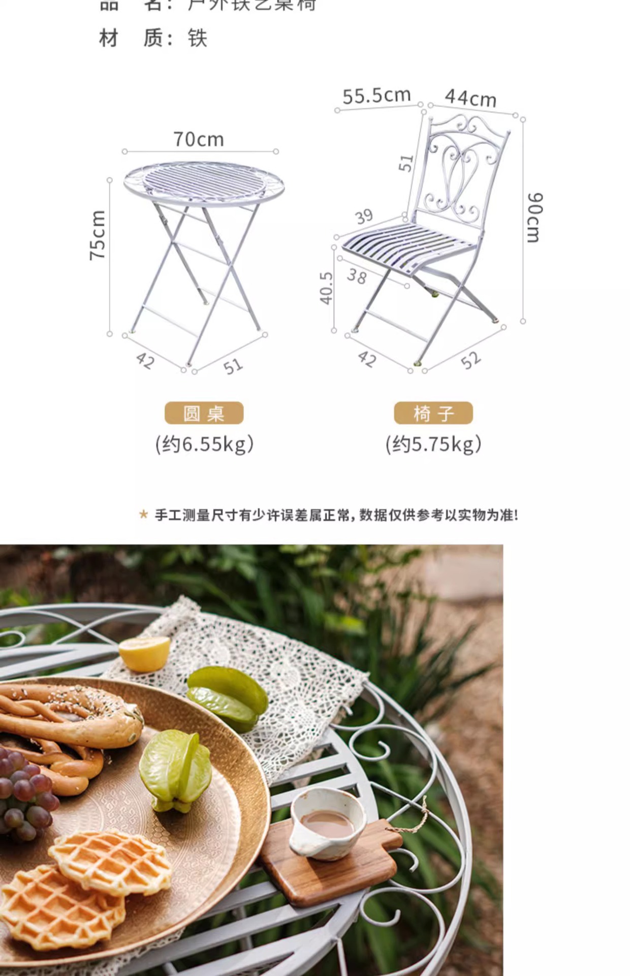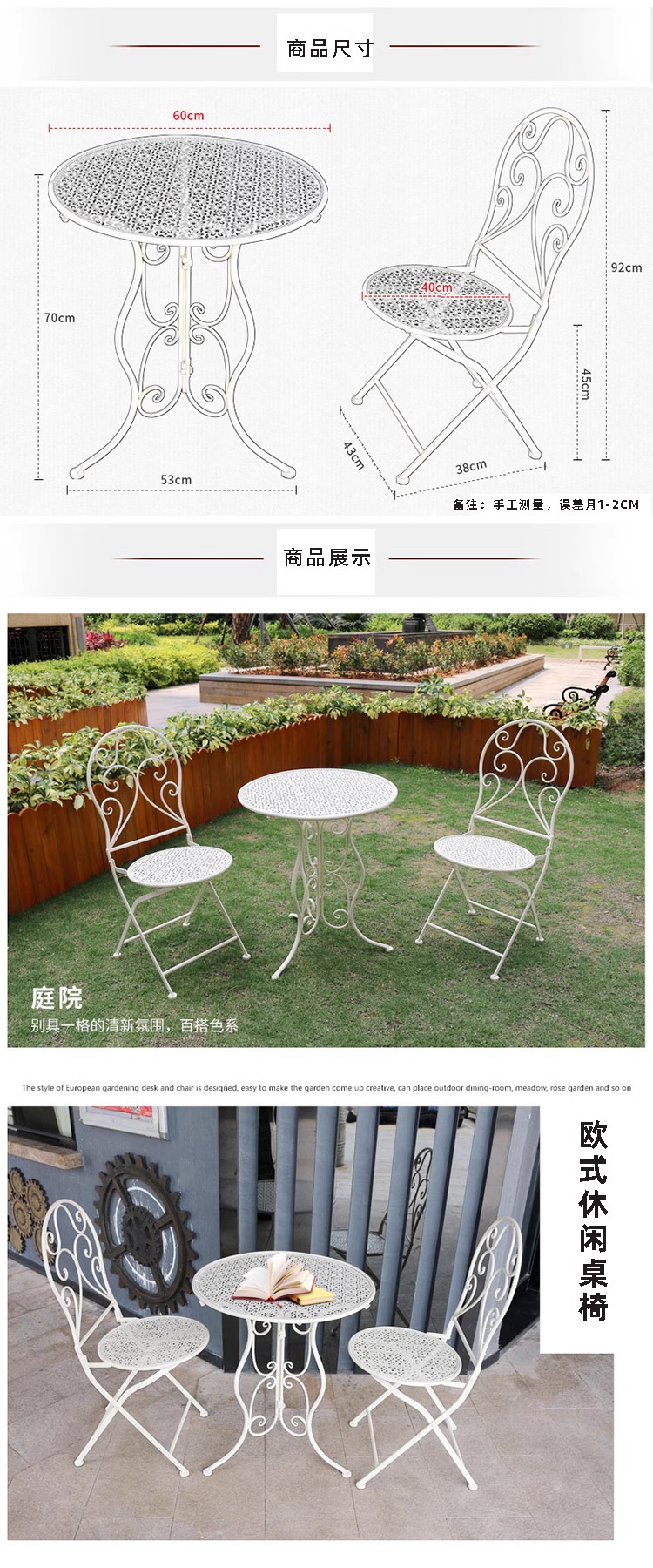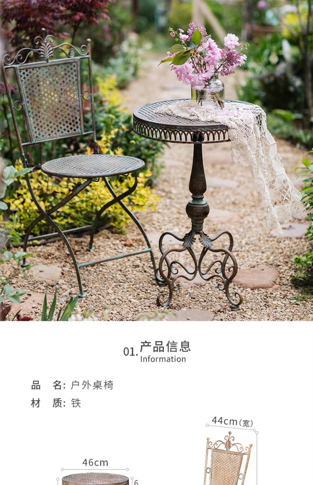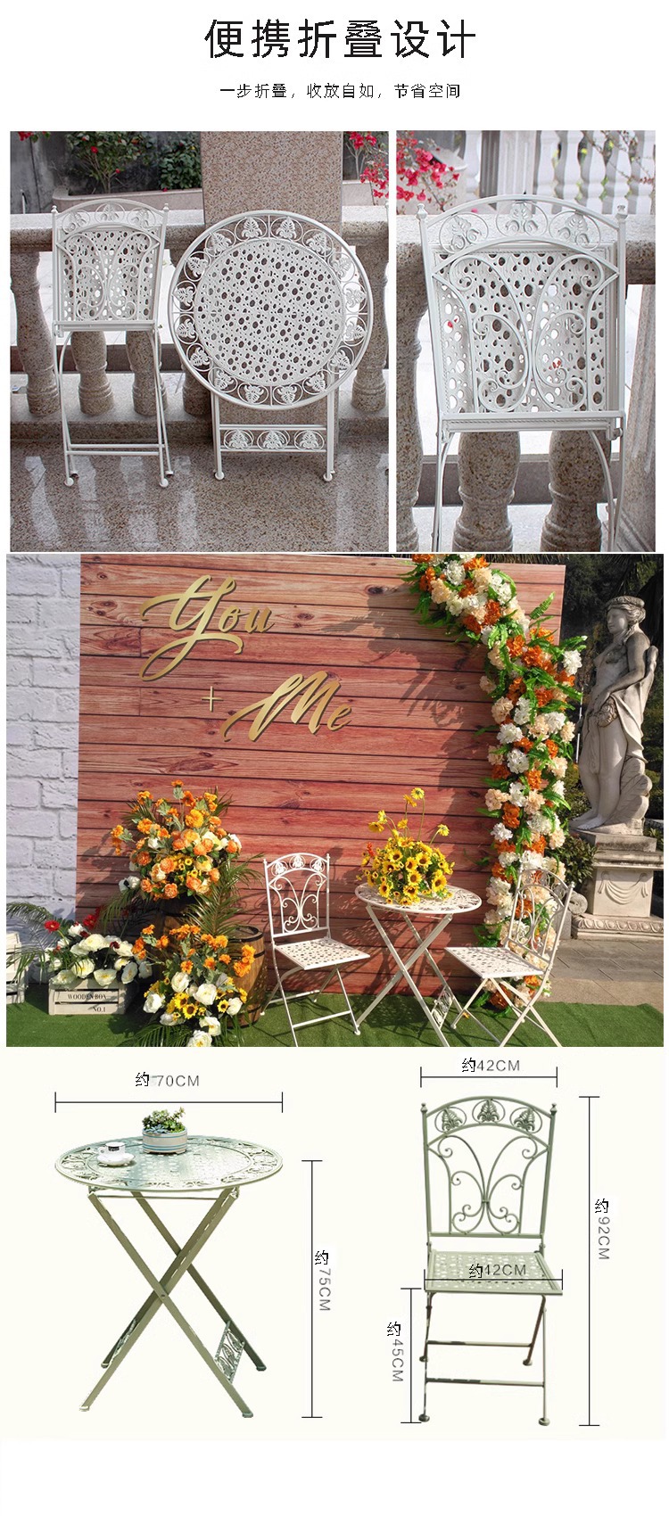 • E형 레이스 접이식 테이블과 의자(테이블 1개, 의자 2개)