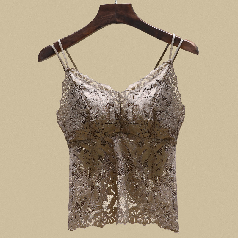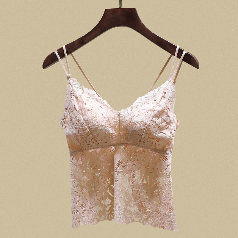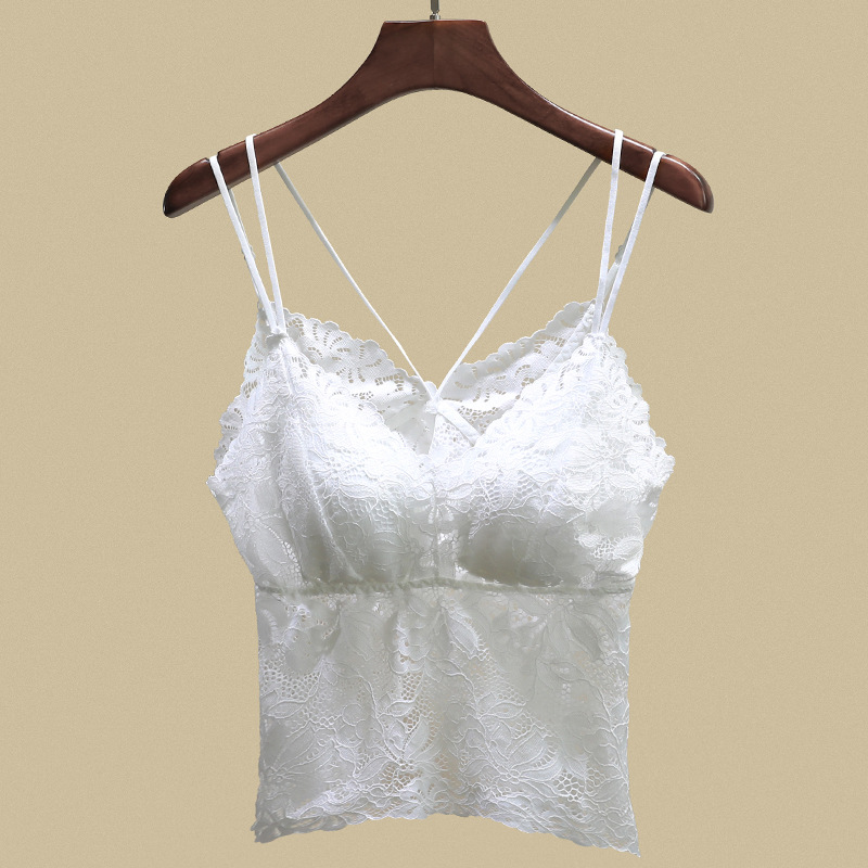 나비 아름다운 백 레이스 작은 슬링 여성의 여름 얇은 통기성 벨트 가슴 패드 통합 고정 컵 추적없는 플러스 사이즈 조끼스토어 가기