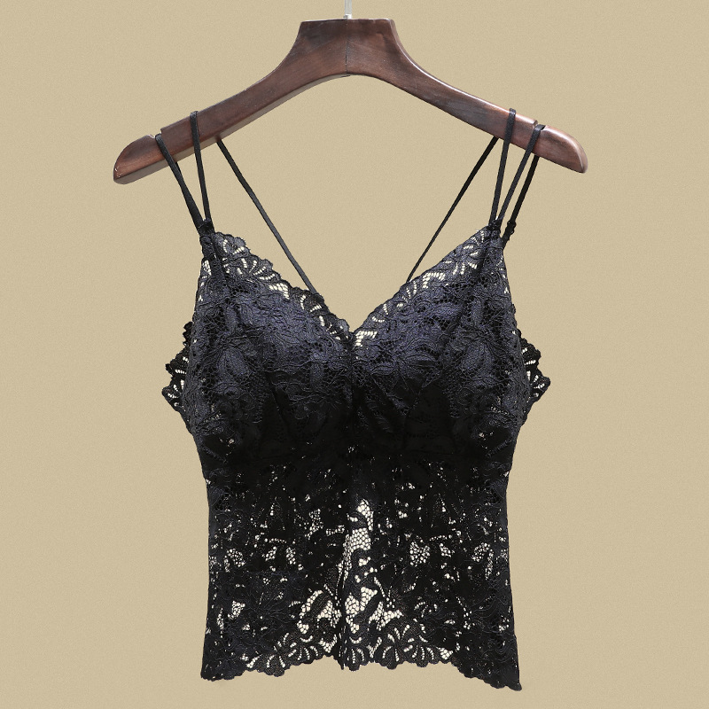 나비 아름다운 백 레이스 작은 슬링 여성의 여름 얇은 통기성 벨트 가슴 패드 통합 고정 컵 추적없는 플러스 사이즈 조끼