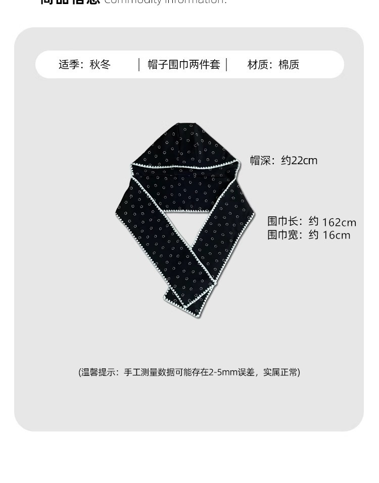 한국식 스마일리 프린트 귀여운 레이스 올매치 후드 스카프 소녀 가을과 겨울 모자 니트 따뜻한 스카프스토어 가기