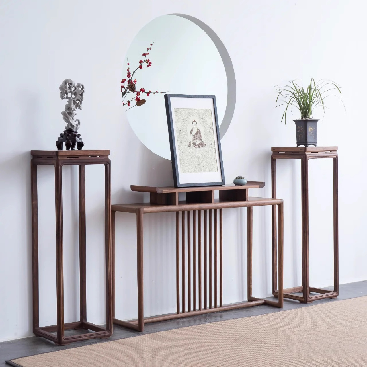 새로운 중국 스타일 입구 테이블 벽 측면 입구 내각 섹션 파티션 엔드 뷰 테이블 단단한 나무 입구 테이블 향기로운 선 테이블