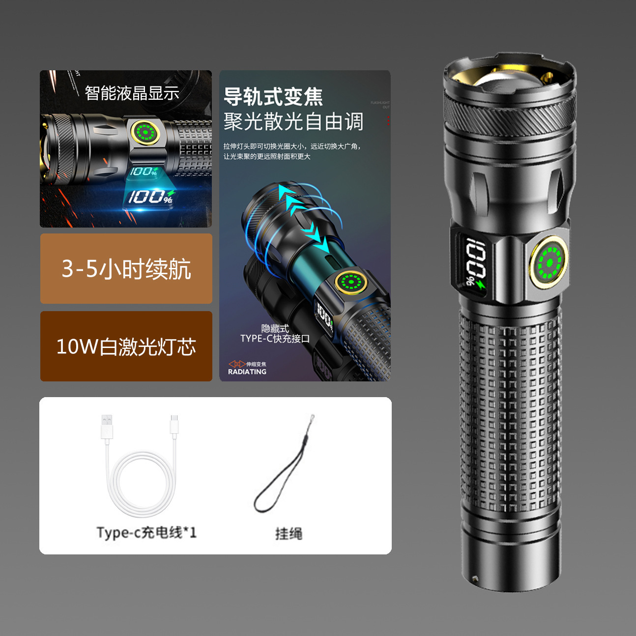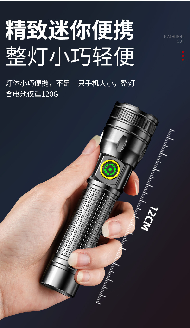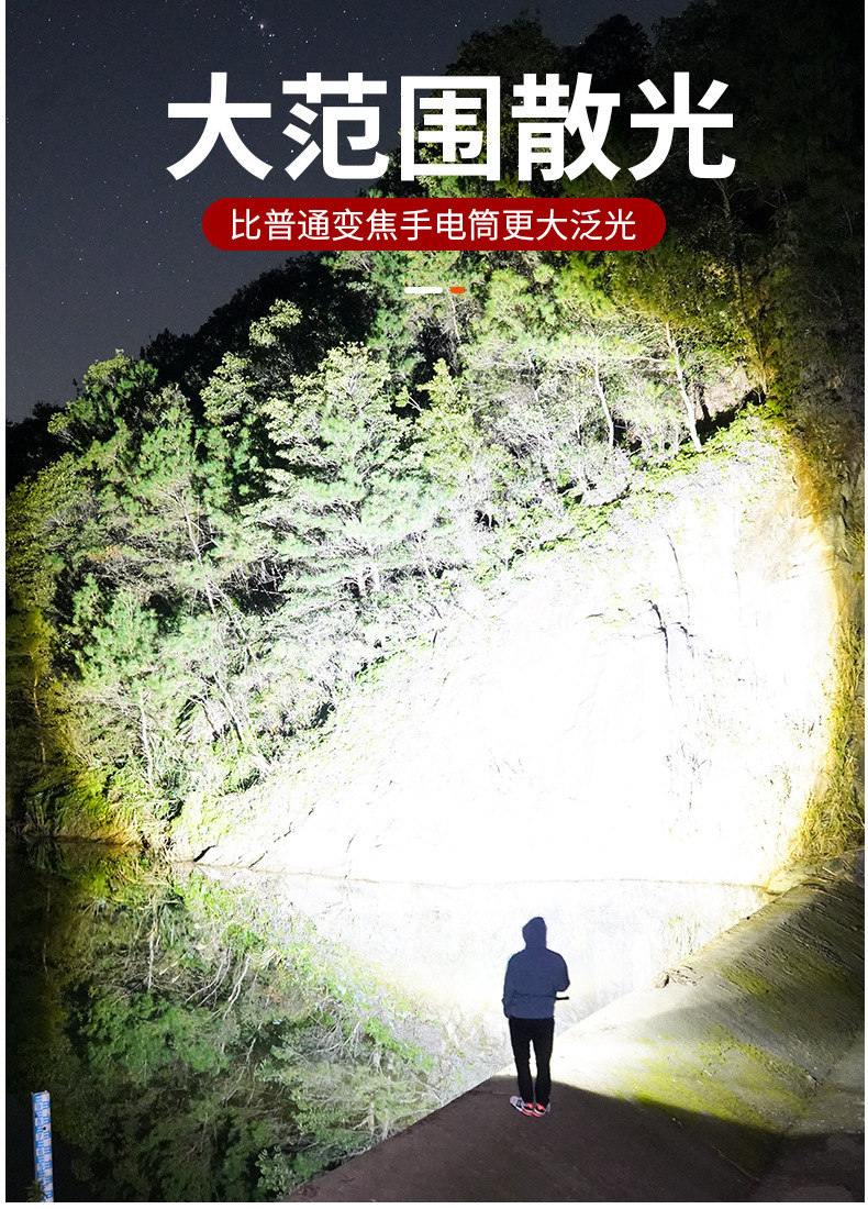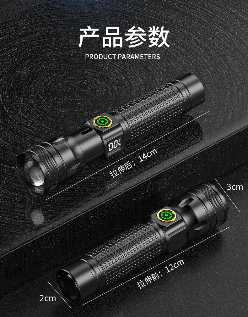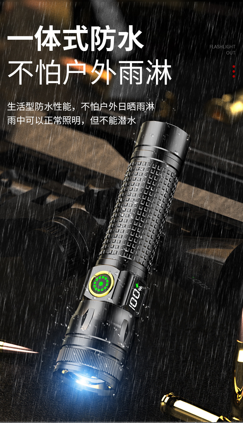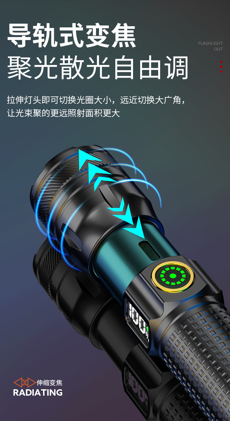 국경 간 알루미늄 합금 손전등 야외 가정용 장거리 조명 휴대용 초점 다기능 충전 디지털 디스플레이