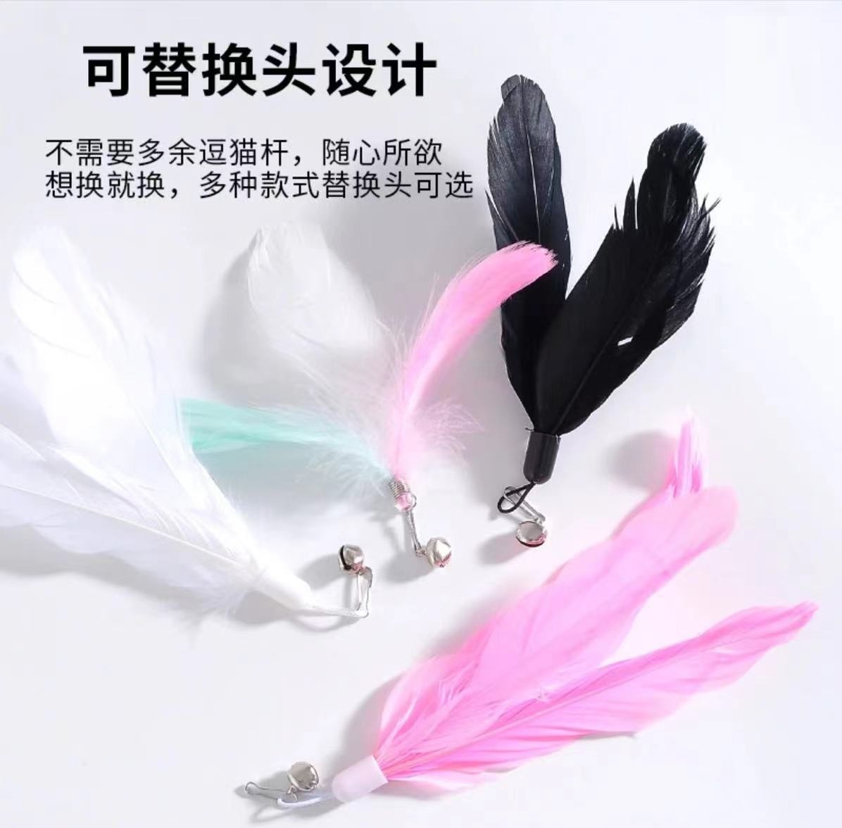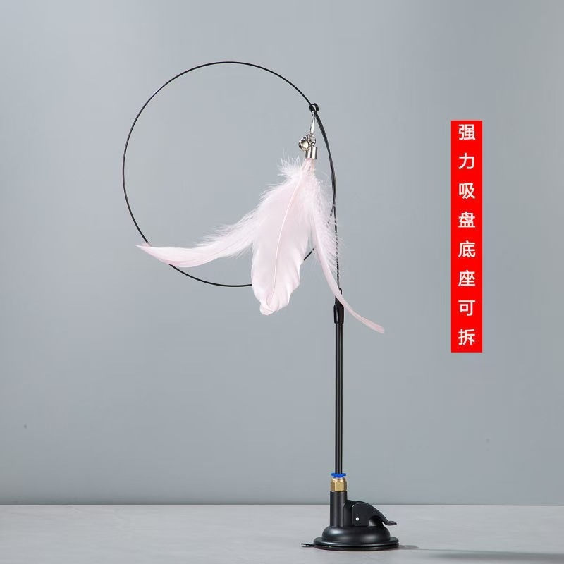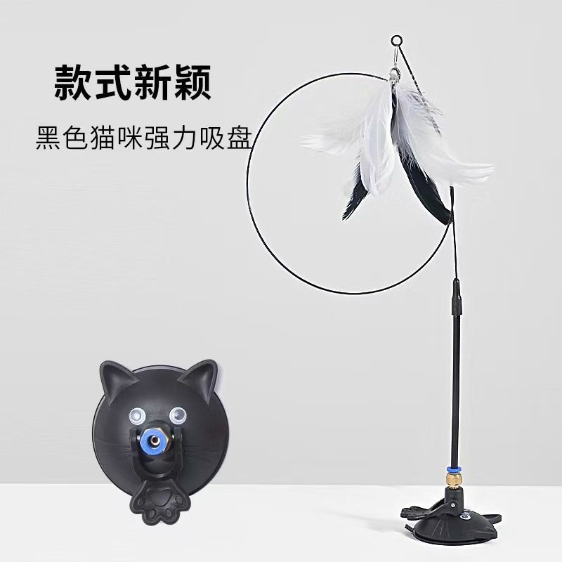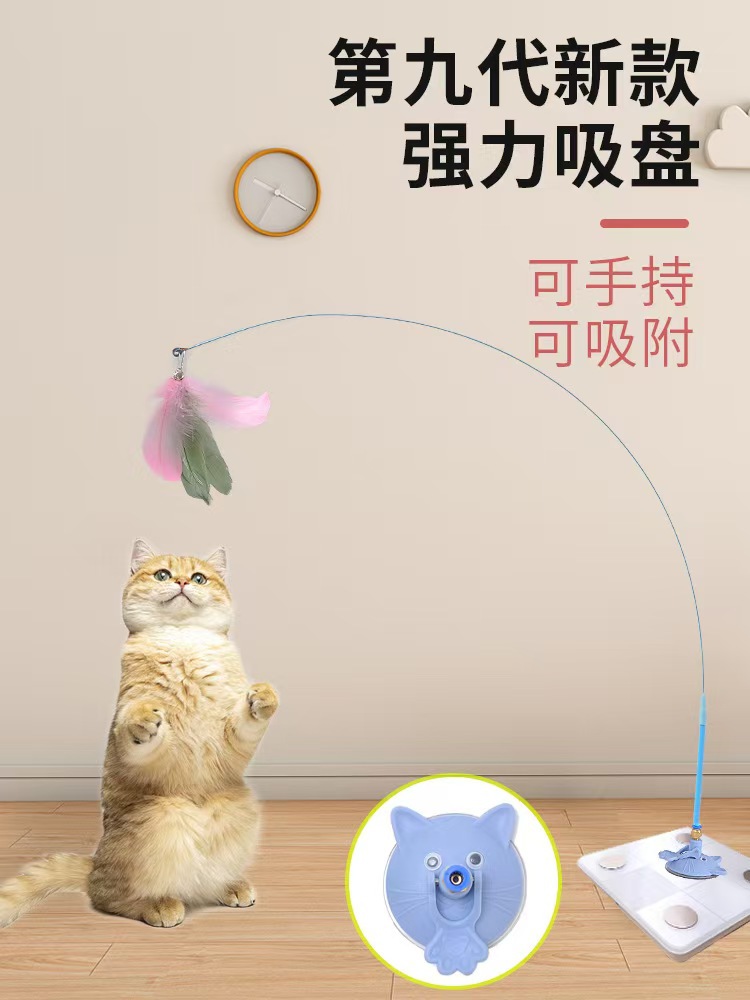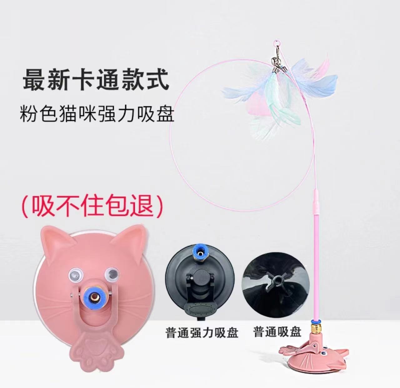 고양이 얼굴 모양 흡착식 고양이 놀이봉, 다채로운 깃털 교체 헤드, 컬러풀한 스틸 막대 고양이 장난감, 강력한 흡착판 애완동물 장난감스토어 가기