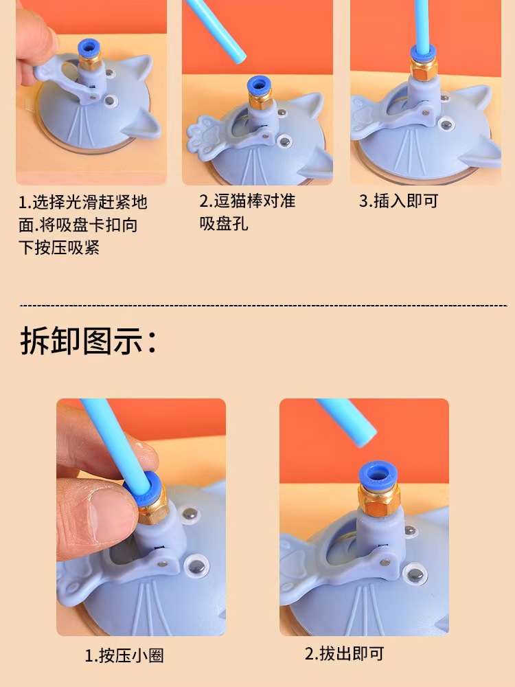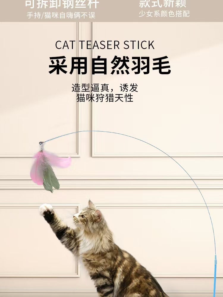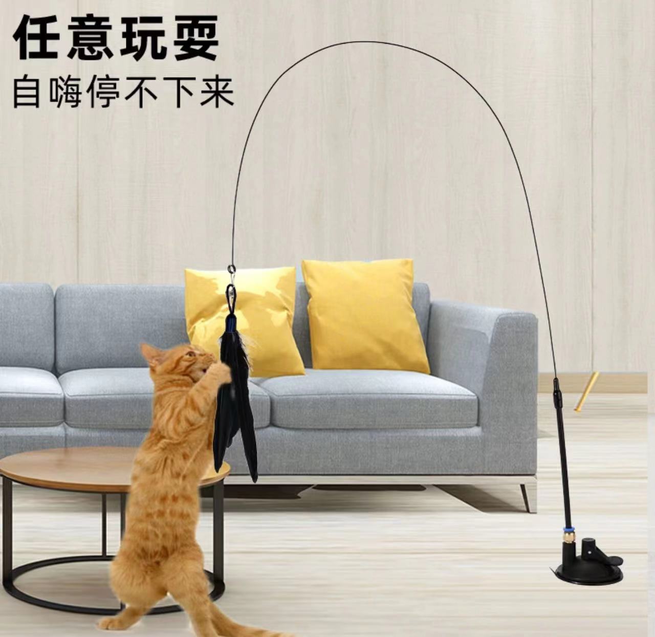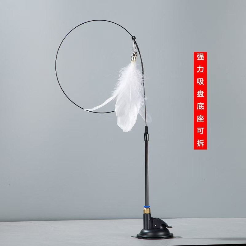 고양이 얼굴 모양 흡착식 고양이 놀이봉, 다채로운 깃털 교체 헤드, 컬러풀한 스틸 막대 고양이 장난감, 강력한 흡착판 애완동물 장난감스토어 가기