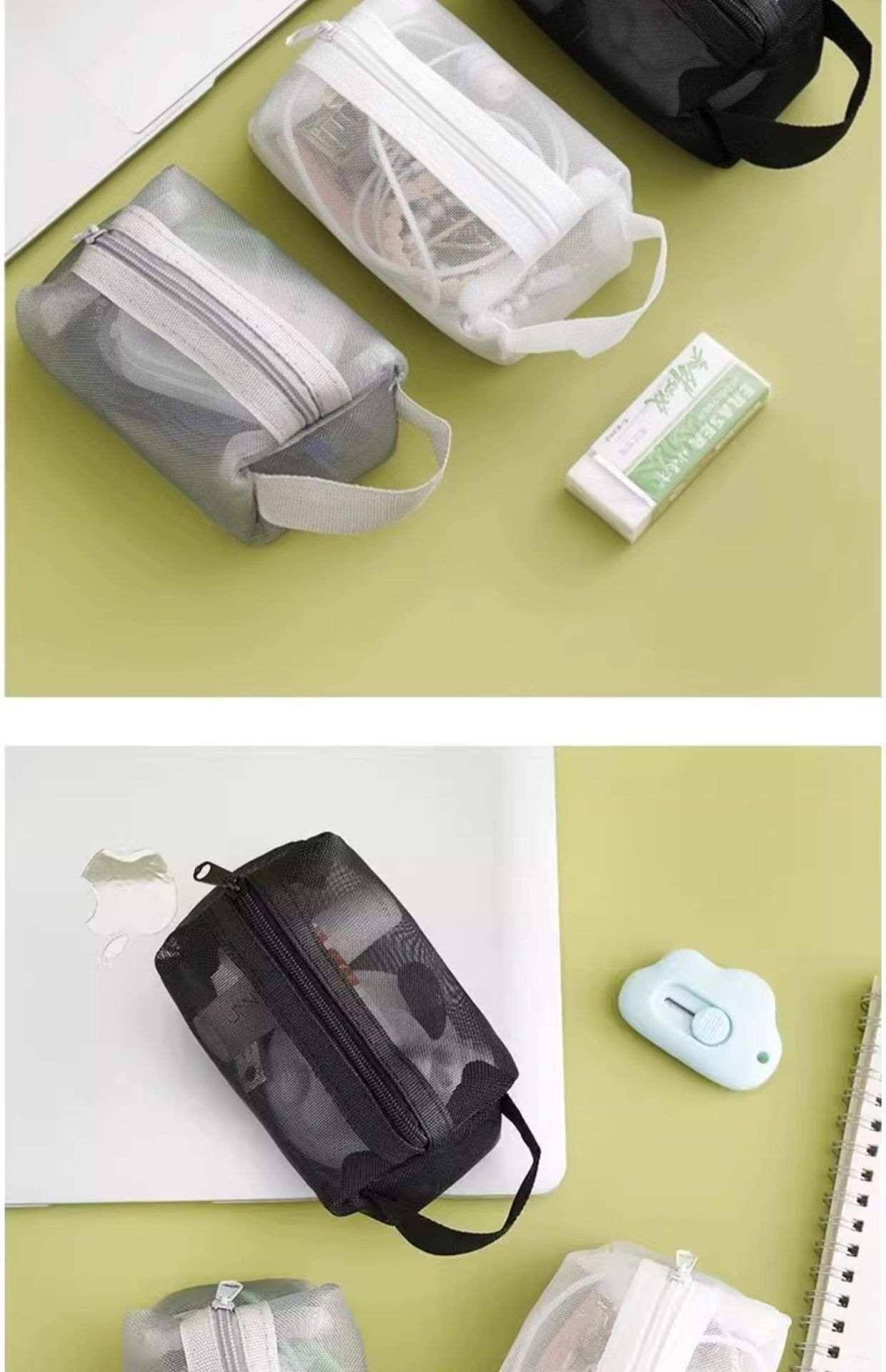 투명 메쉬 동전 지갑 키 가방 버스 카드 가방 나일론 휴대용 장난감 화장품 데이터 케이블 저장 가방