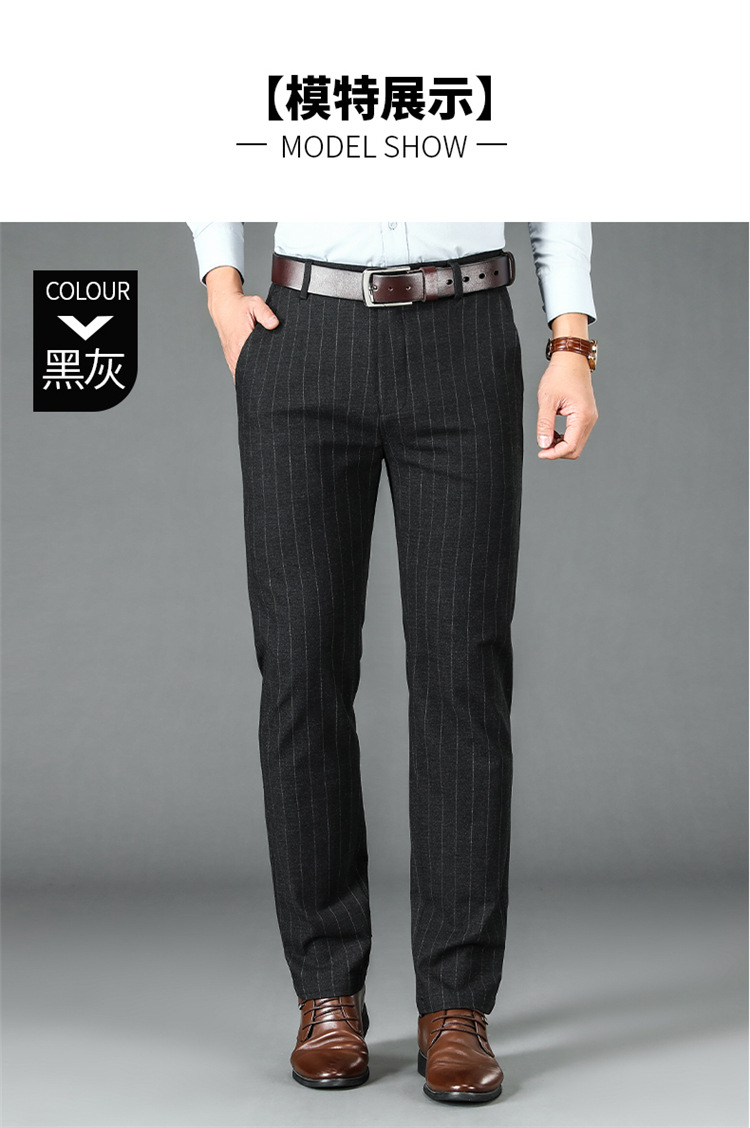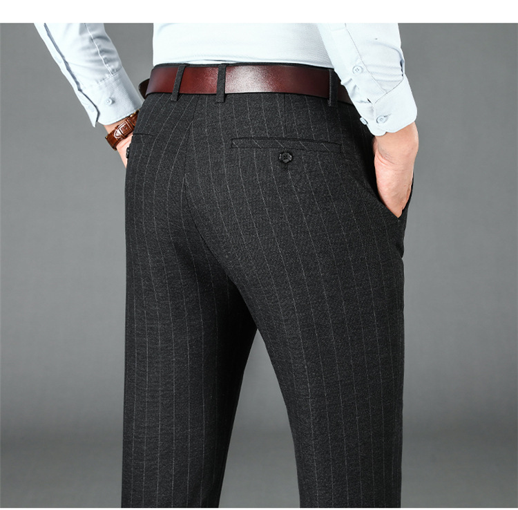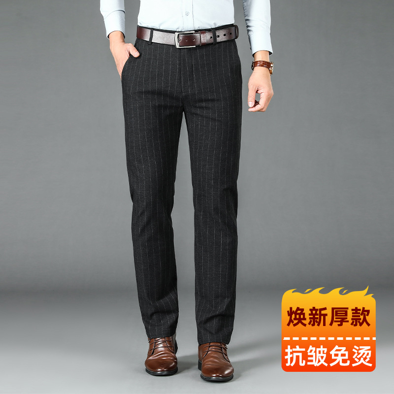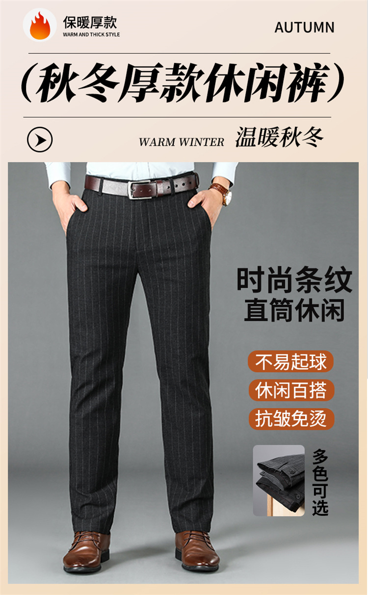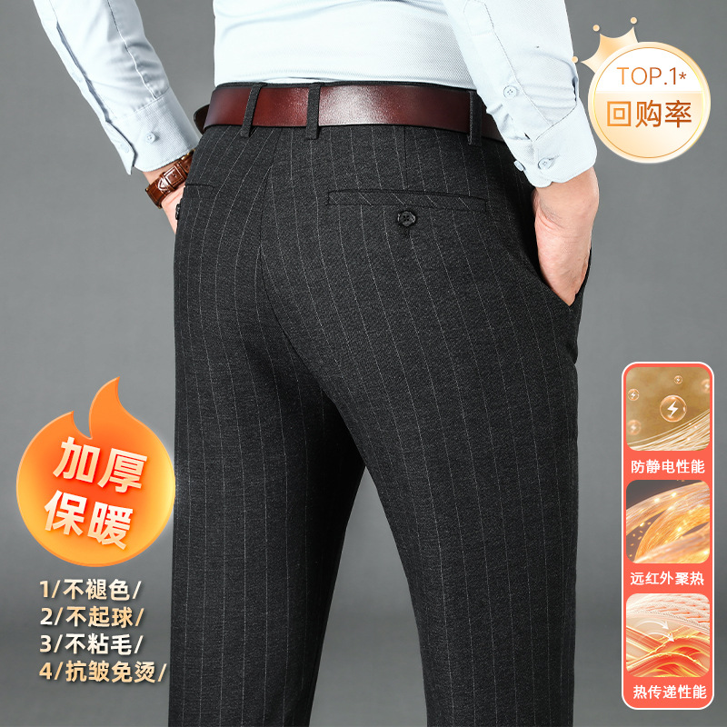 2024년형 스트라이프 정장 바지 남성 캐주얼 바지 겨울용 신축성 있는 스트레이트 플러스 벨벳 루즈핏 남성 바지 긴 바지 편안함스토어 가기