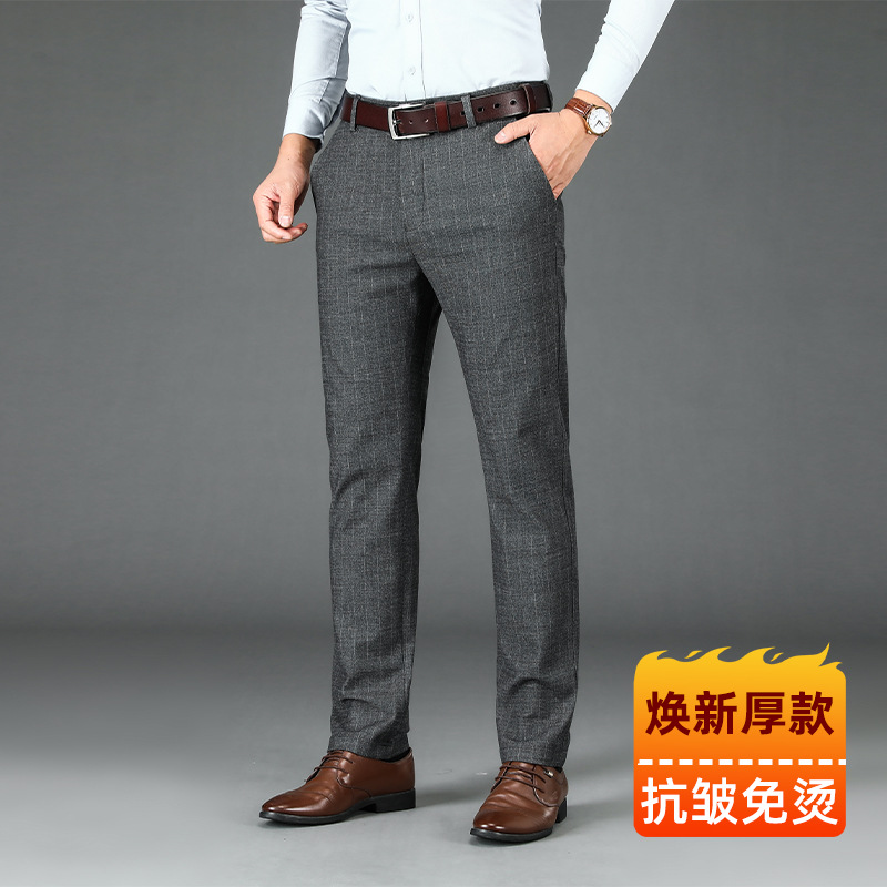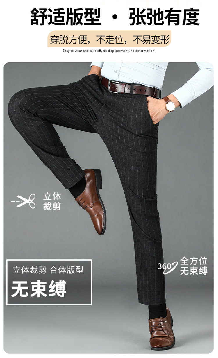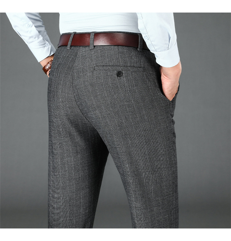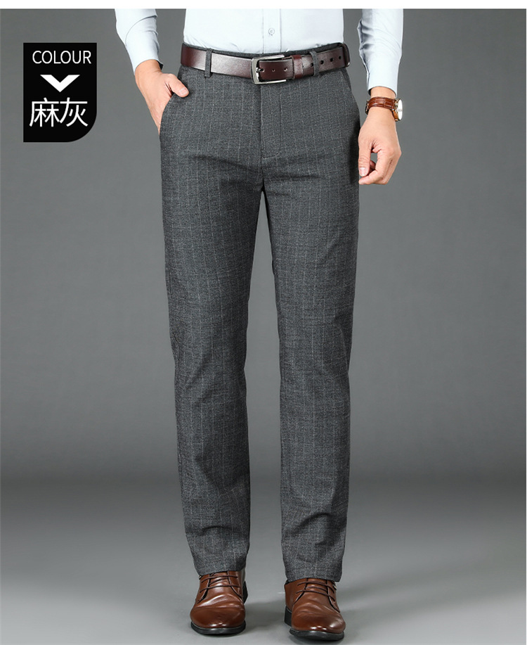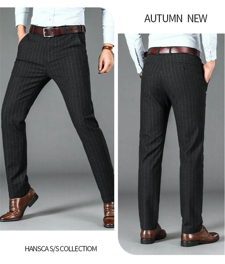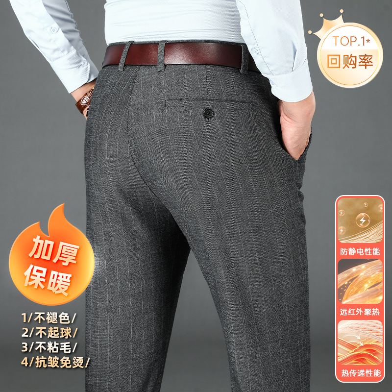 2024년형 스트라이프 정장 바지 남성 캐주얼 바지 겨울용 신축성 있는 스트레이트 플러스 벨벳 루즈핏 남성 바지 긴 바지 편안함스토어 가기