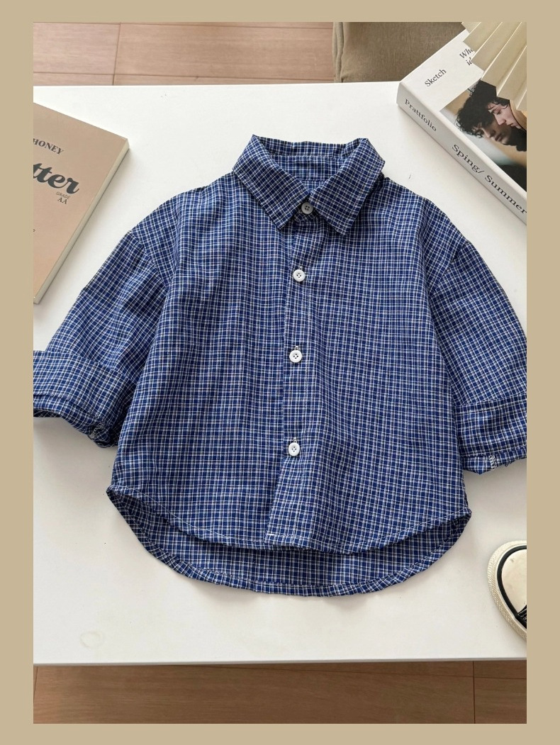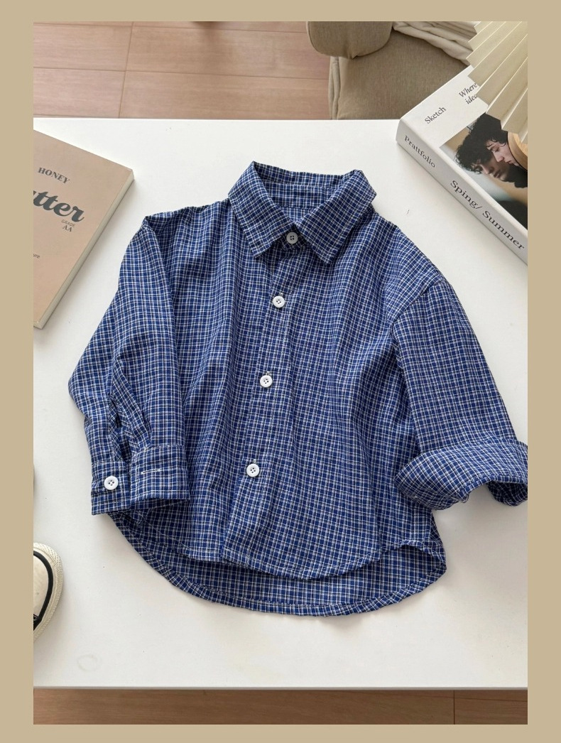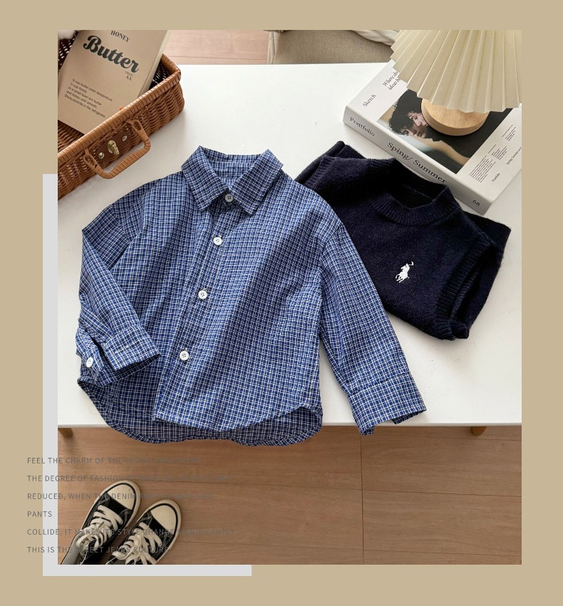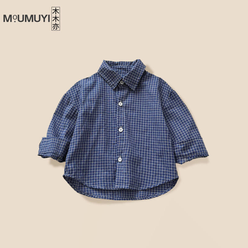 어린이용 한국 스타일 셔츠 2026 봄 신상 캐주얼 아기 체크 셔츠 봄 가을 남아용 순면 셔츠 트렌디스토어 가기