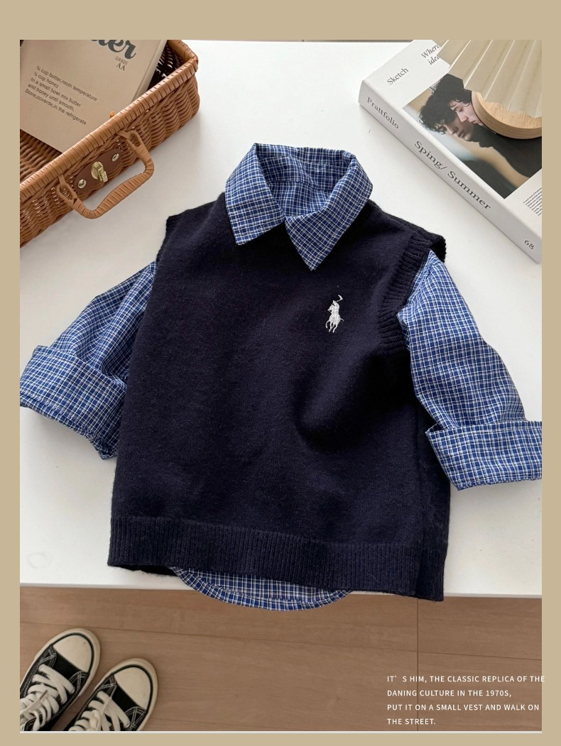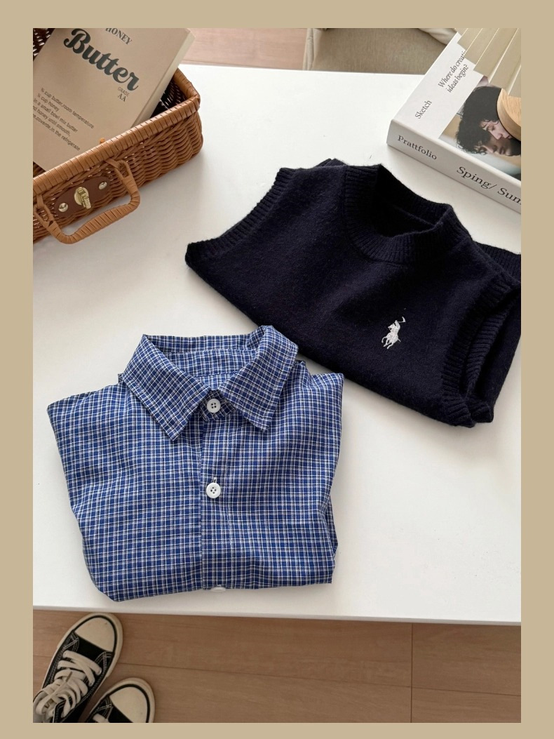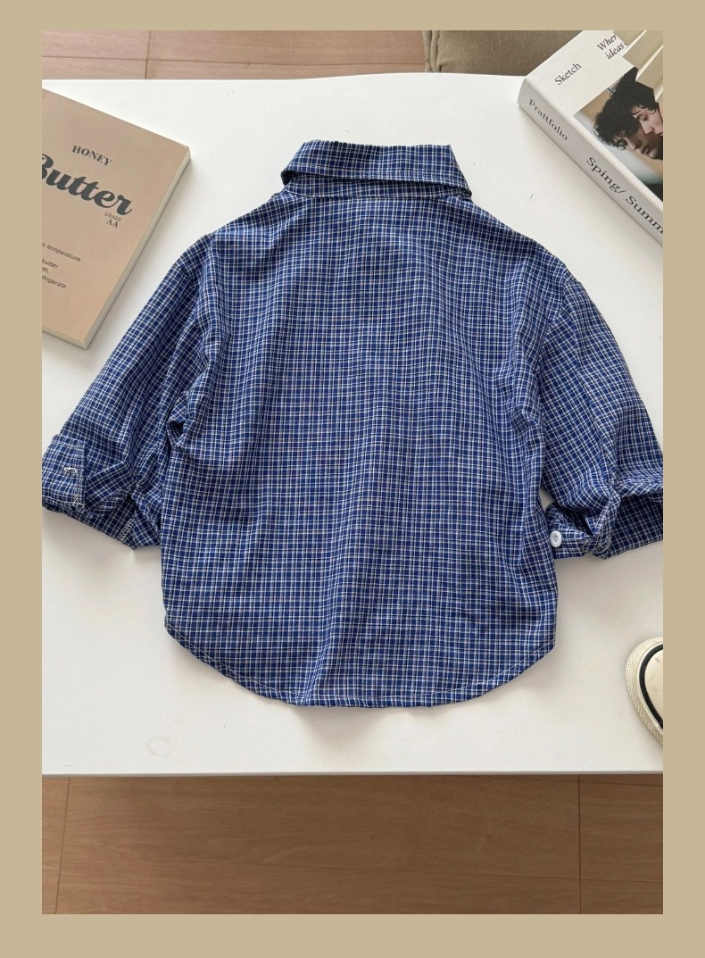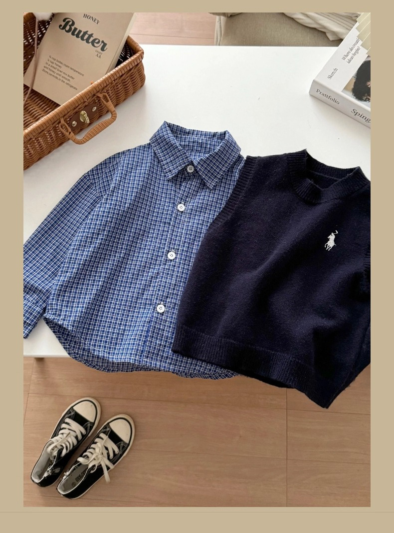 어린이용 한국 스타일 셔츠 2026 봄 신상 캐주얼 아기 체크 셔츠 봄 가을 남아용 순면 셔츠 트렌디스토어 가기
