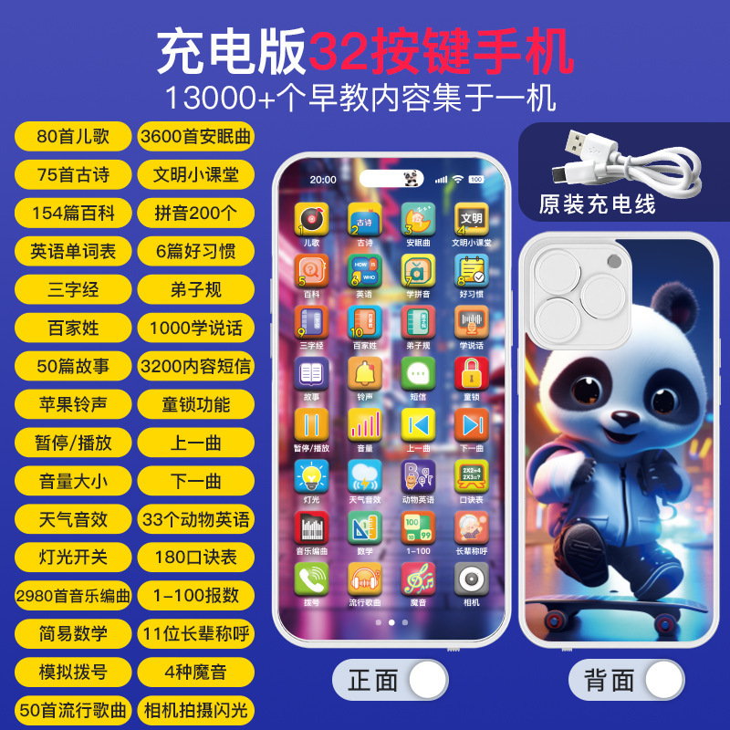 새로운 터치 스크린 다기능 조기 교육 휴대 전화 시뮬레이션 장난감 아기 교육 어린이 소년 소녀 어린이 전화 충전식