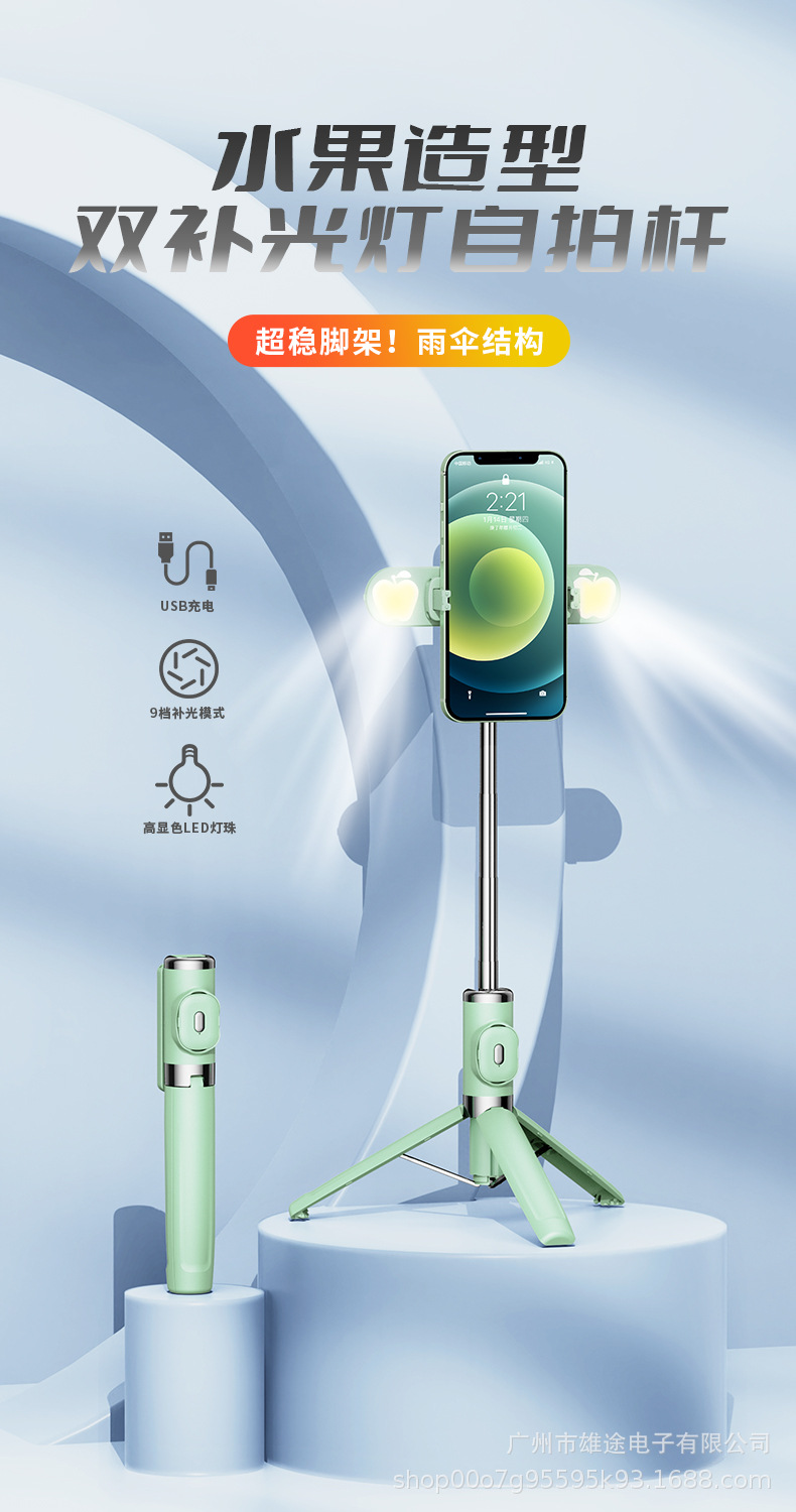 M01 미니 셀카봉 1m 과일 이중 보조광 강화 올인원 휴대폰 라이브 방송 스탠드 Douyin Direct