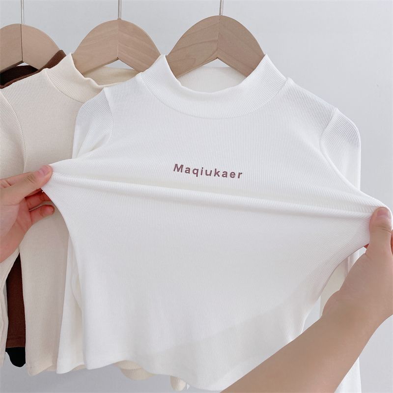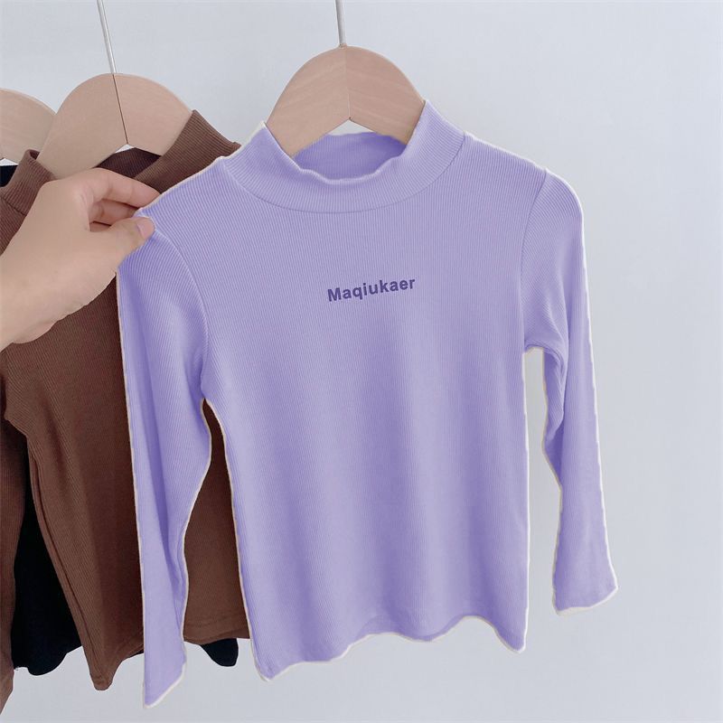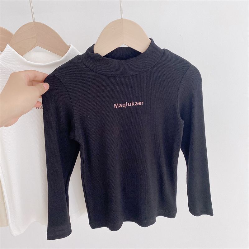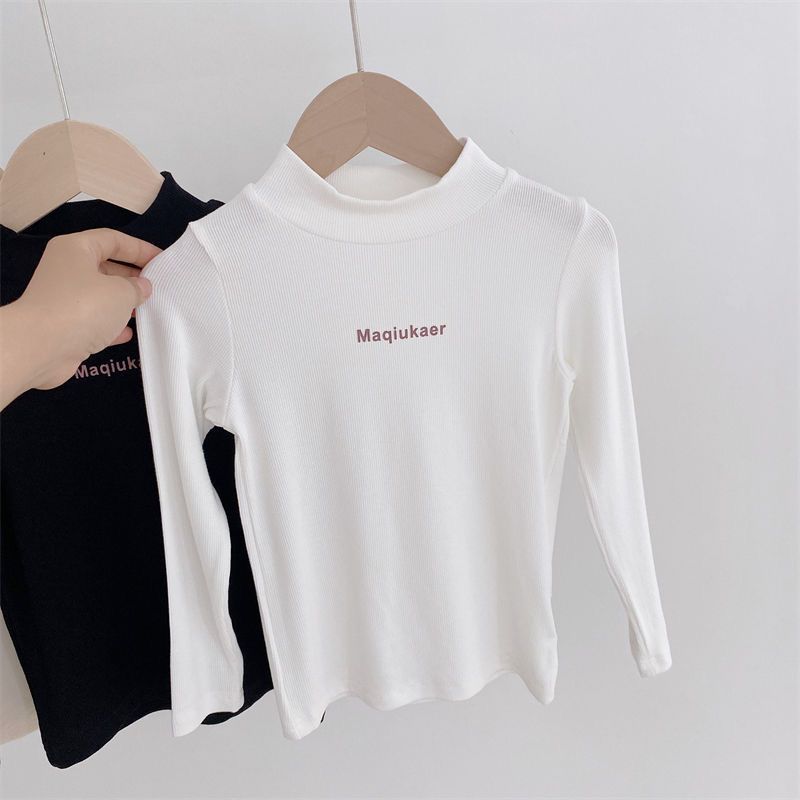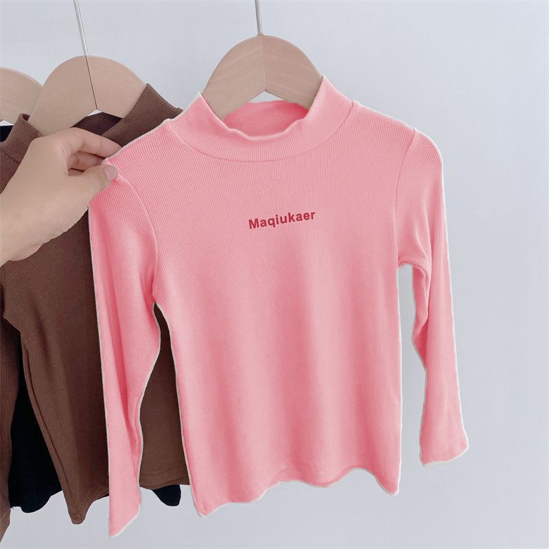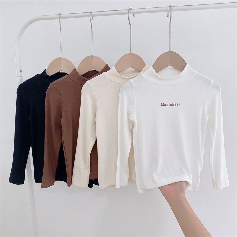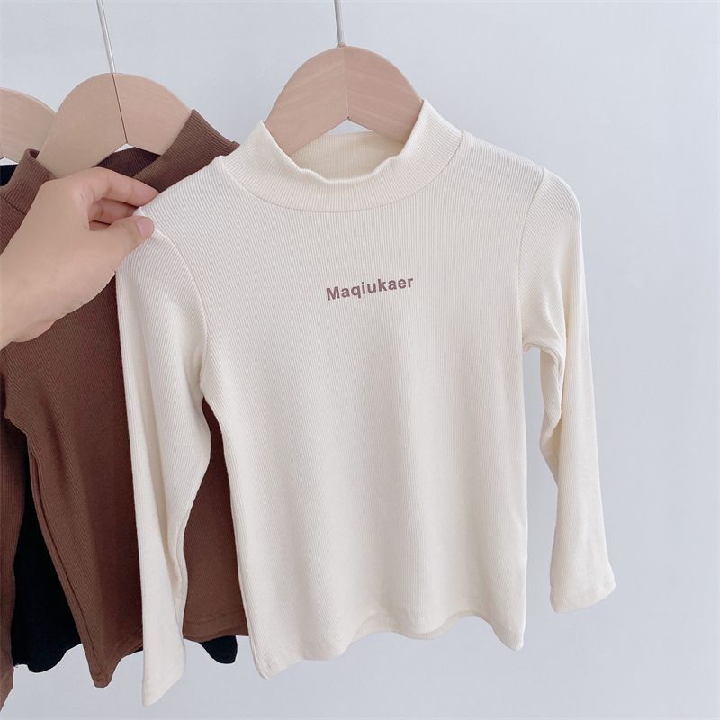베이스 셔츠 봄과 가을 뉴 보이즈와 걸스 슈퍼 탄성 세미 하이 칼라 티셔츠 긴 소매 이너 타워 아우터웨어 탑 0216A016