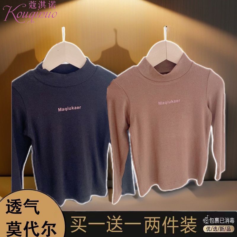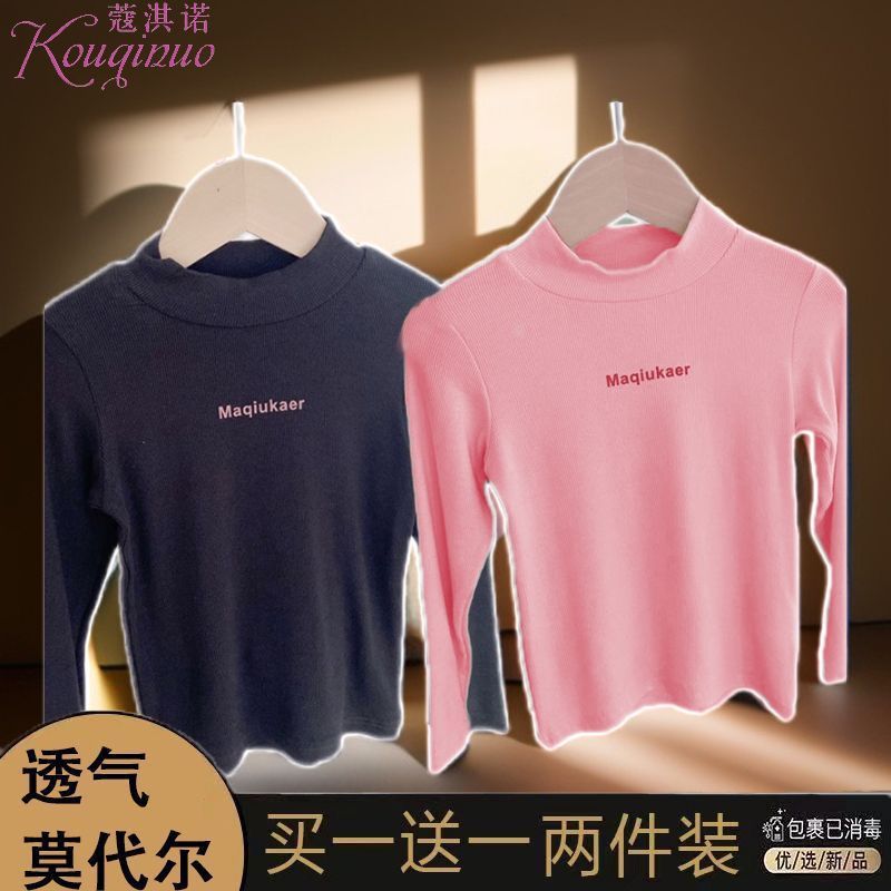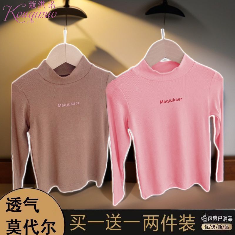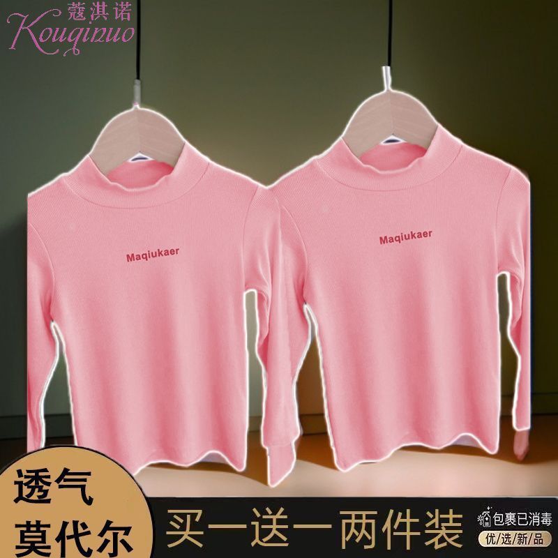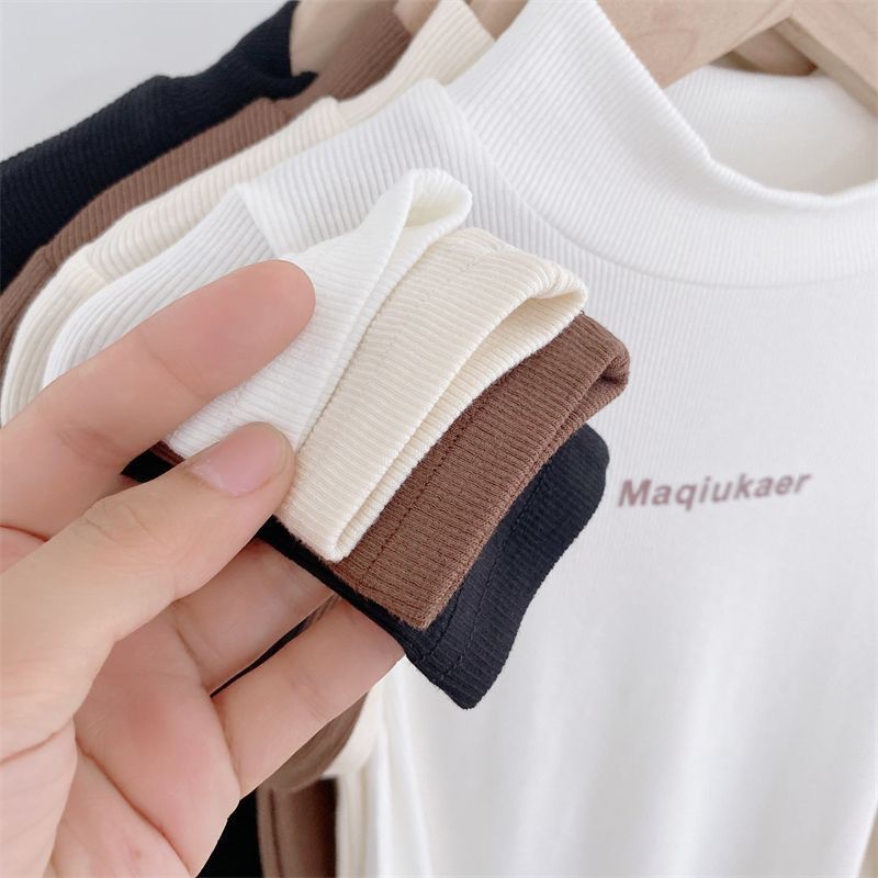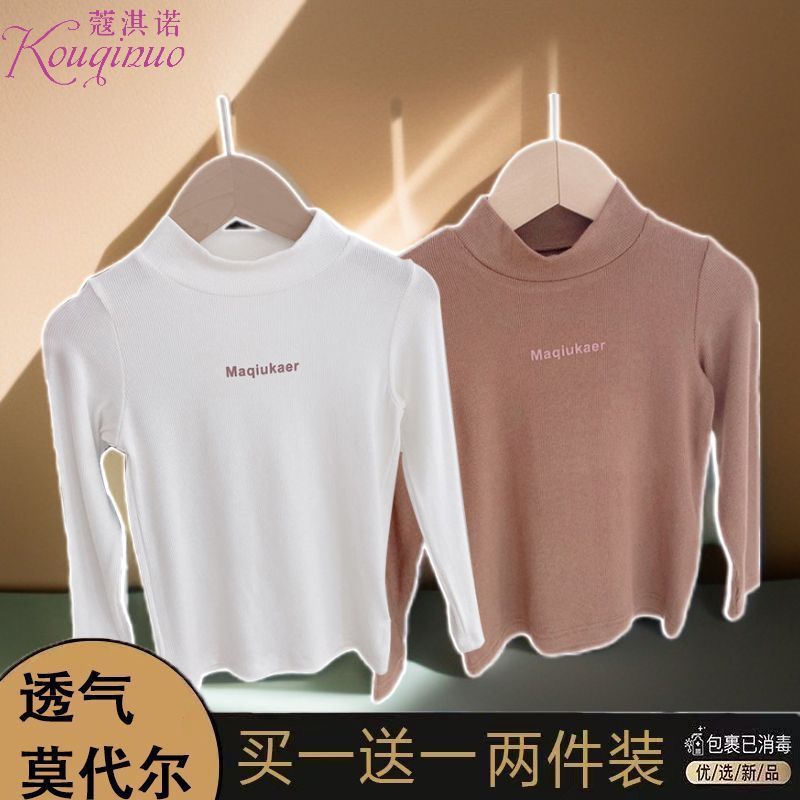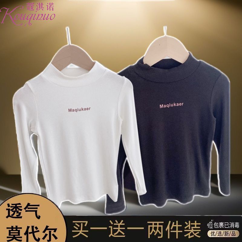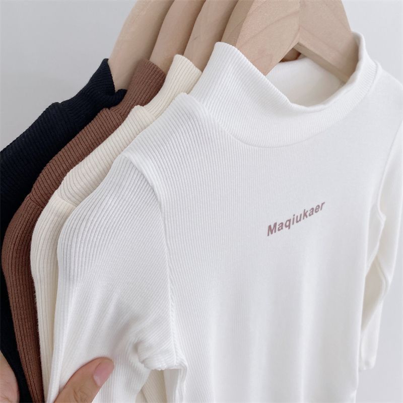 베이스 셔츠 봄과 가을 뉴 보이즈와 걸스 슈퍼 탄성 세미 하이 칼라 티셔츠 긴 소매 이너 타워 아우터웨어 탑 0216A016
