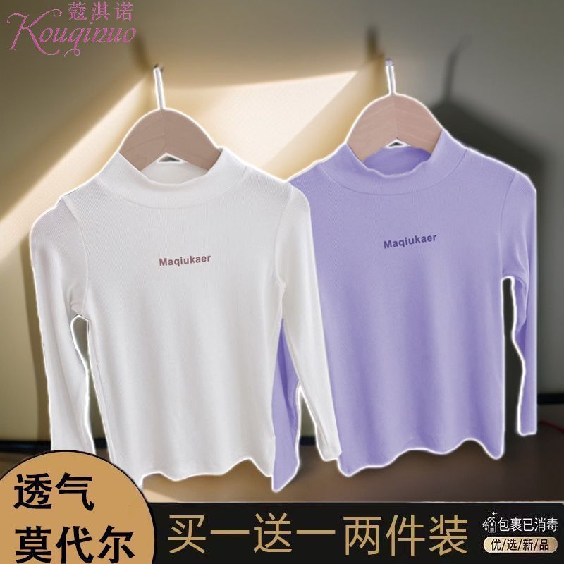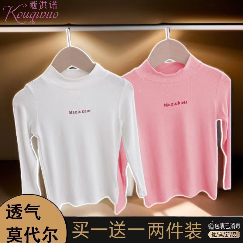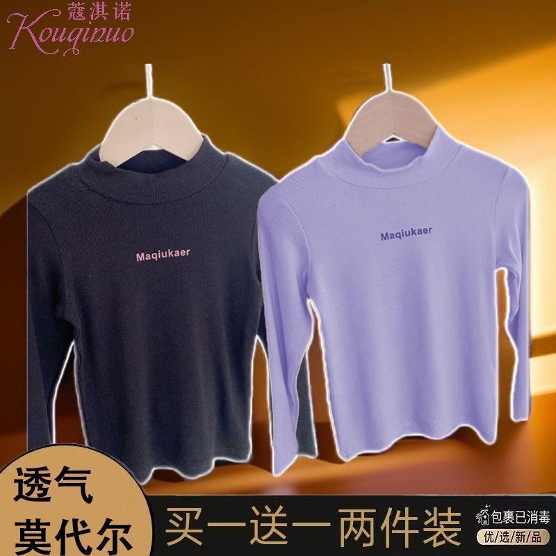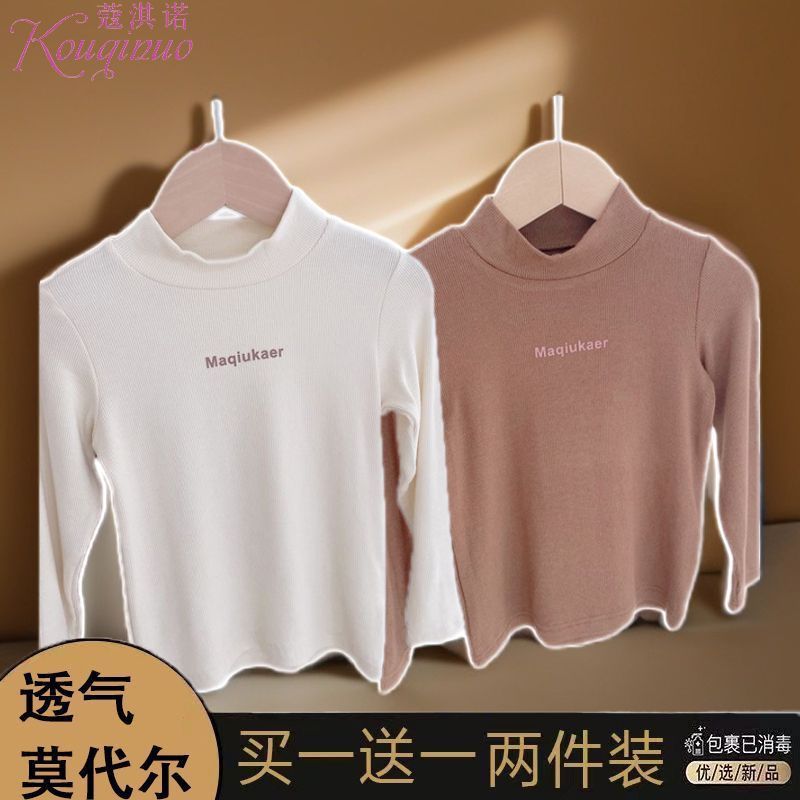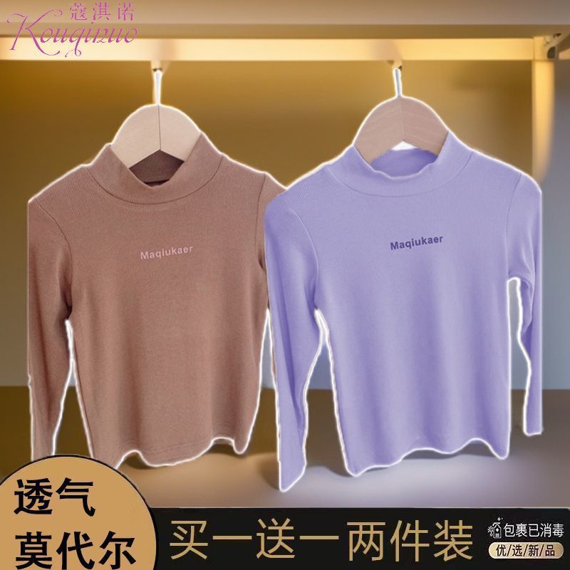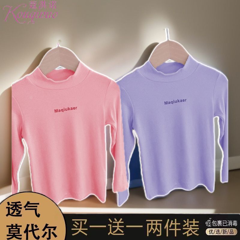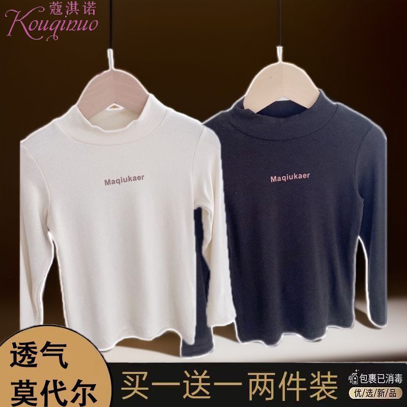 베이스 셔츠 봄과 가을 뉴 보이즈와 걸스 슈퍼 탄성 세미 하이 칼라 티셔츠 긴 소매 이너 타워 아우터웨어 탑 0216A016