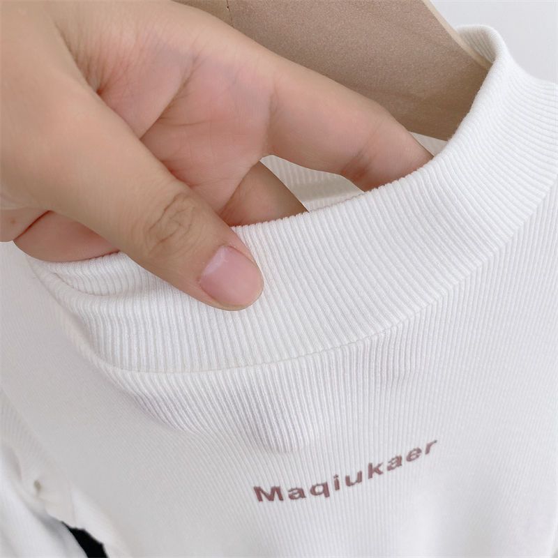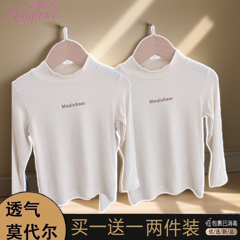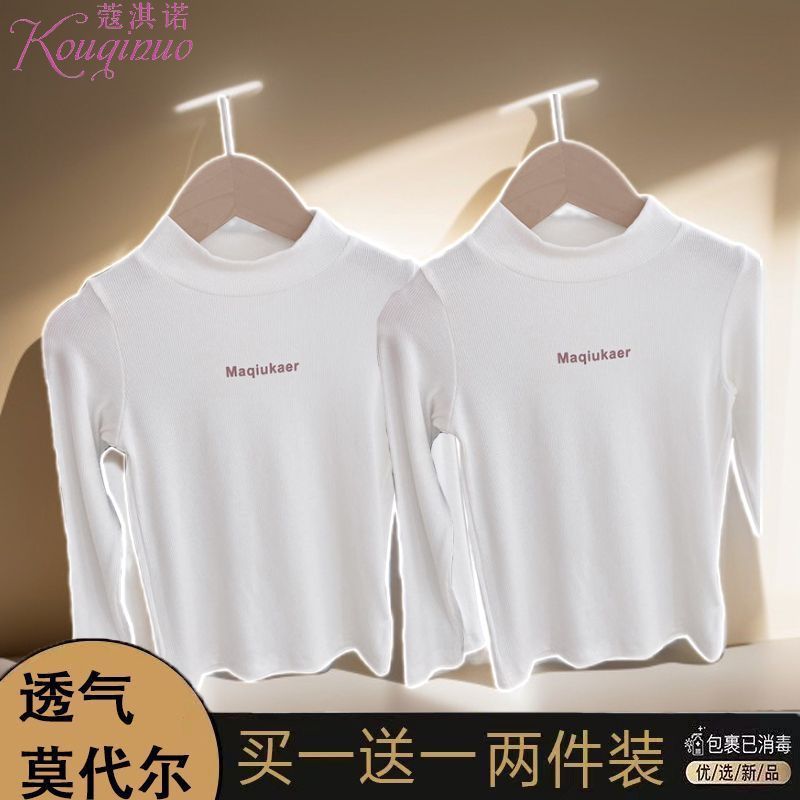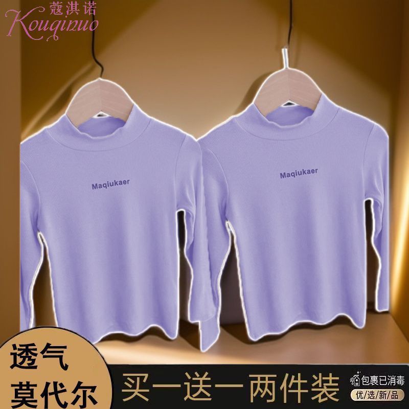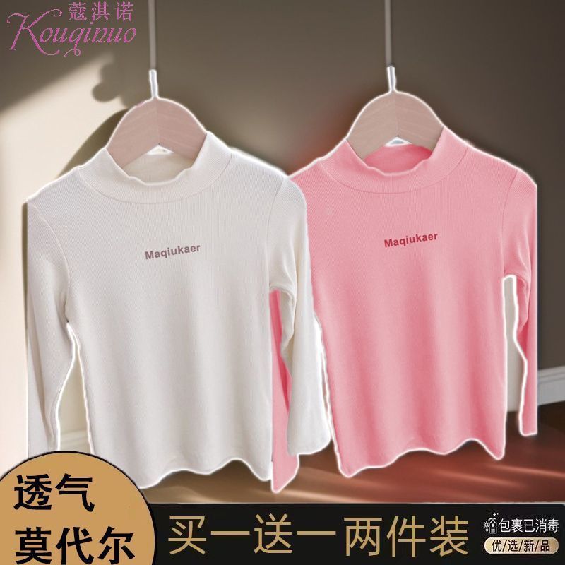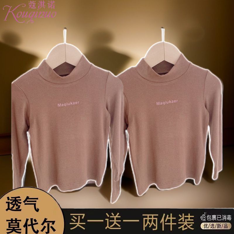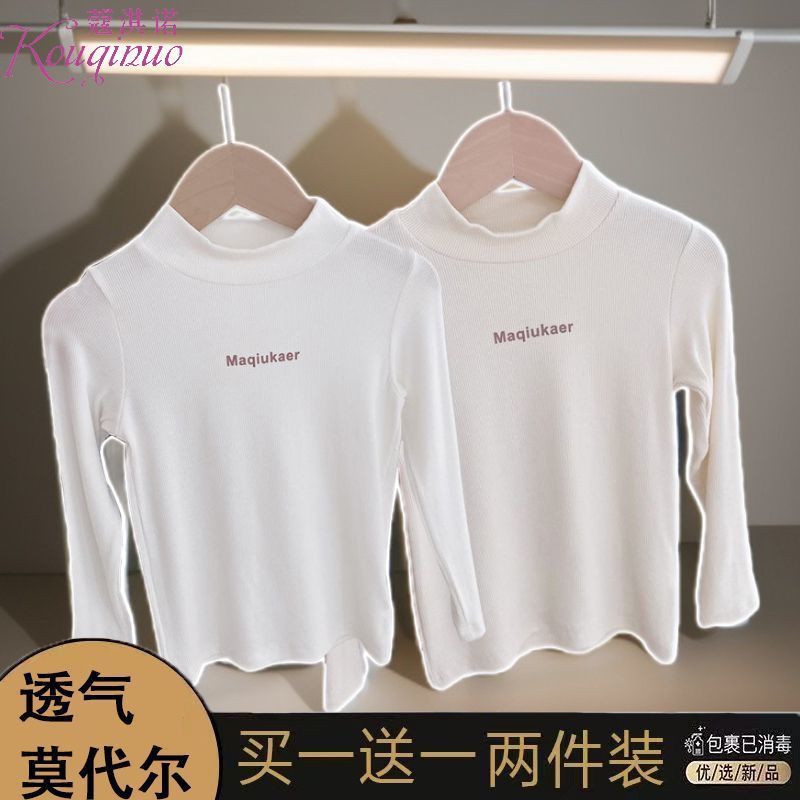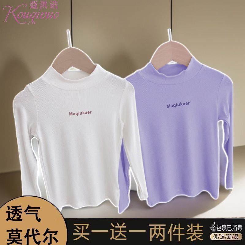 베이스 셔츠 봄과 가을 뉴 보이즈와 걸스 슈퍼 탄성 세미 하이 칼라 티셔츠 긴 소매 이너 타워 아우터웨어 탑 0216A016